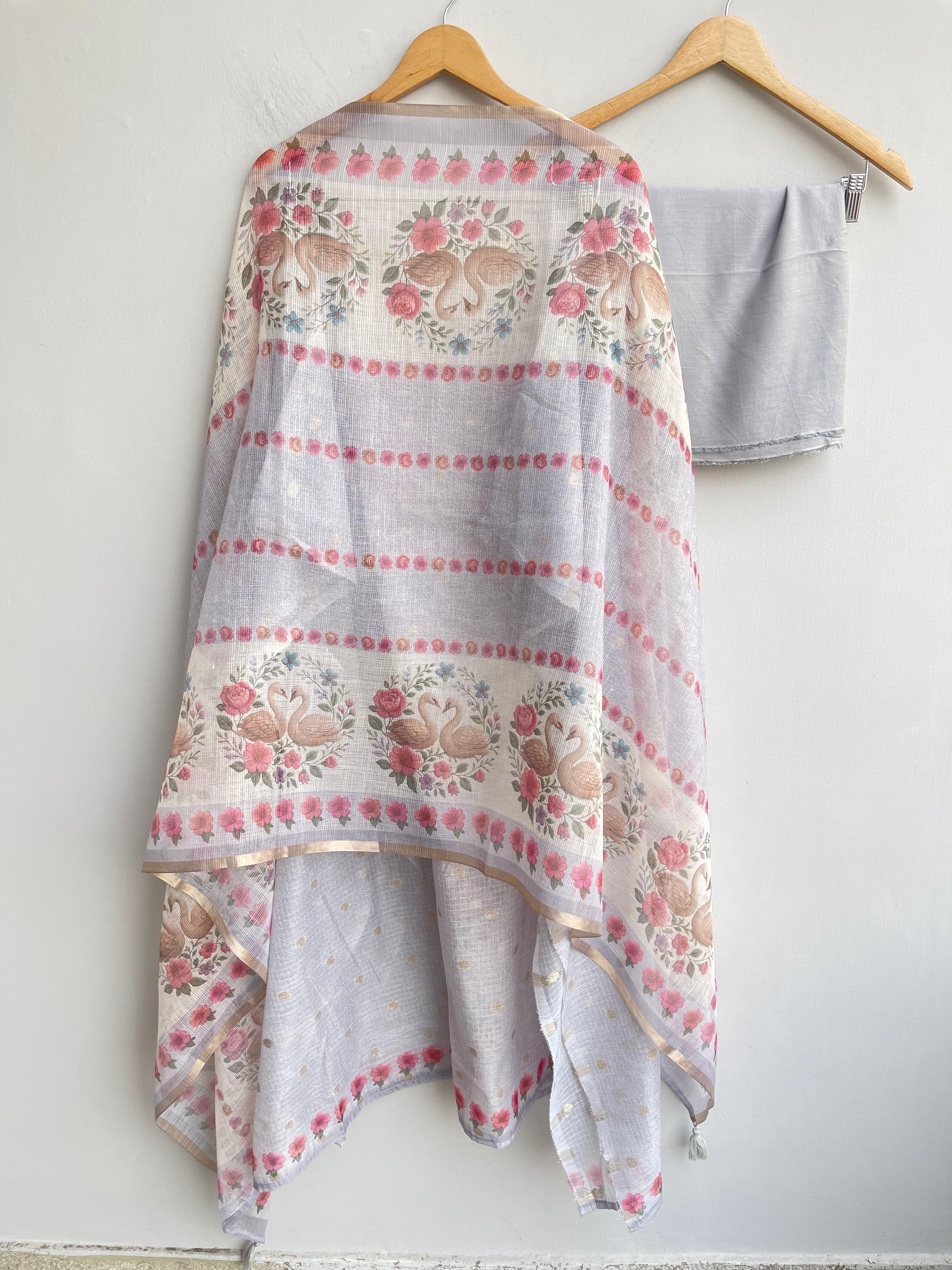 π banarasi kota doriya printed fabric unstitched shirt with pearl embroidery