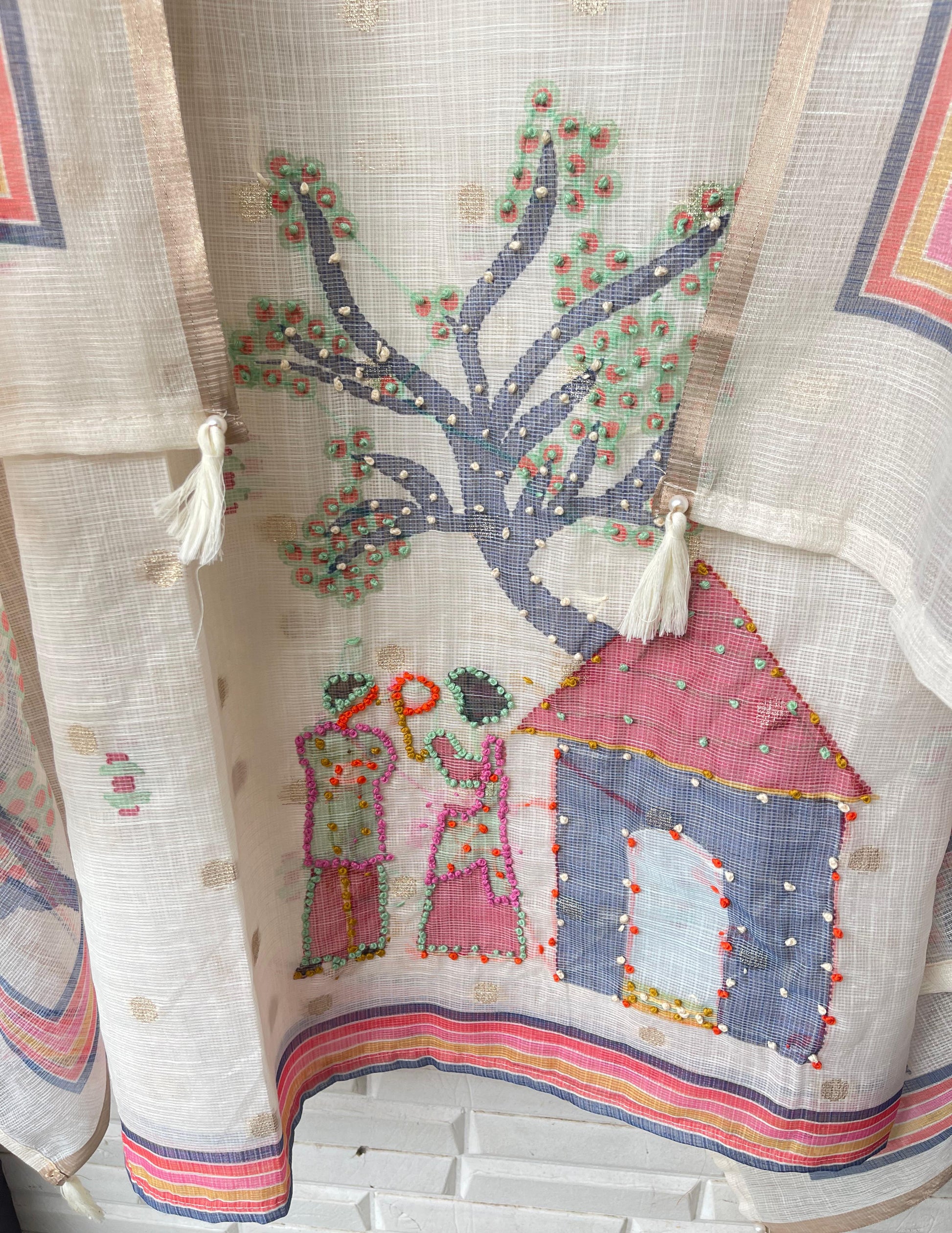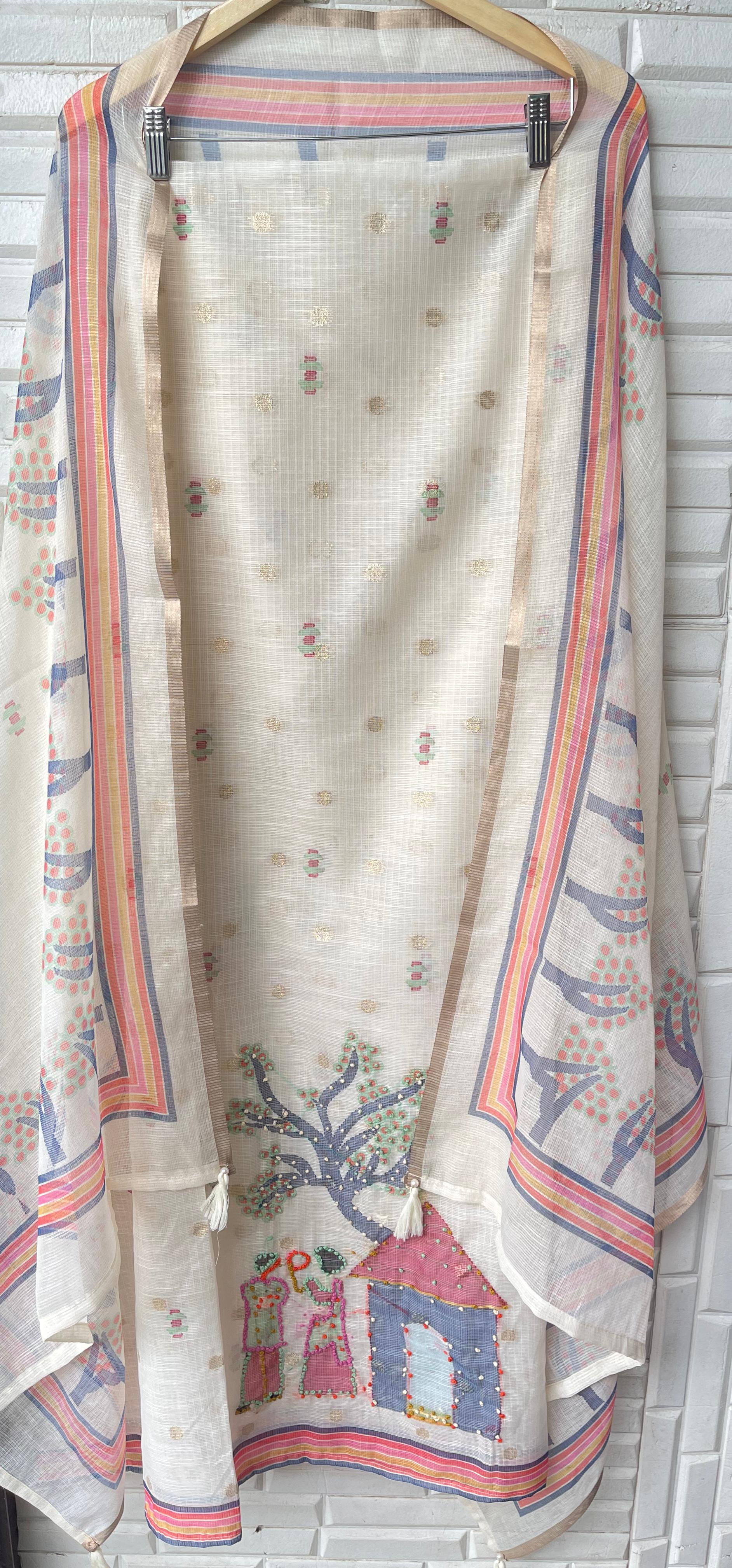 😊unstitched Banarsi Kota Doriyan with stunning Resham embroidery