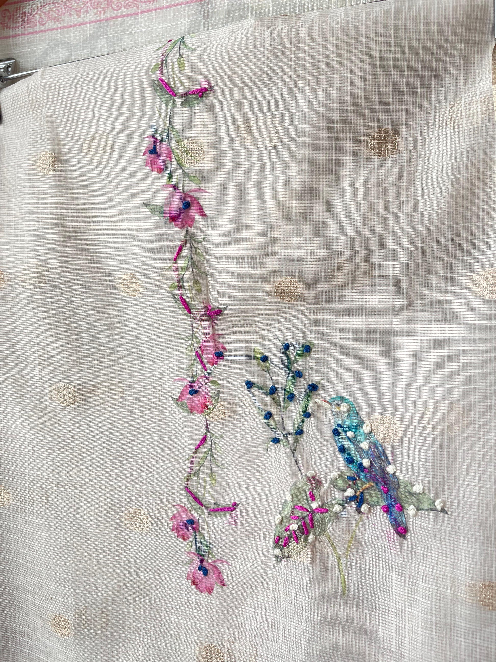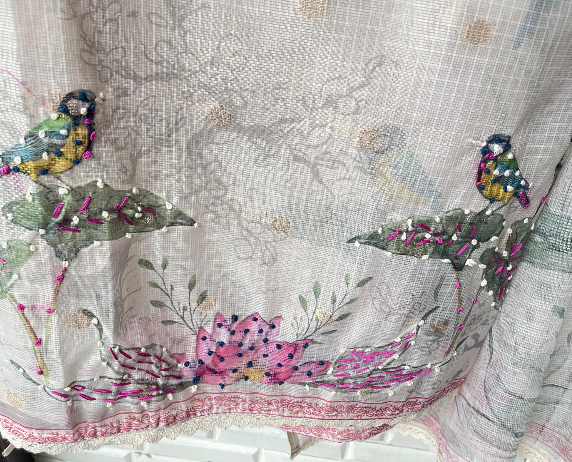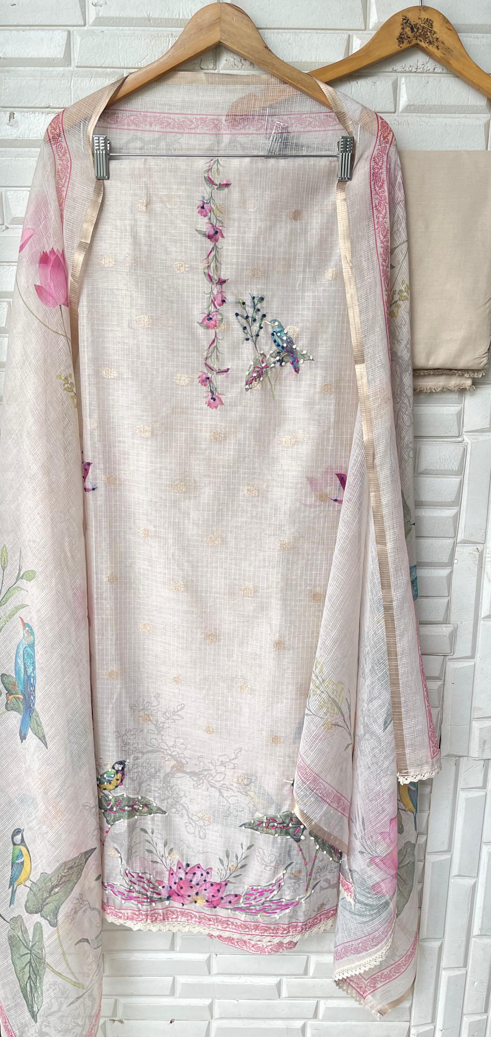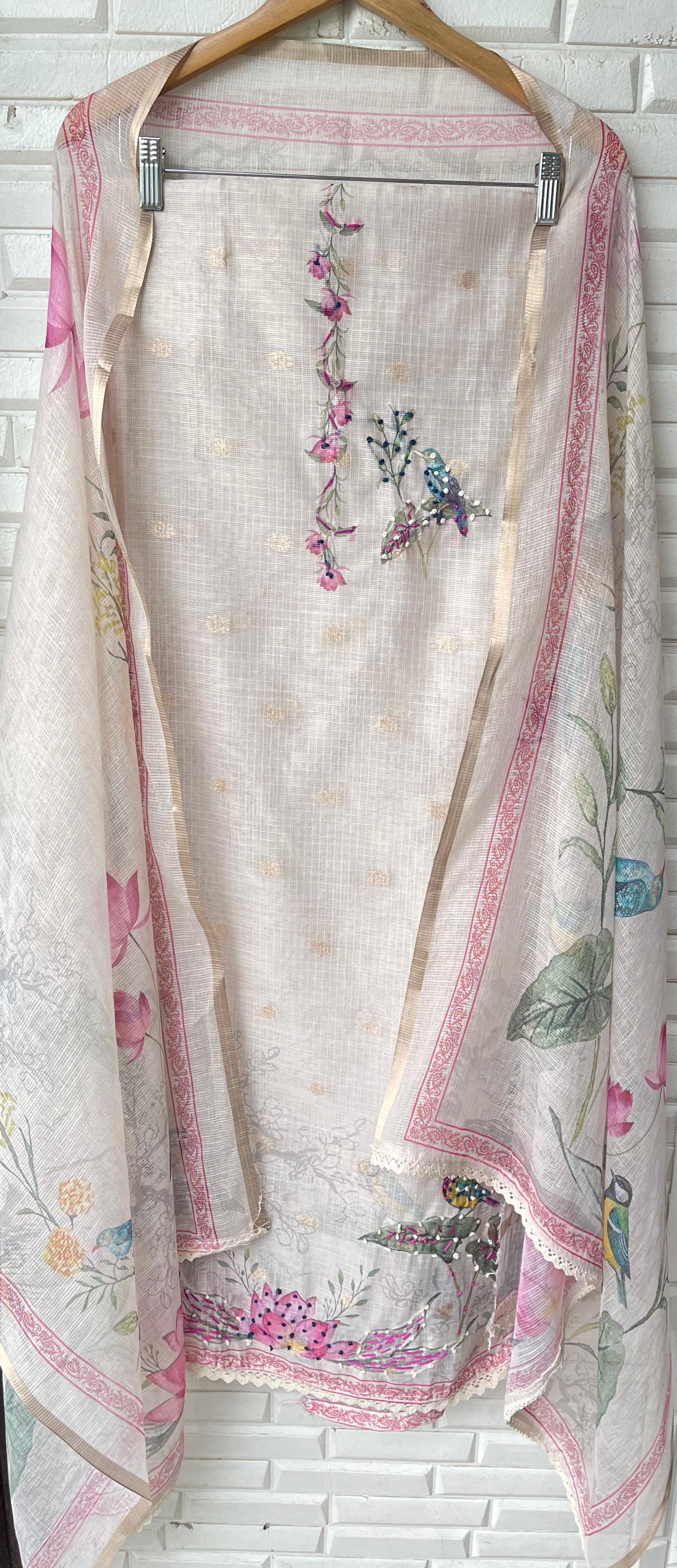 😊 soft banarasi kota doriya printed fabric unstitched shirt with resham knots embroidery
