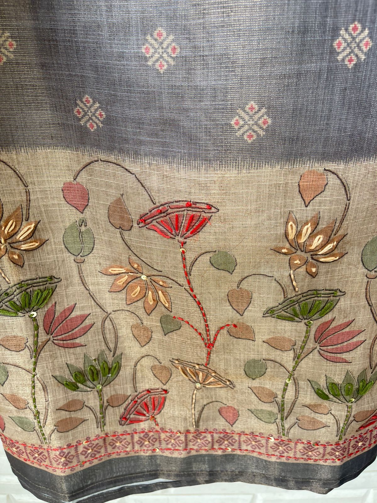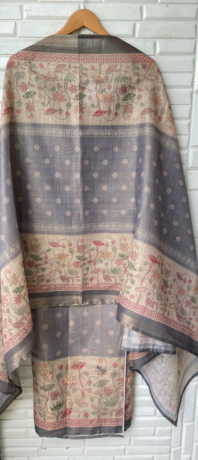 😊Banarsi shimmer Kora linen dupatta with knots embroidery