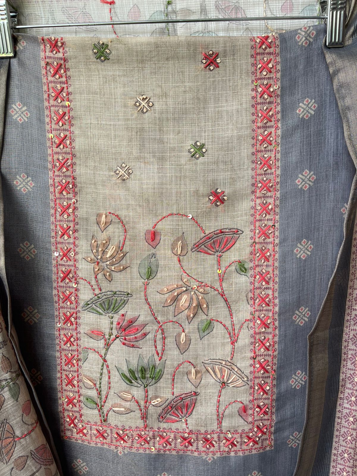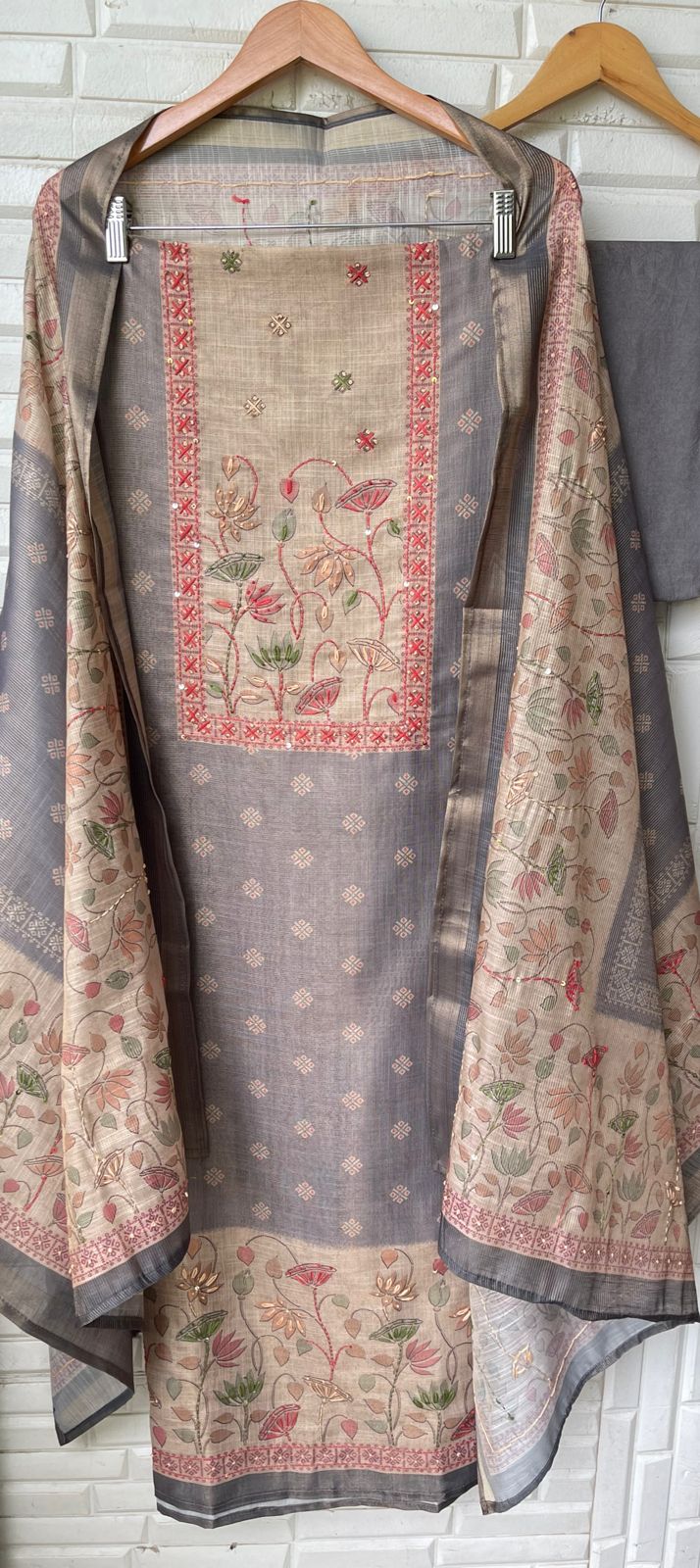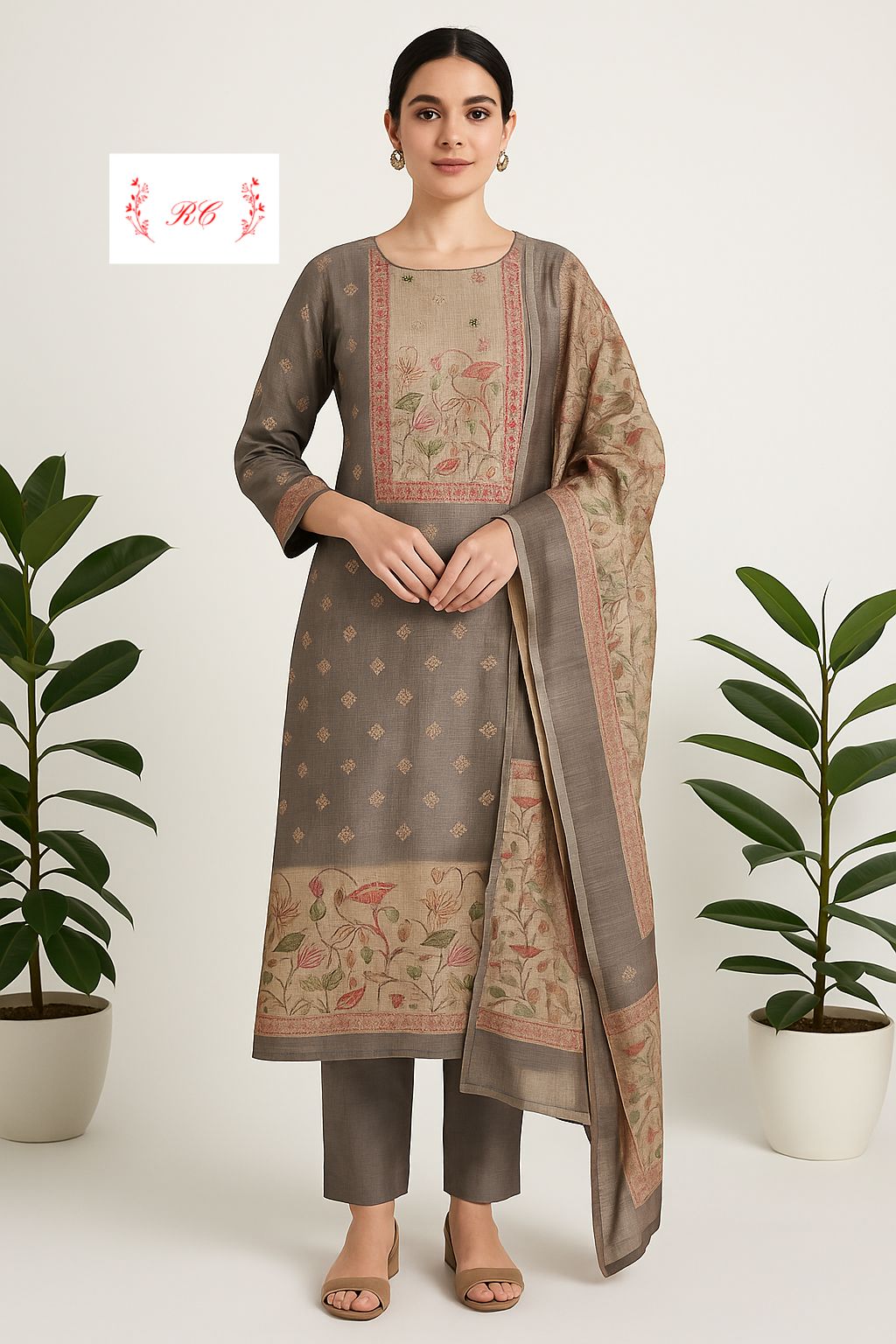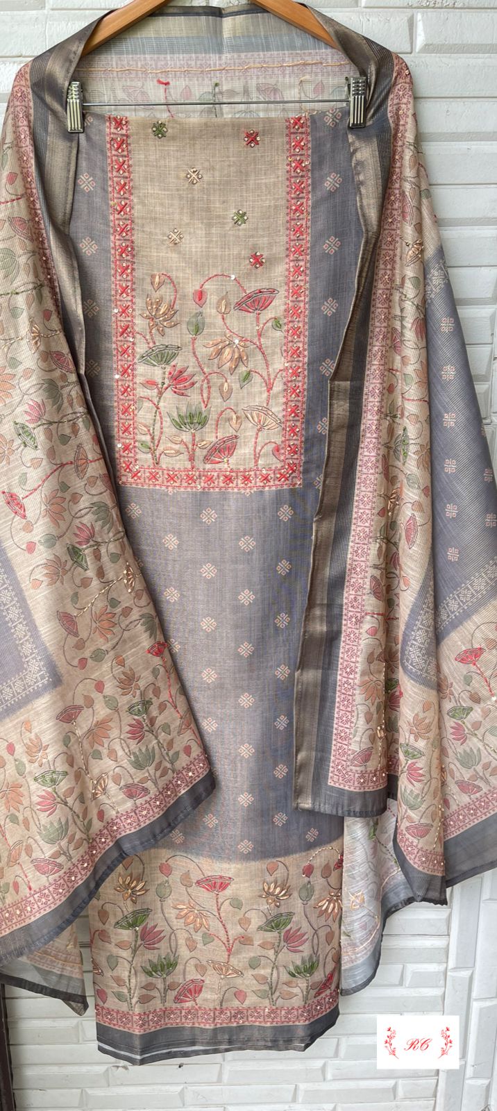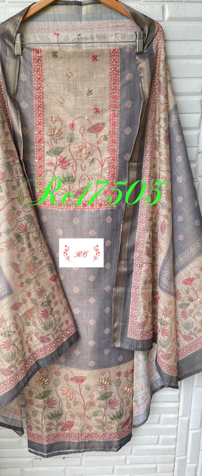 Banarasi shimmer kora linen unstitched ladies suit Rc17505