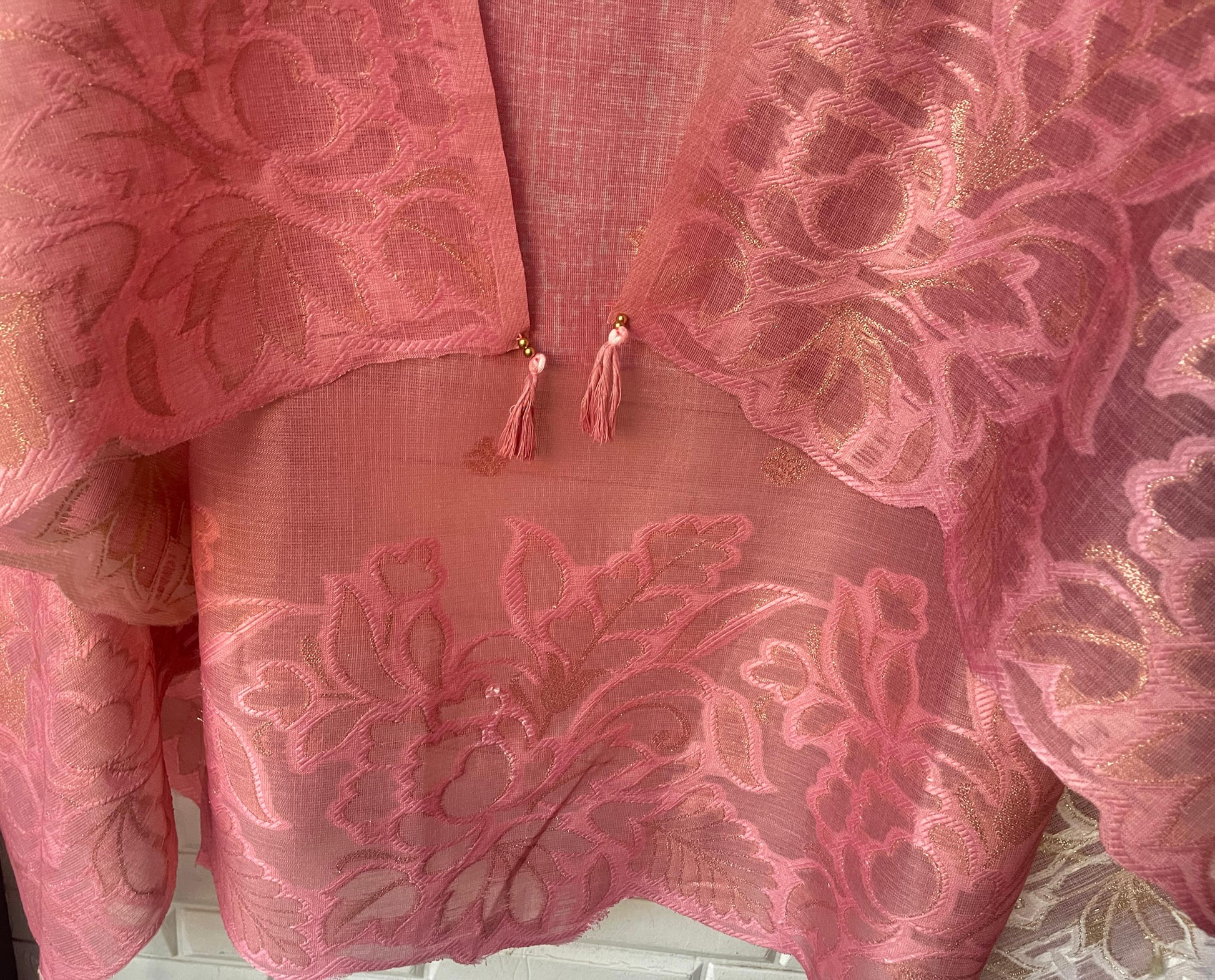 π banarasi shimmer linen printed fabric unstitched shirt with sheer cutwork with weaving and crotia kurta patti