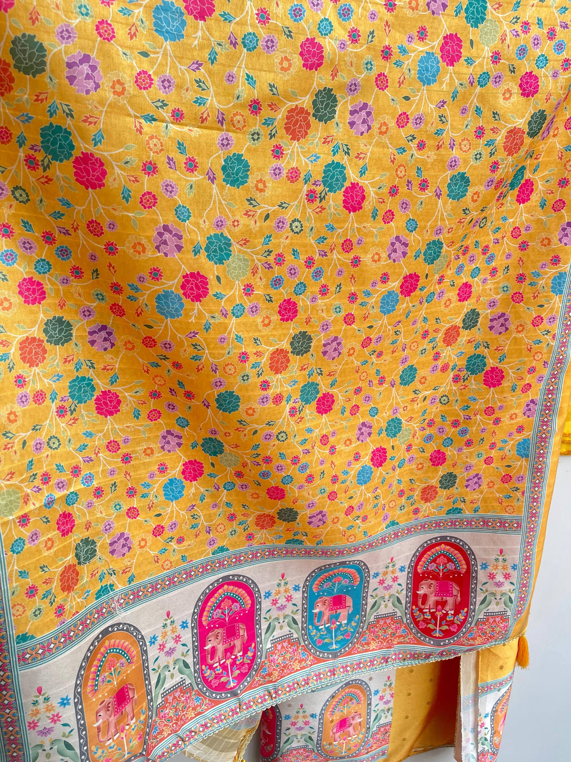 π banarasi shimmer linen printed fabric dupatta