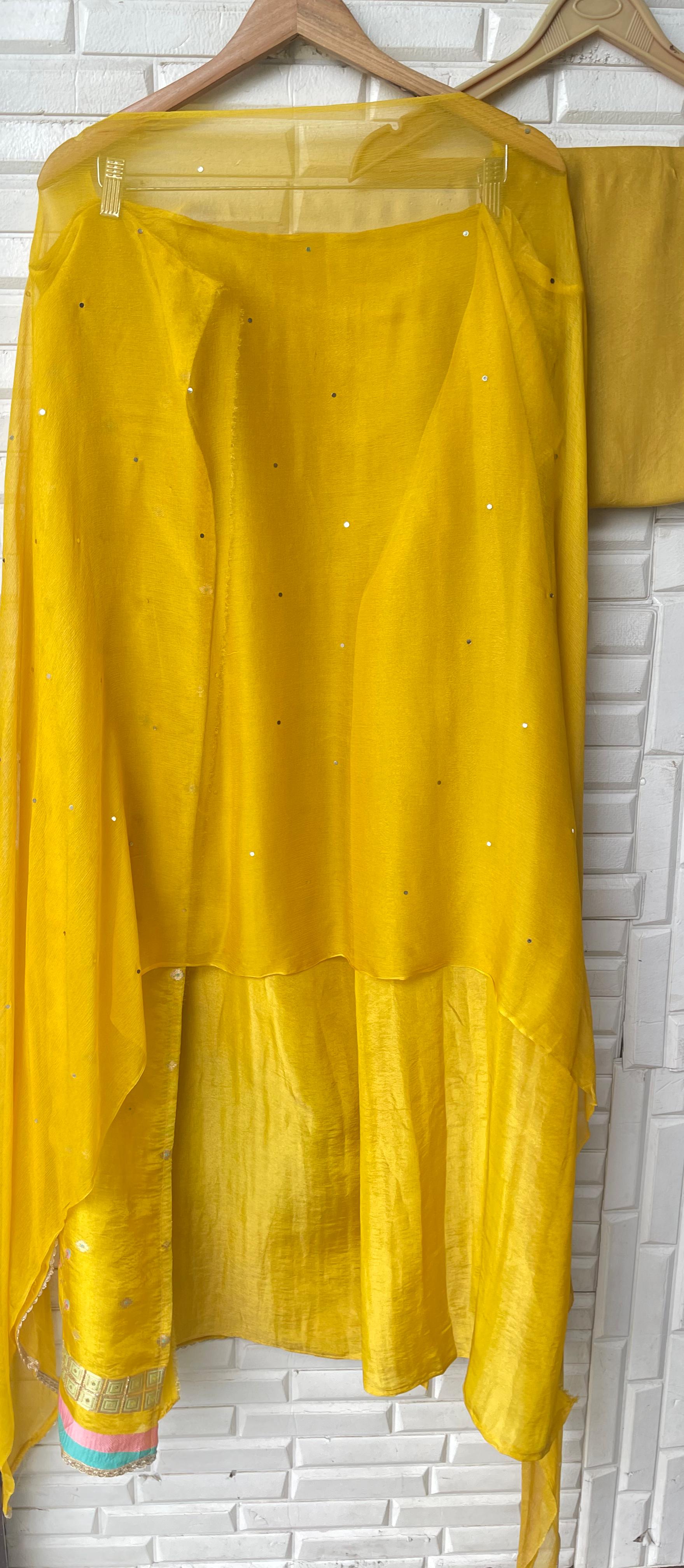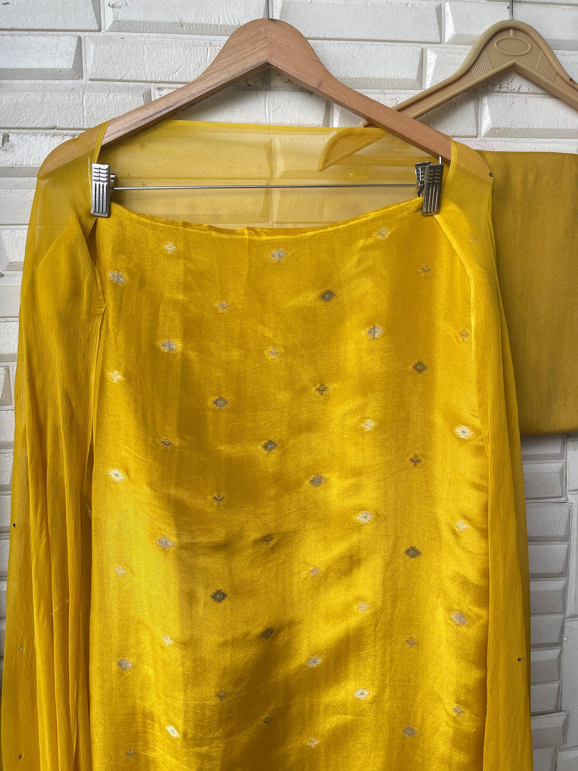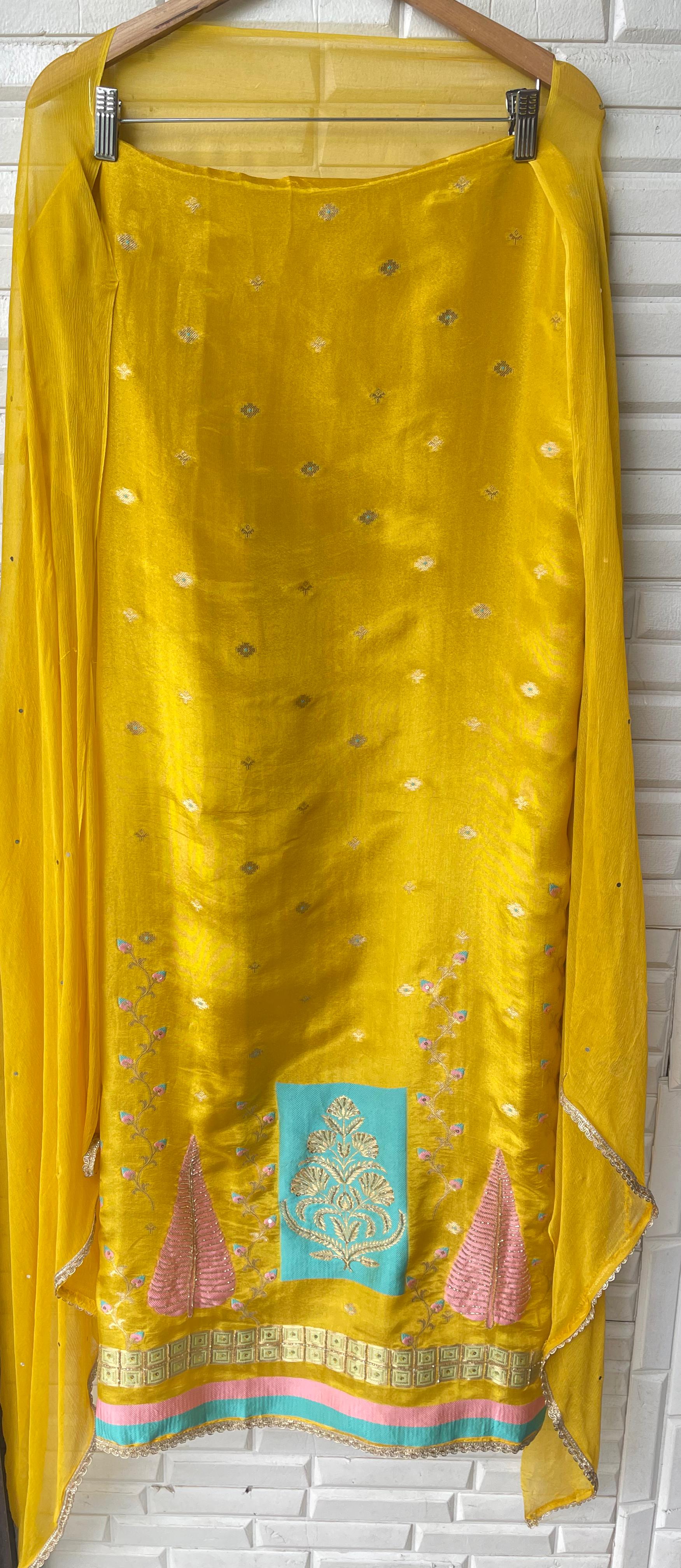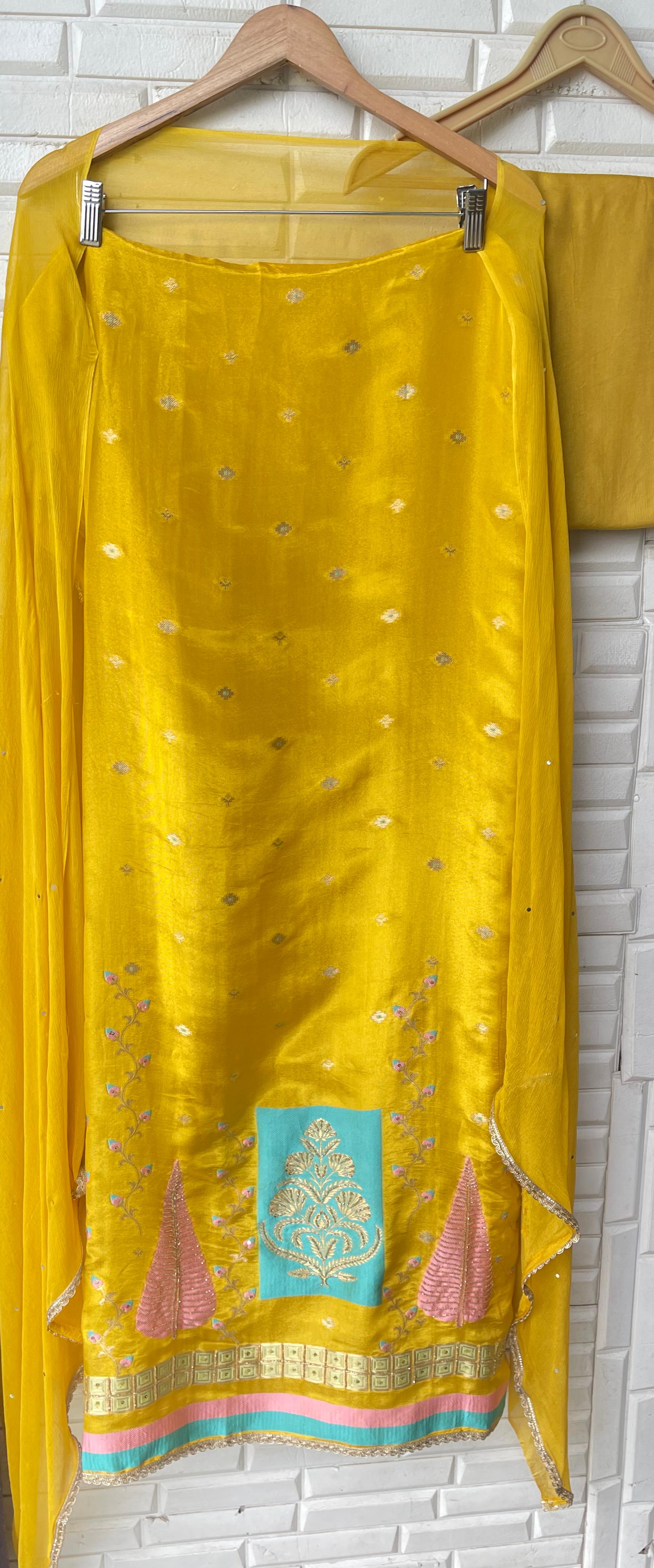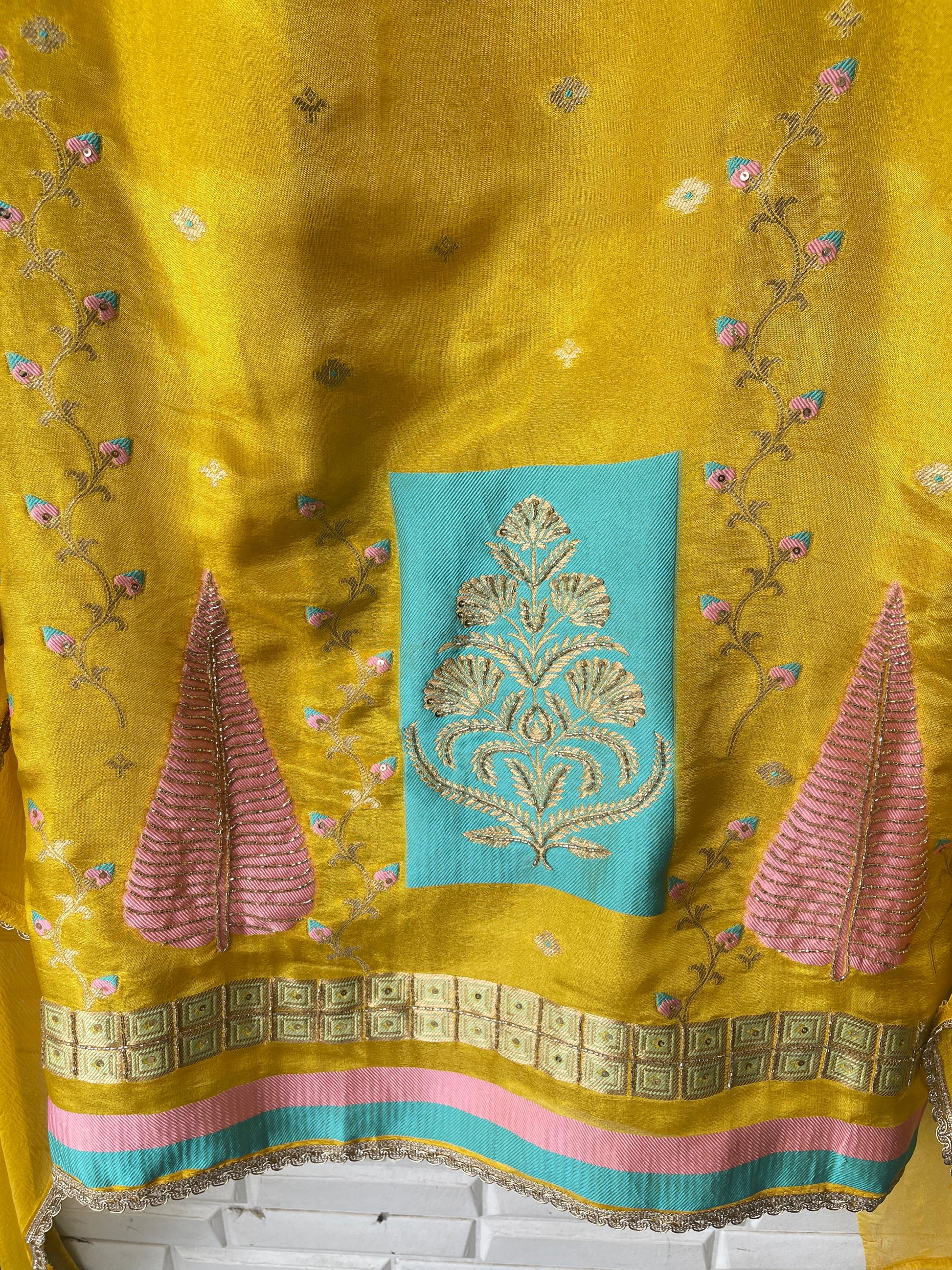 π self banarasi shimmer silk fabric unstitched shirt with kutdanna sequence embroidery and ghera border lace