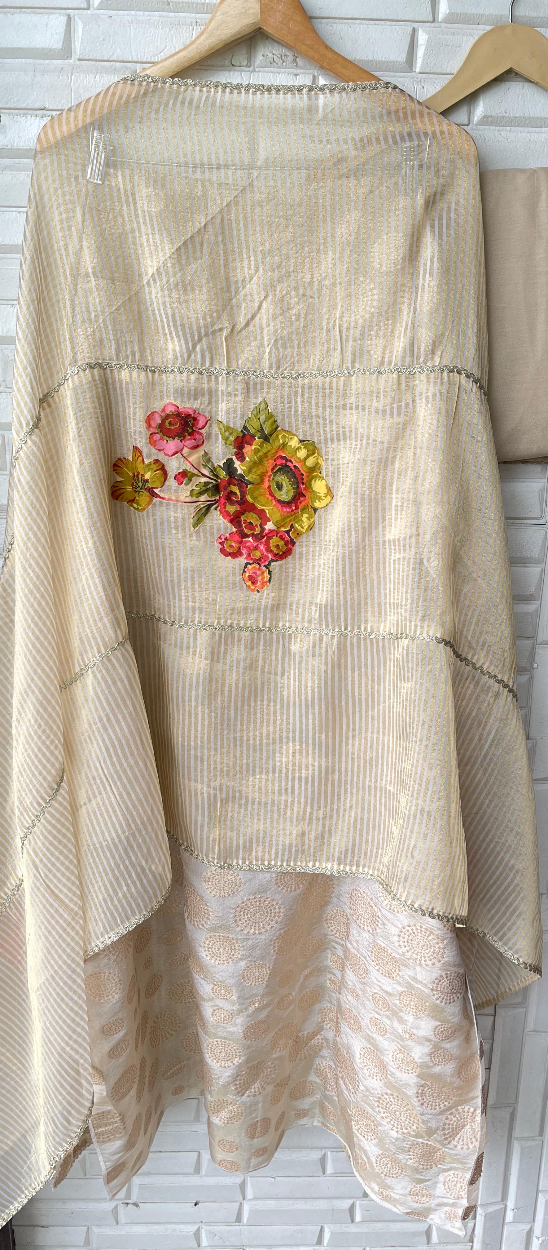 π banarasi shimmer silk fabric dupatta with border lace and patchwork