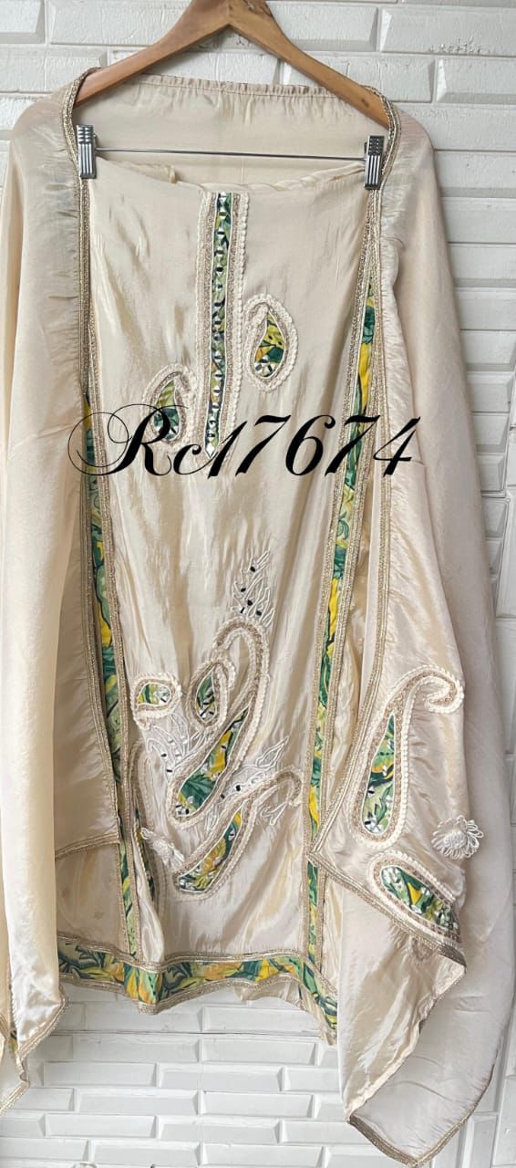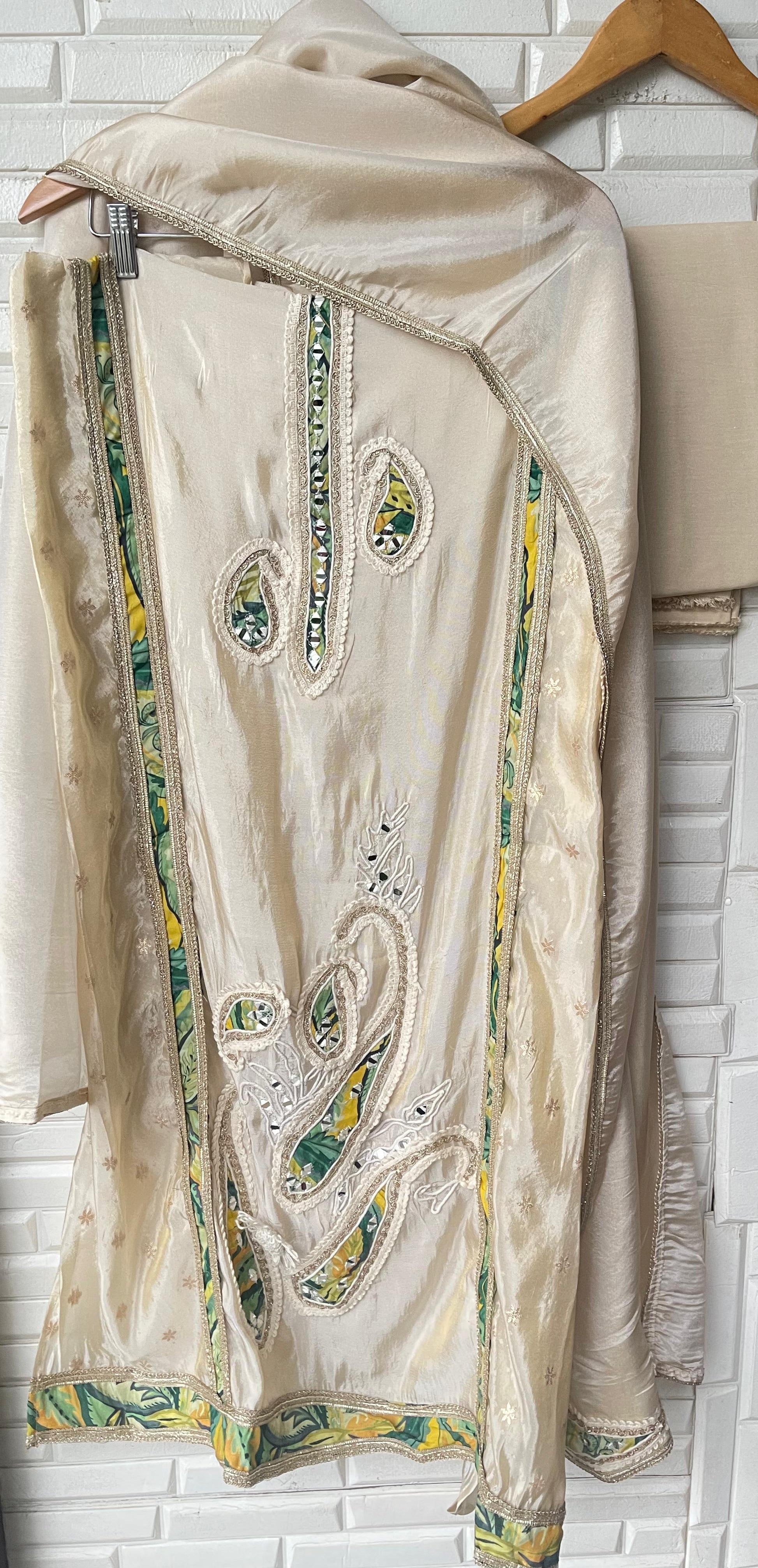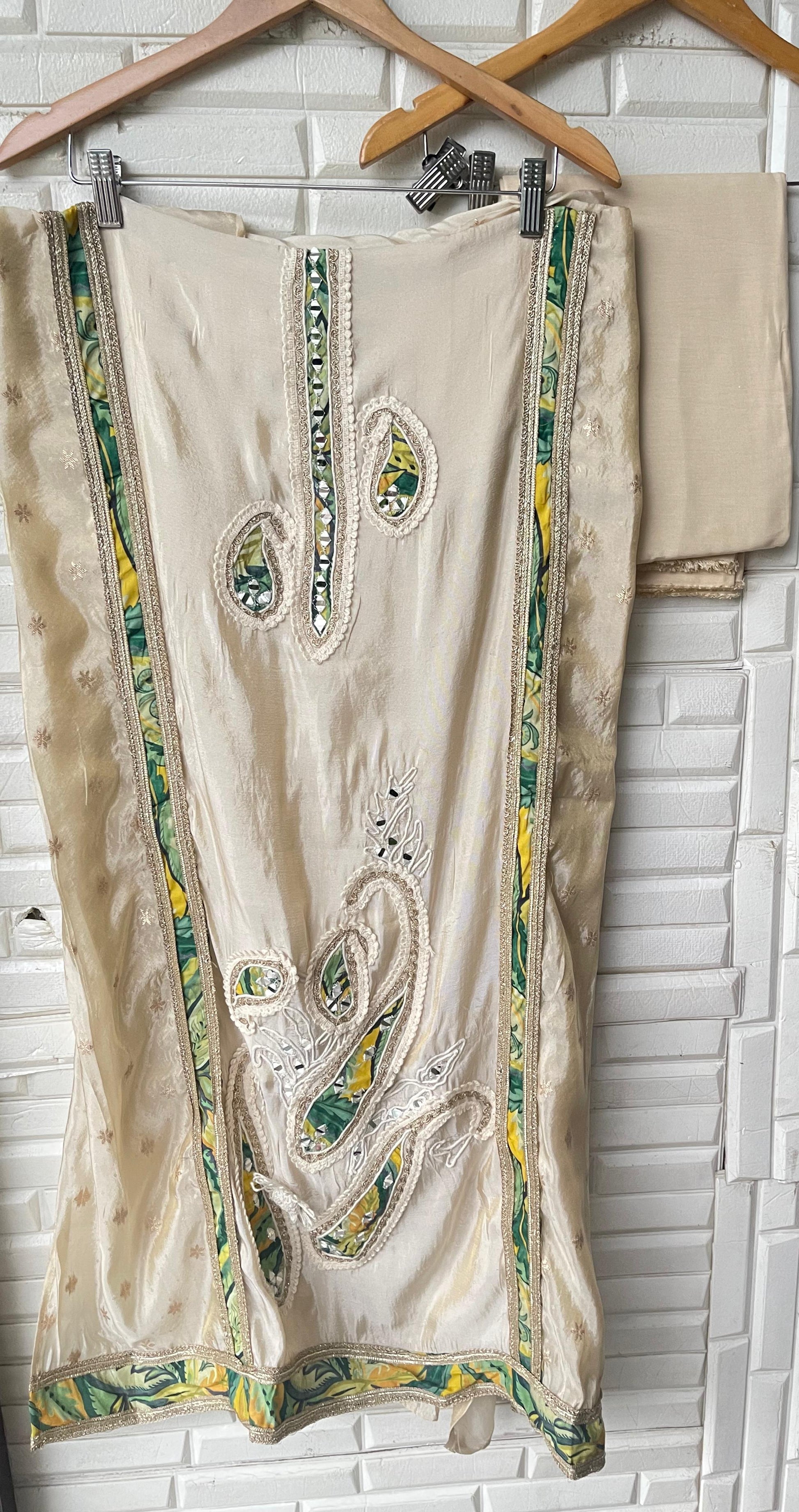 😊 shimmer silk fabric dupatta with border lace and same patchwork embroidery as shirt