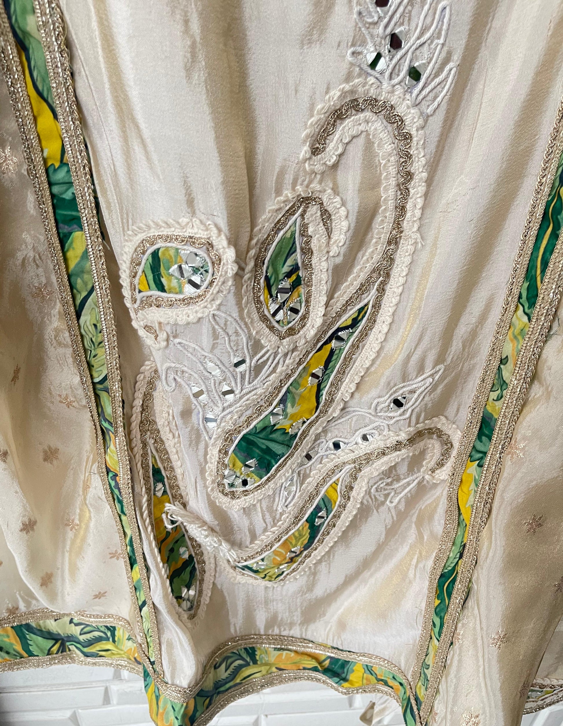 😊 banarasi shimmer silk fabric unstitched shirt with mirror work resham embroidery crotia lace print fabric patchwork with crotia highlighting and panelling lace