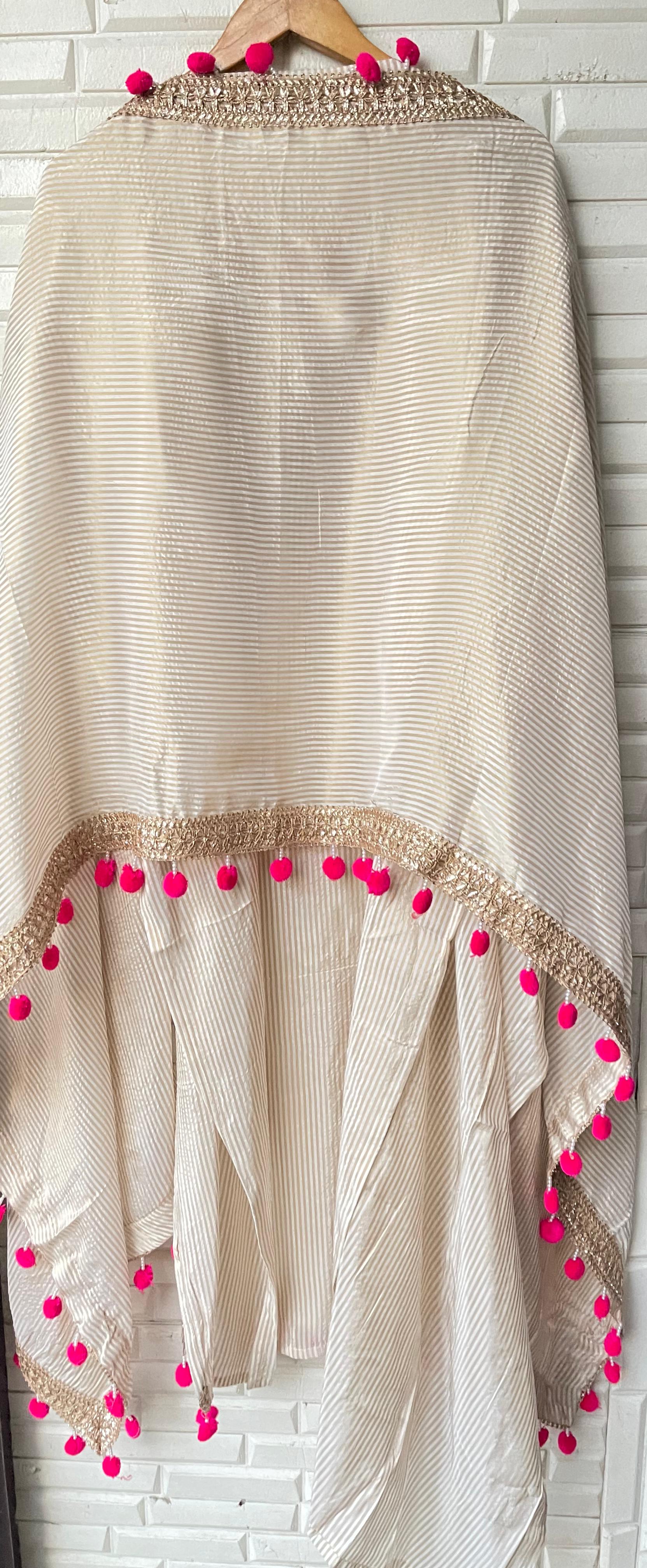 π pure banarasi silk fabric dupatta with zari gotta border lace and pom poms