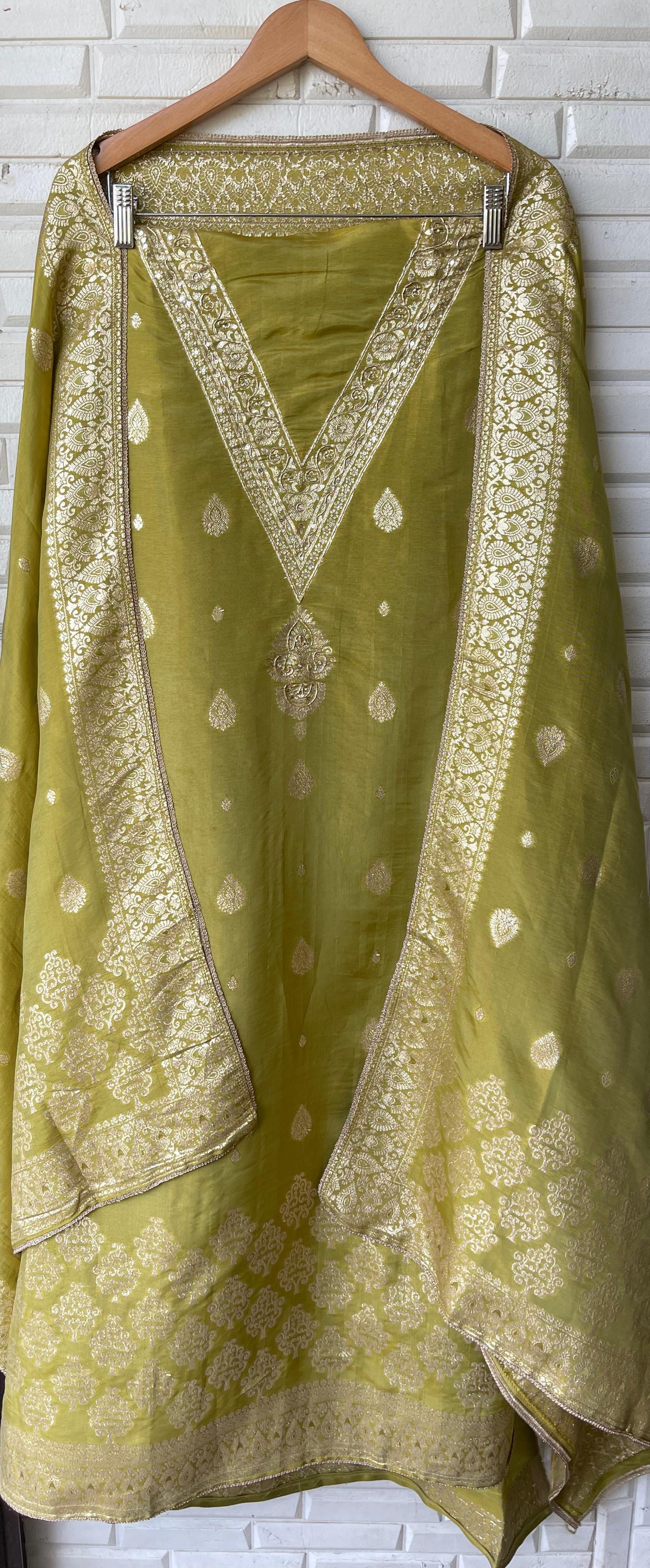 😊 banarasi shimmer silk fabric unstitched shirt with dabka sequence embroidery