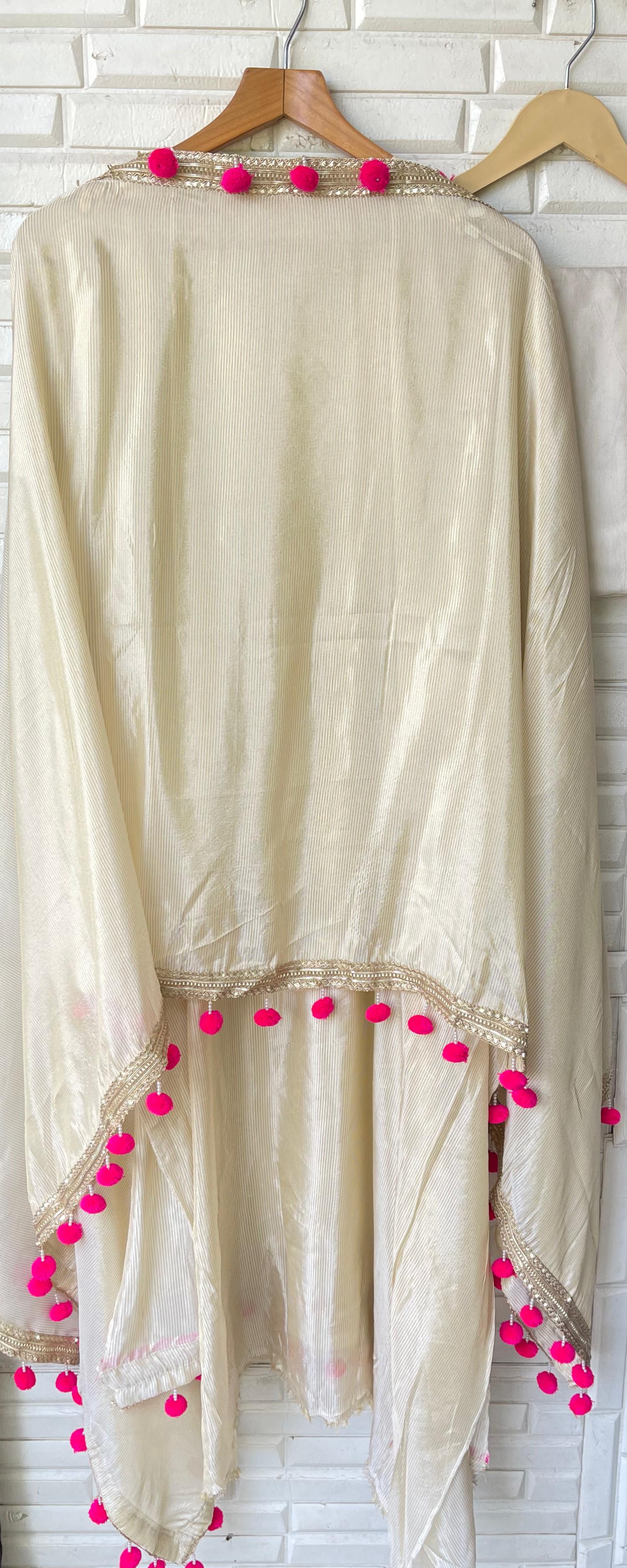 😊Banarsi shimmer silk with actual mirror and zari work plus pompom lace