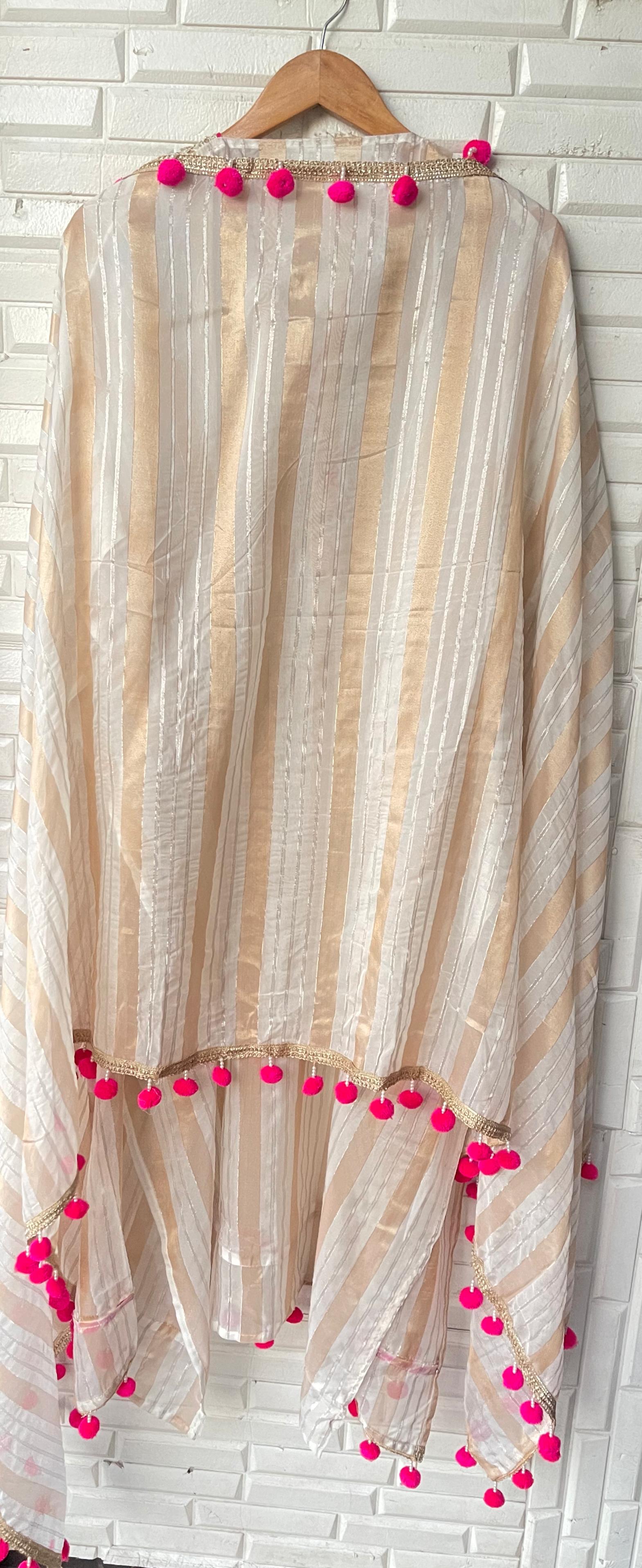 π banarasi shimmer organza fabric dupatta with pom pom border lace