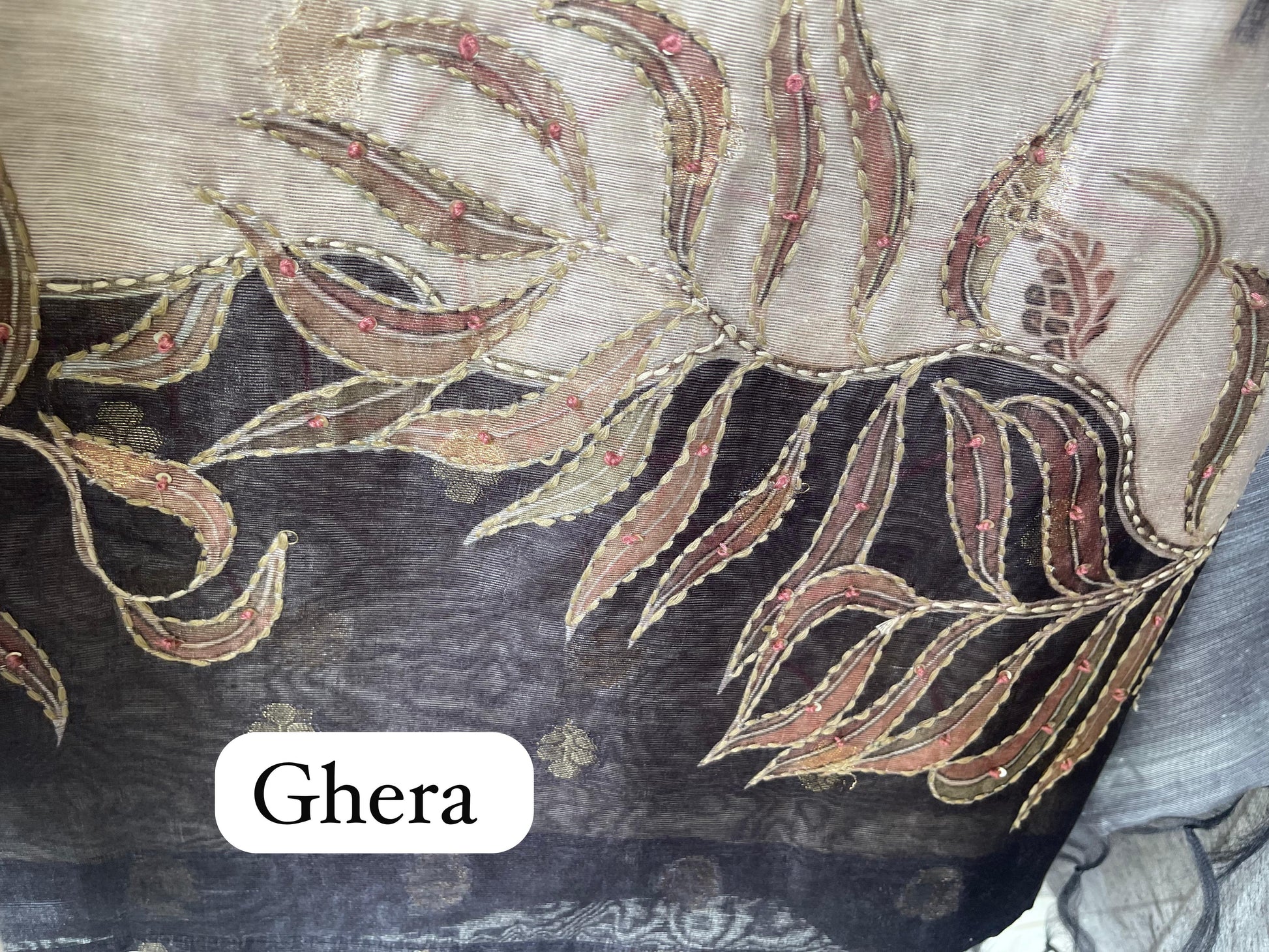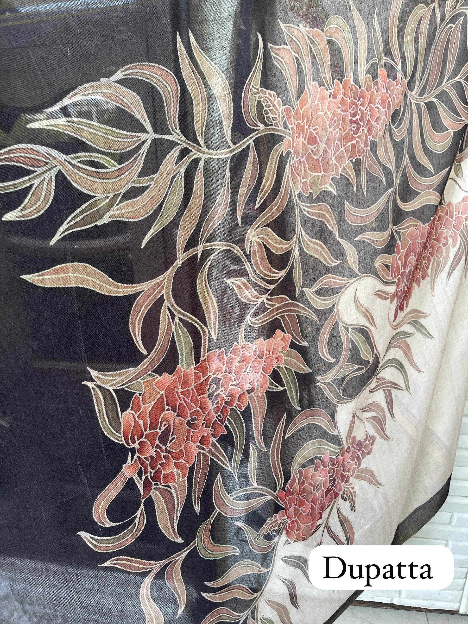 π beautiful printed linen silk soft n flowy fabric dupatta with Resham