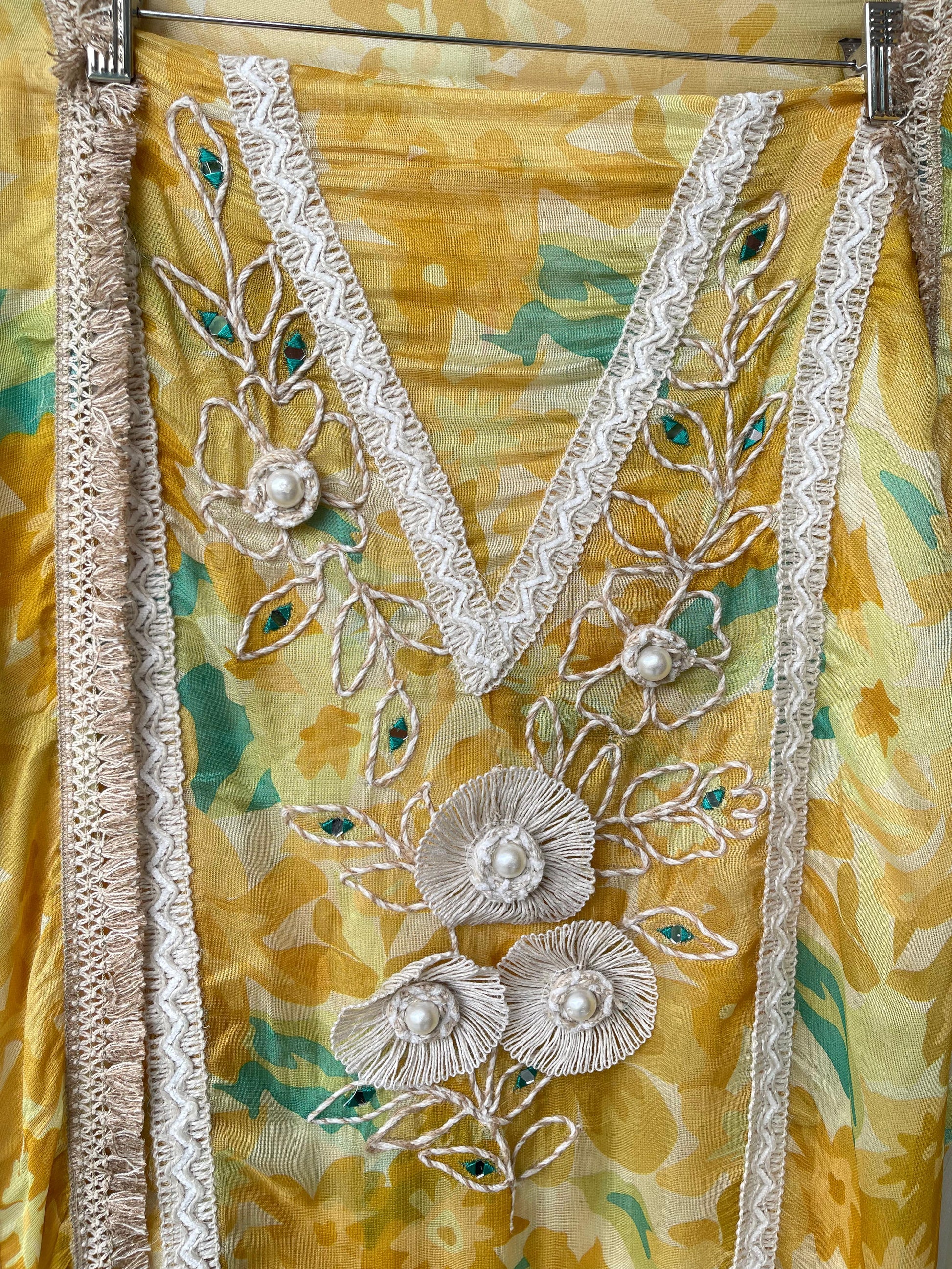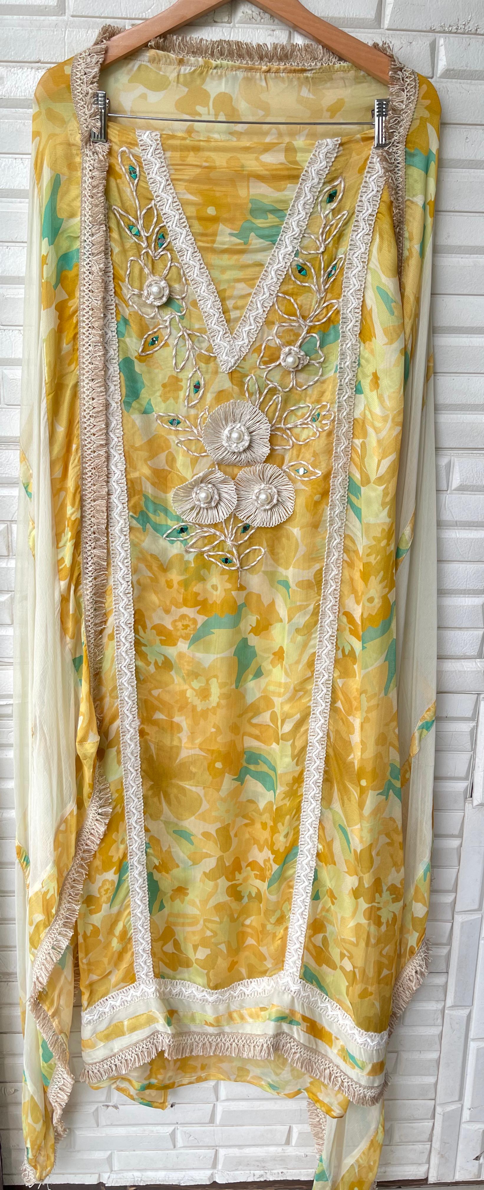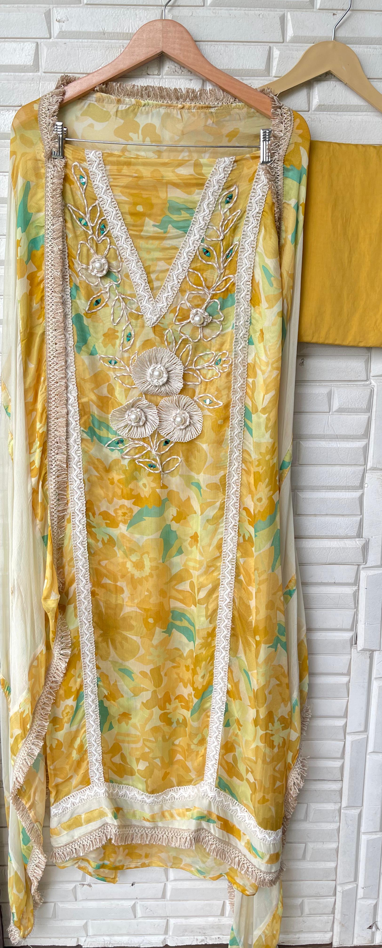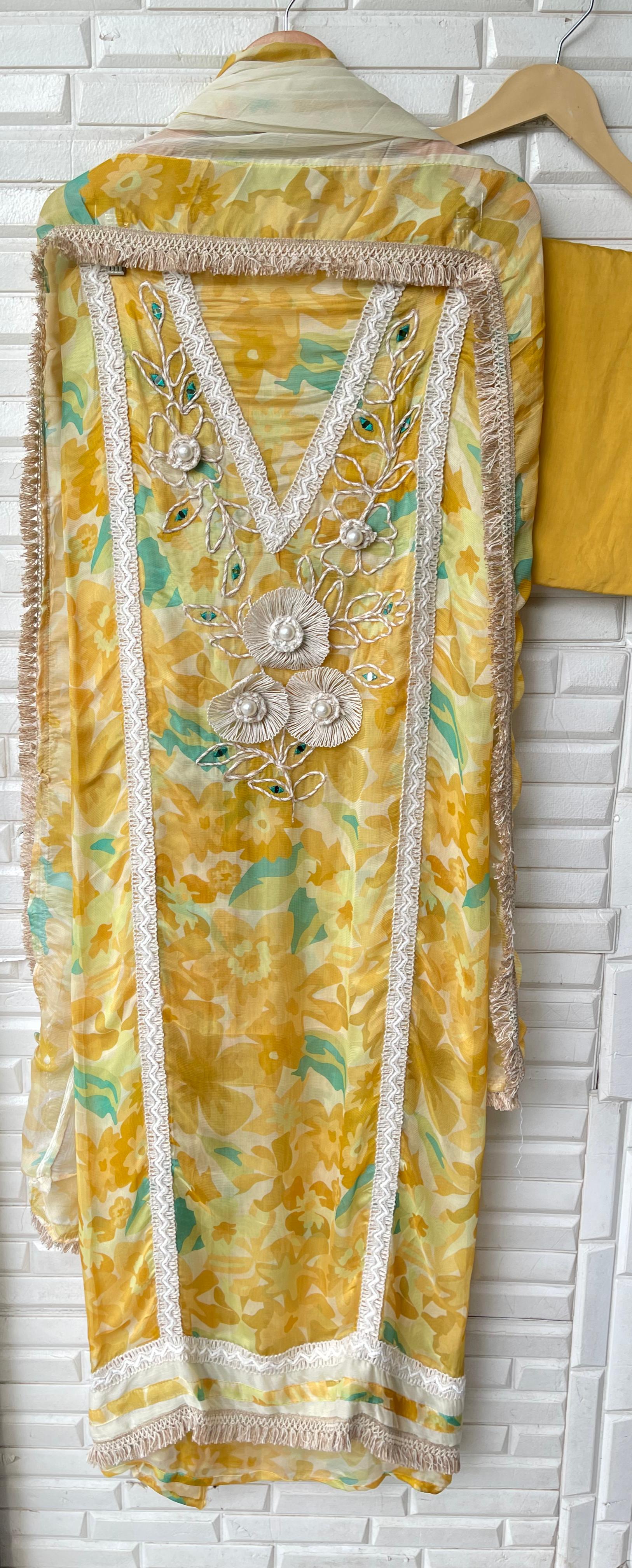 😊Burberry printed fabtic with beautiful jute 3D pearl