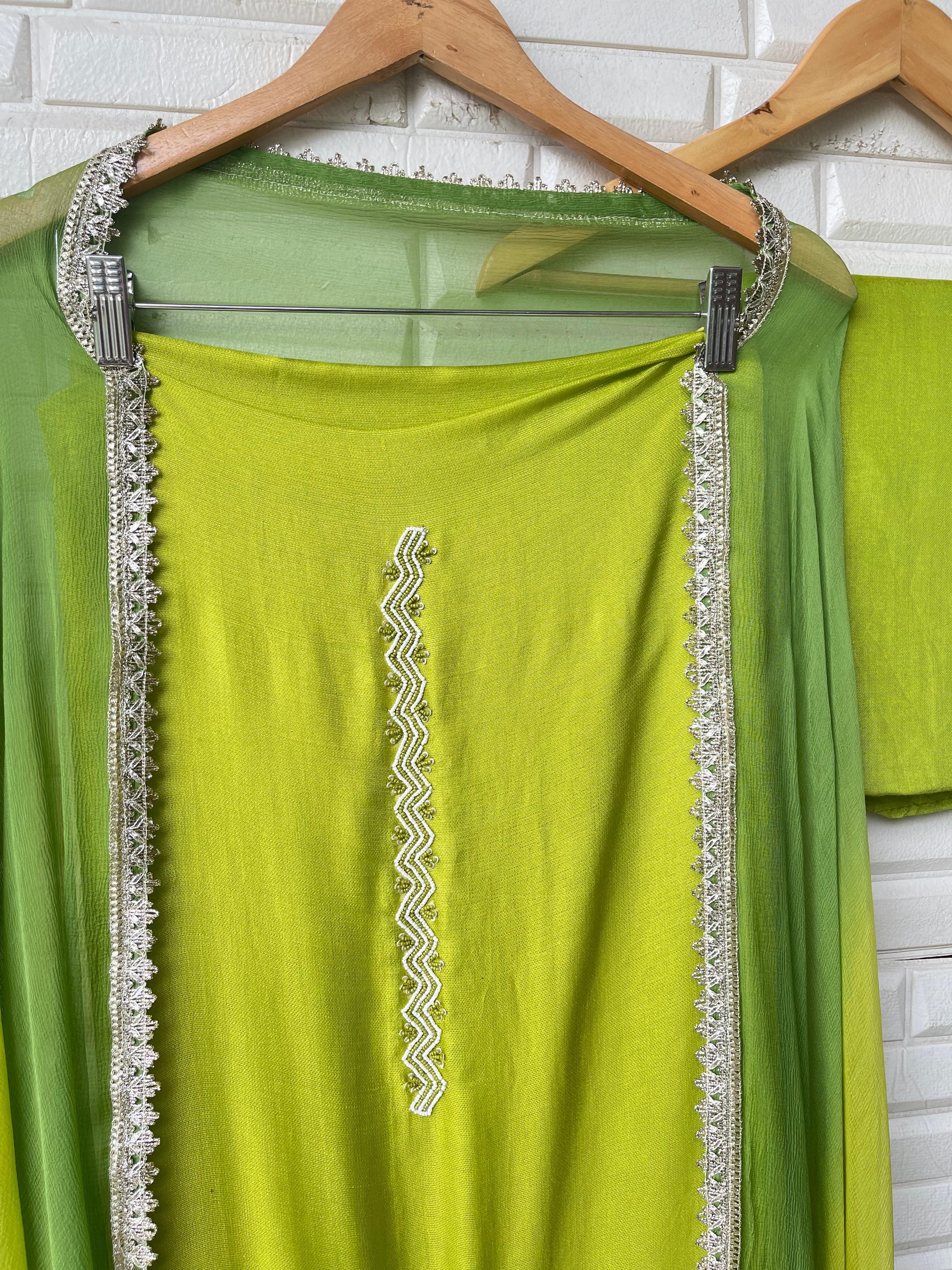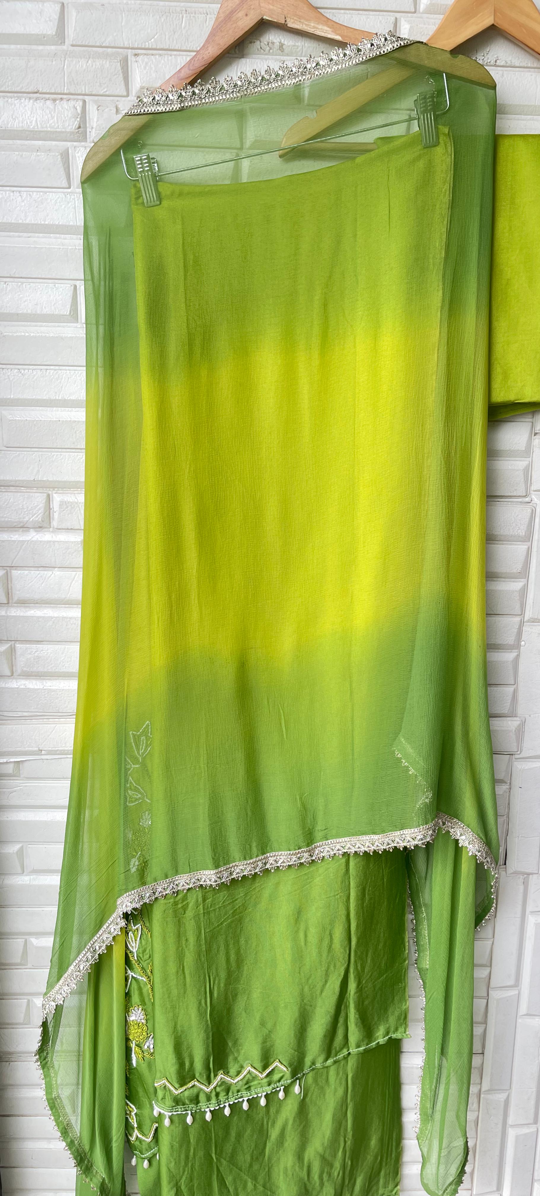 😊 pure chiffon shaded fabric dupatta with kingri border lace
