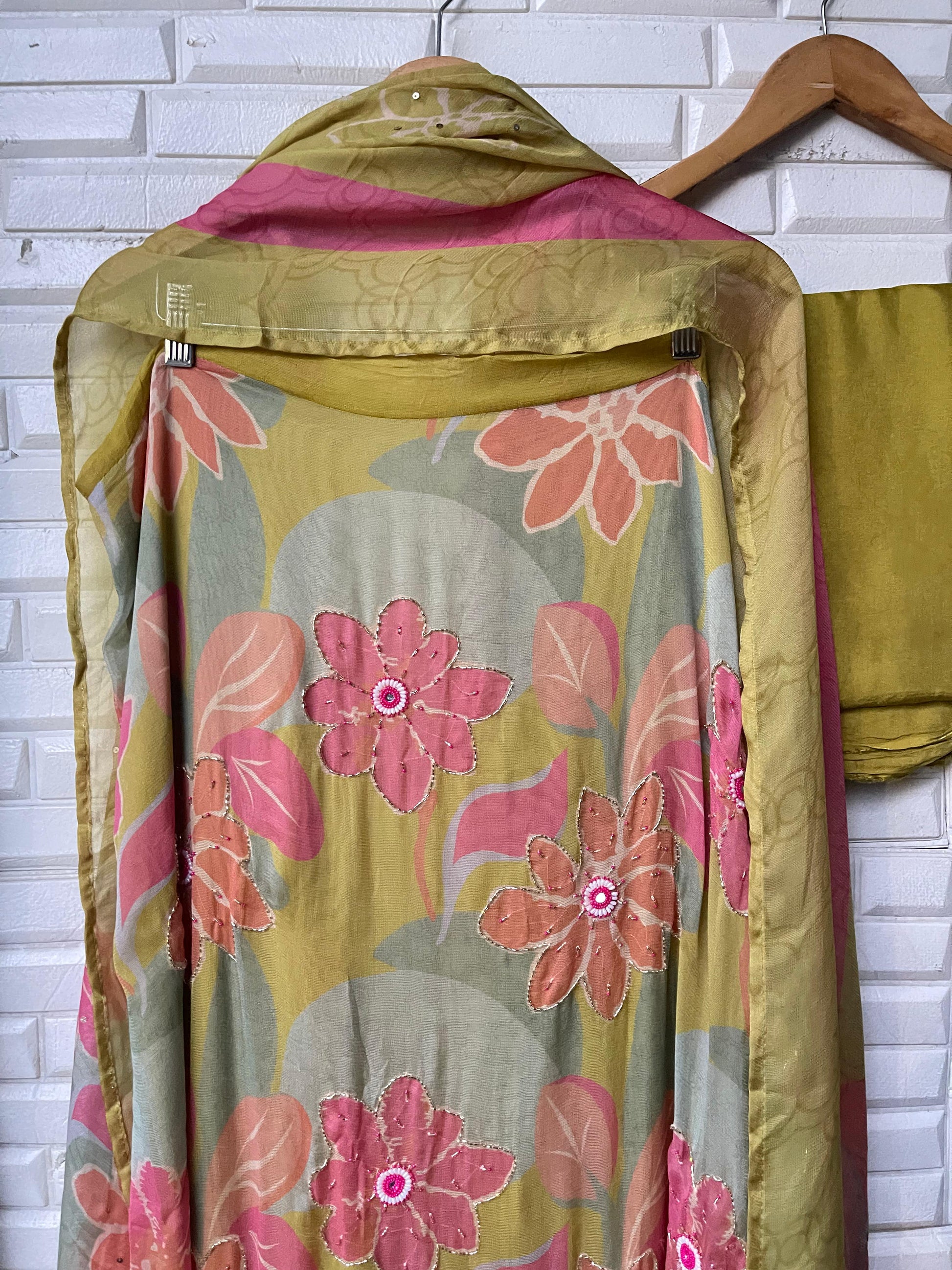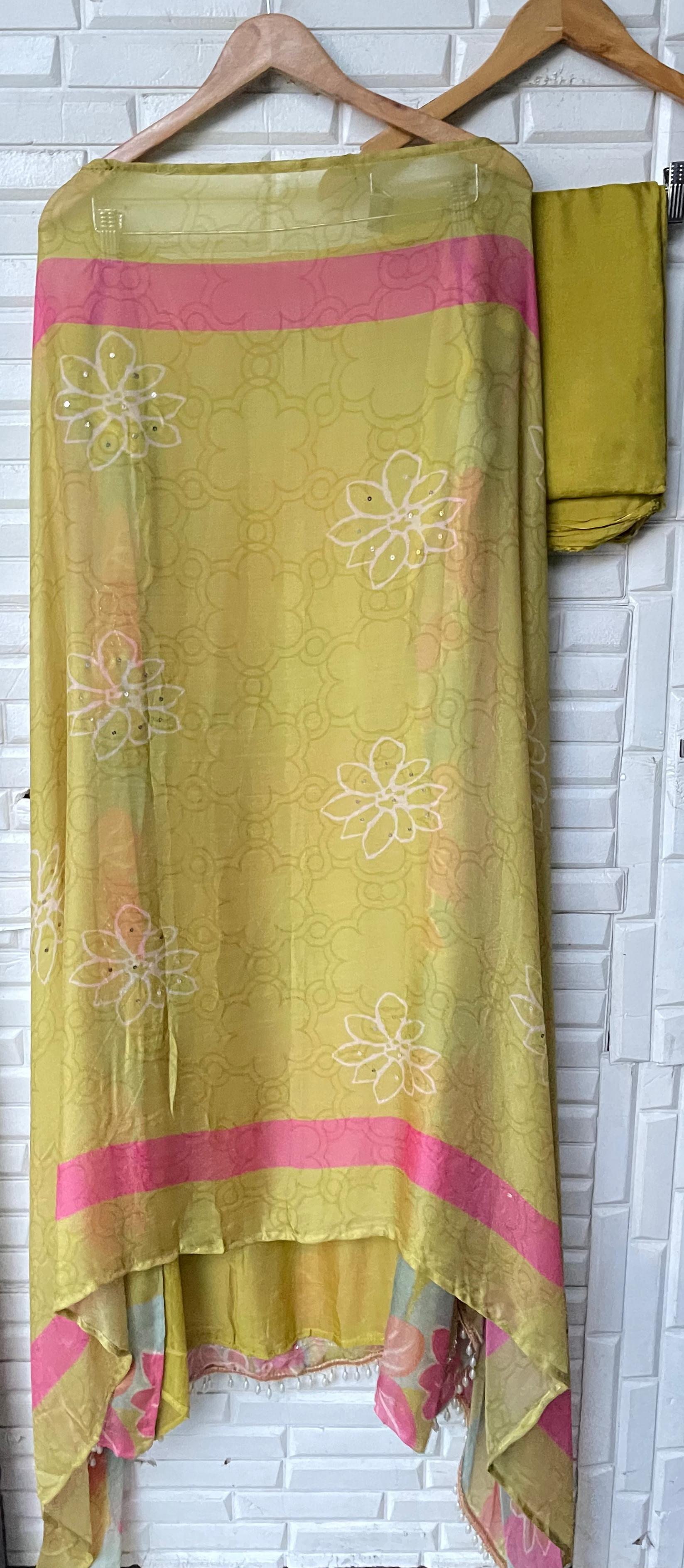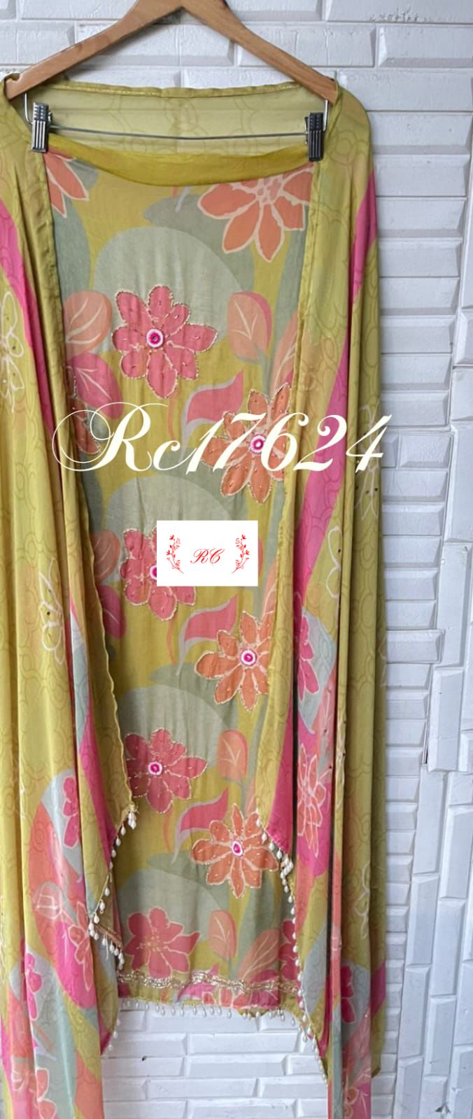 π burberry printed fabric unstitched shirt with kutdanna mirror work dabka beads pearl embroidery