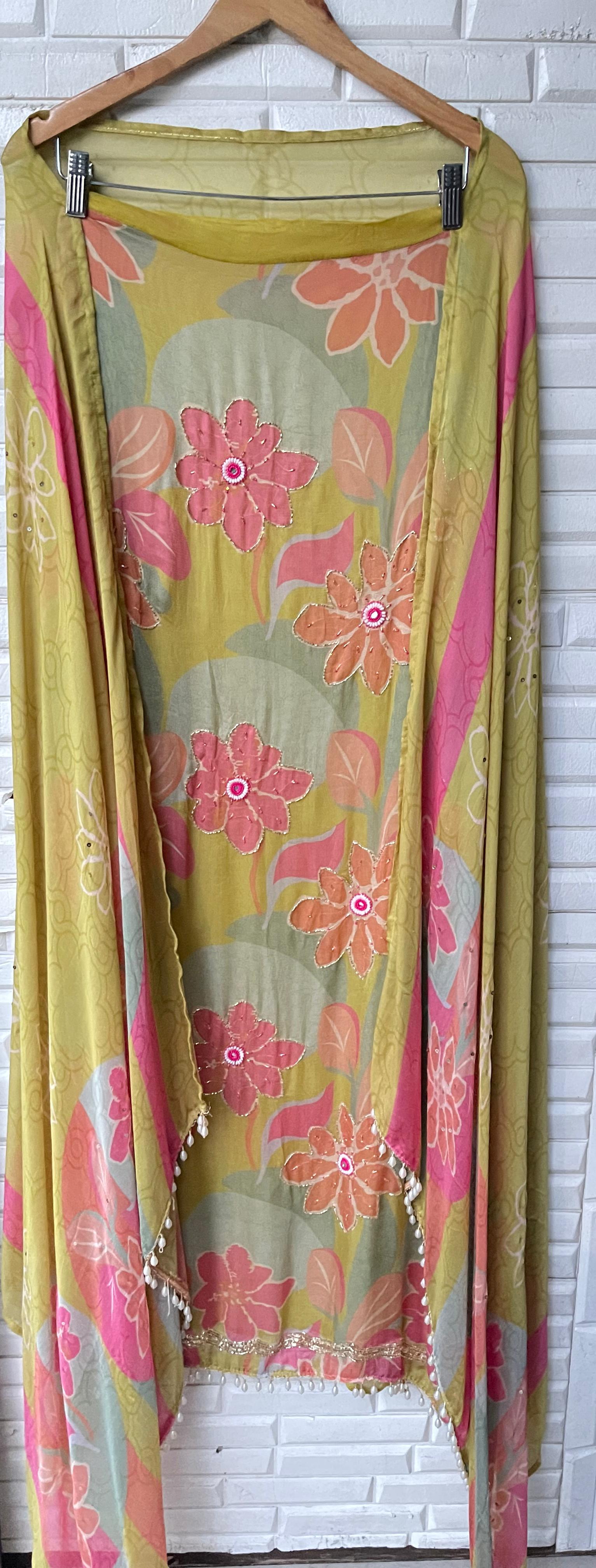 π Burberry printed fabric dupatta with pearl border lace and sequence highlighting