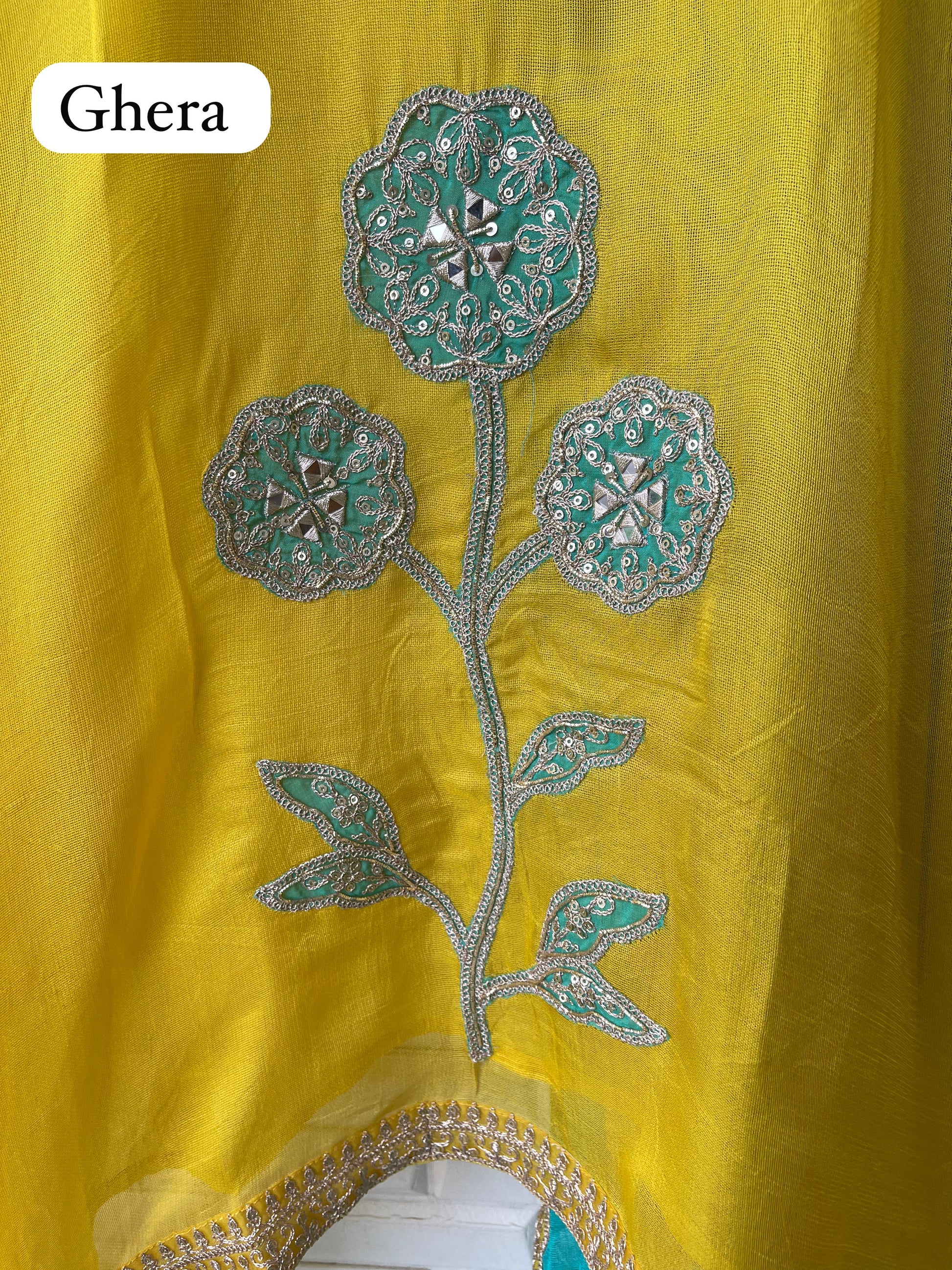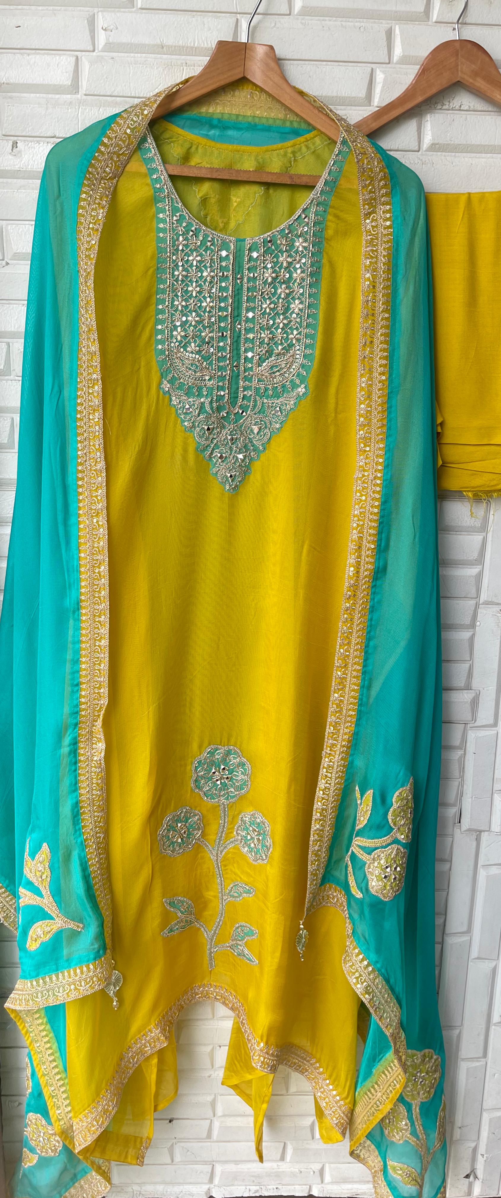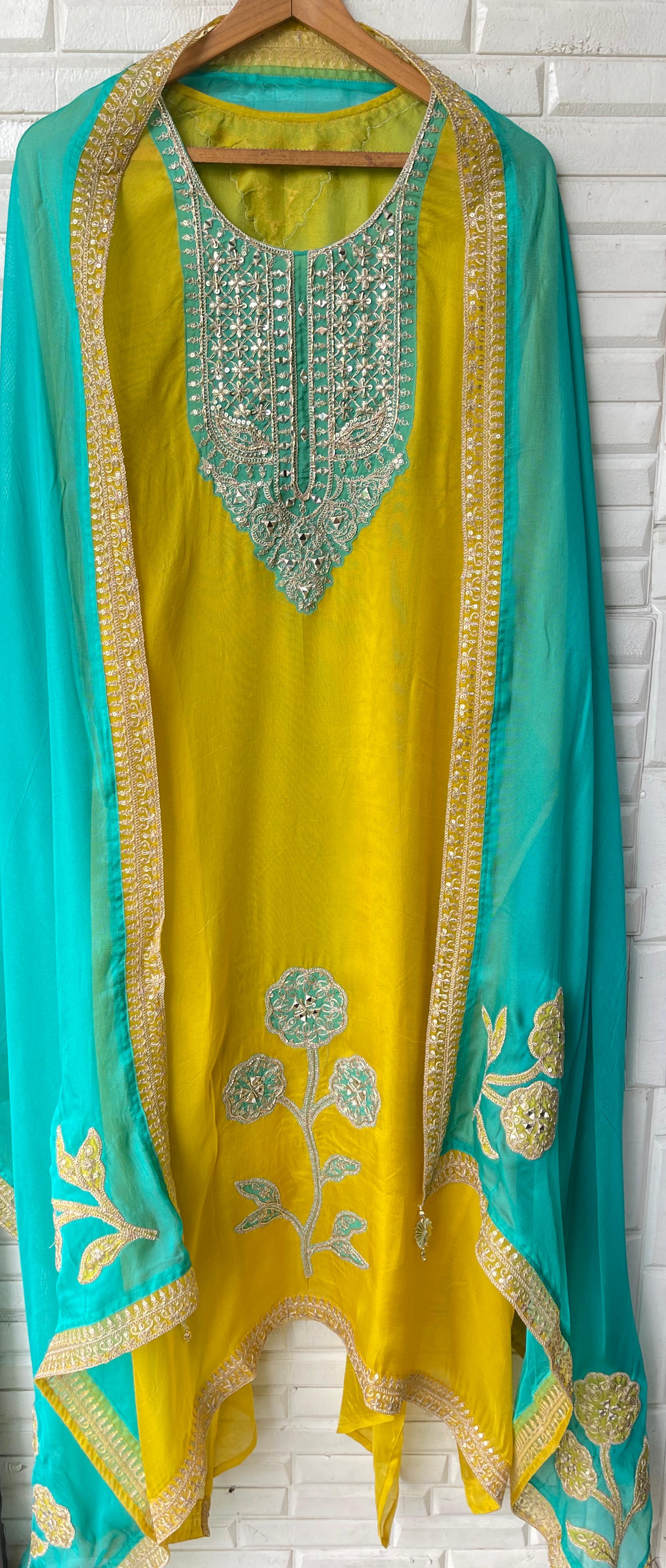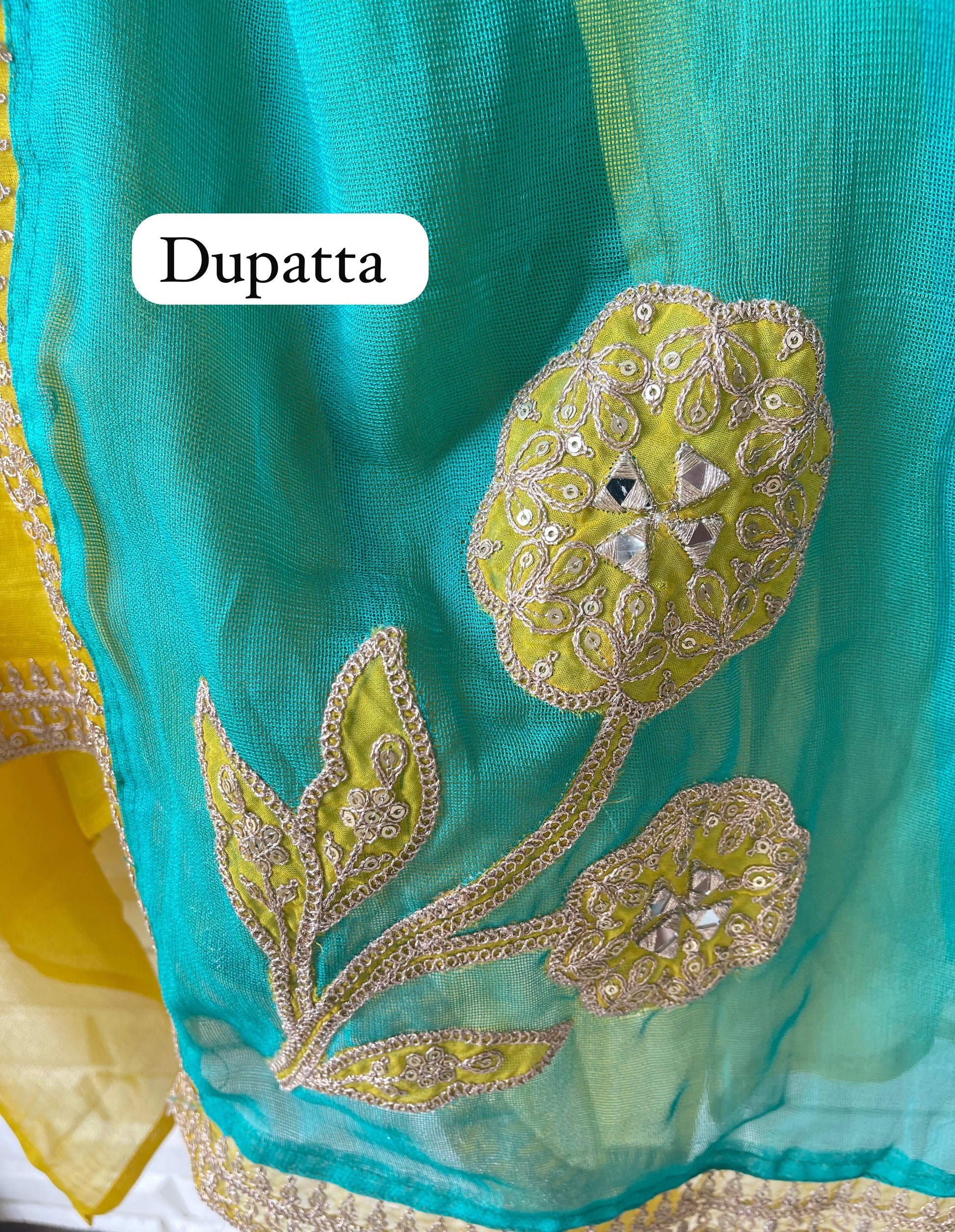 π burberry fabric unstitched shirt with actual mirror work zari sequence embroidery on contrasting color patches