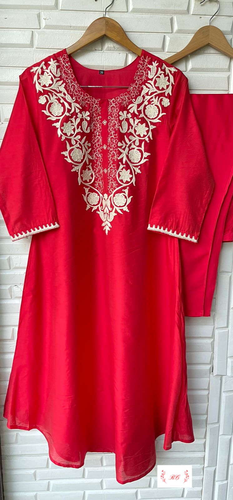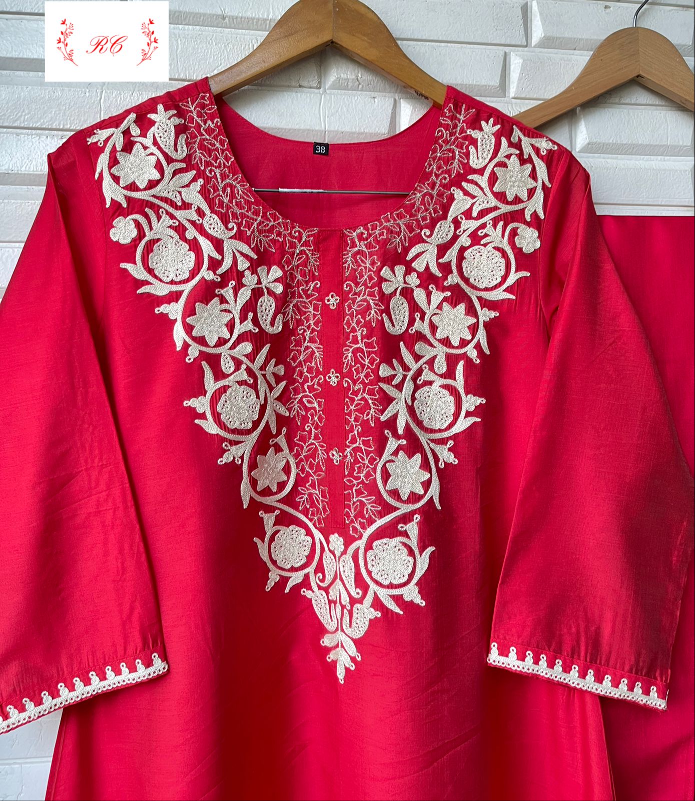 😊 Chanderi cotton fabric stitched coord set shirt with resham zari embroidery and attached lining