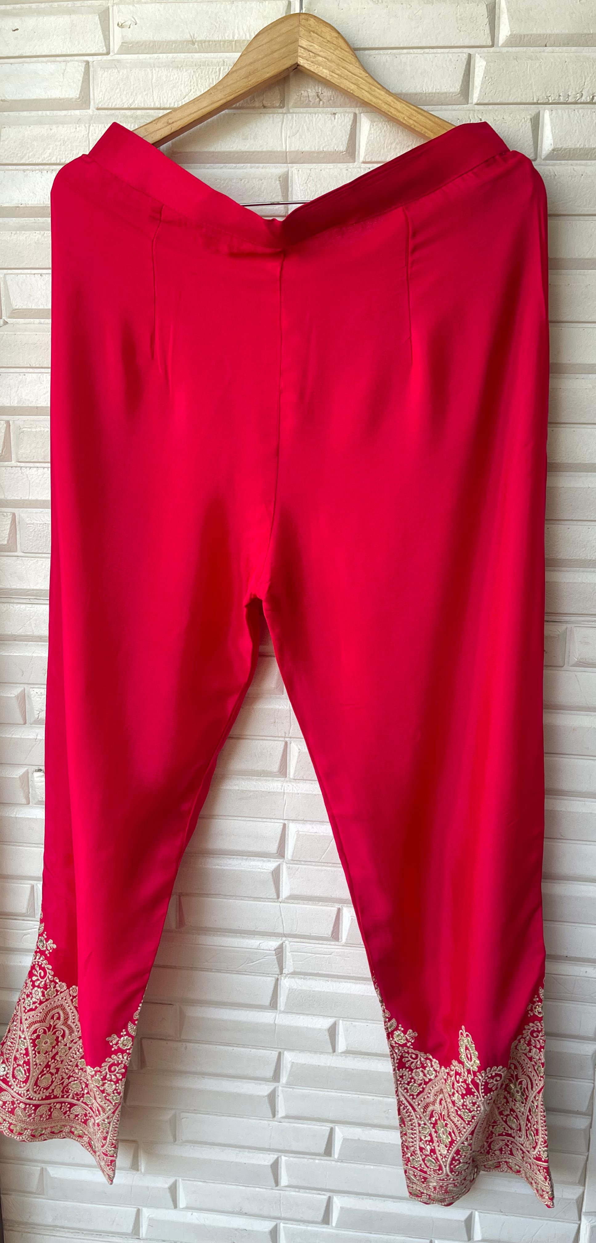 ☺️ pure chinon fabric stitched pants with attached lining and same embroidery as shirt