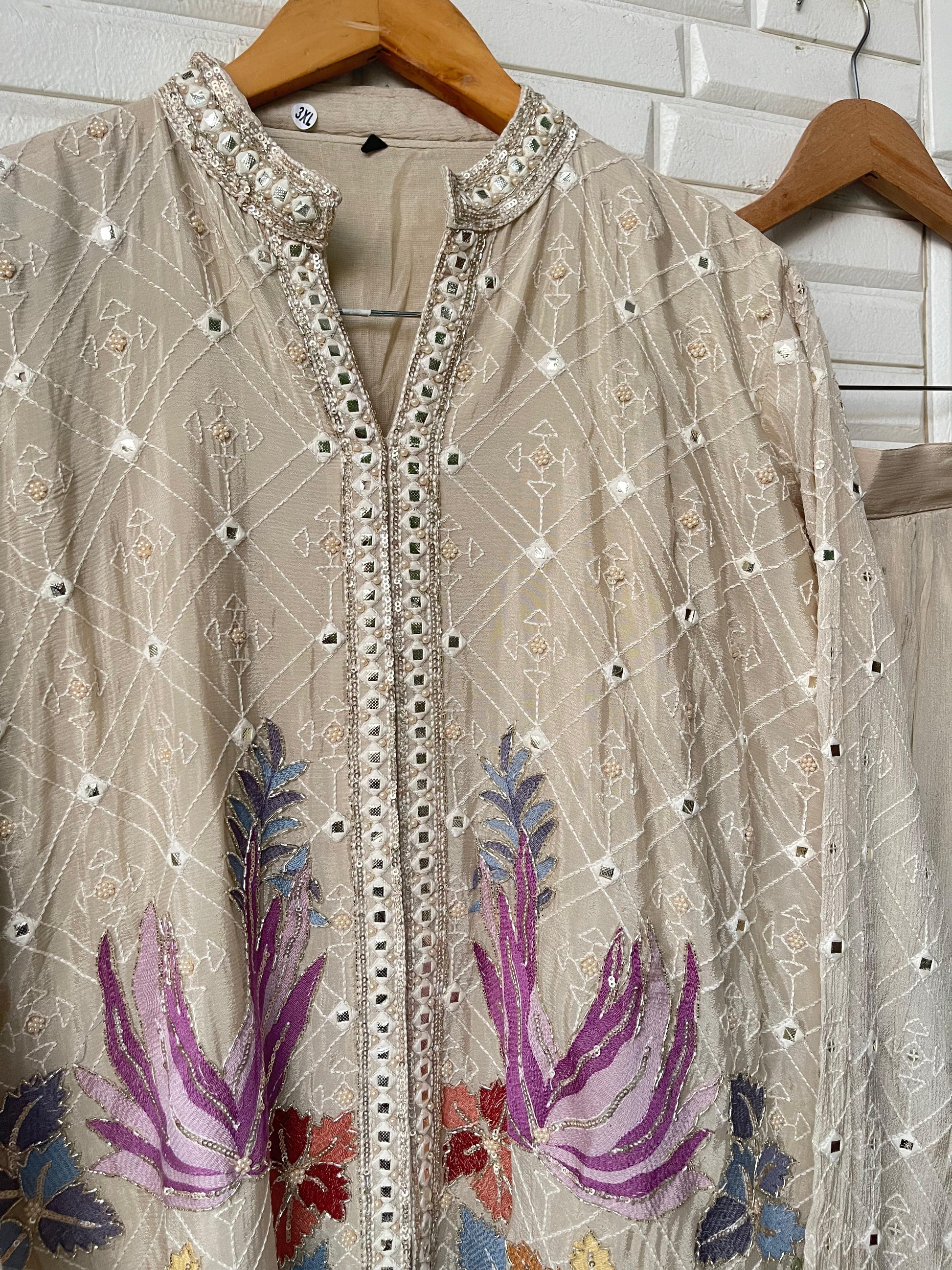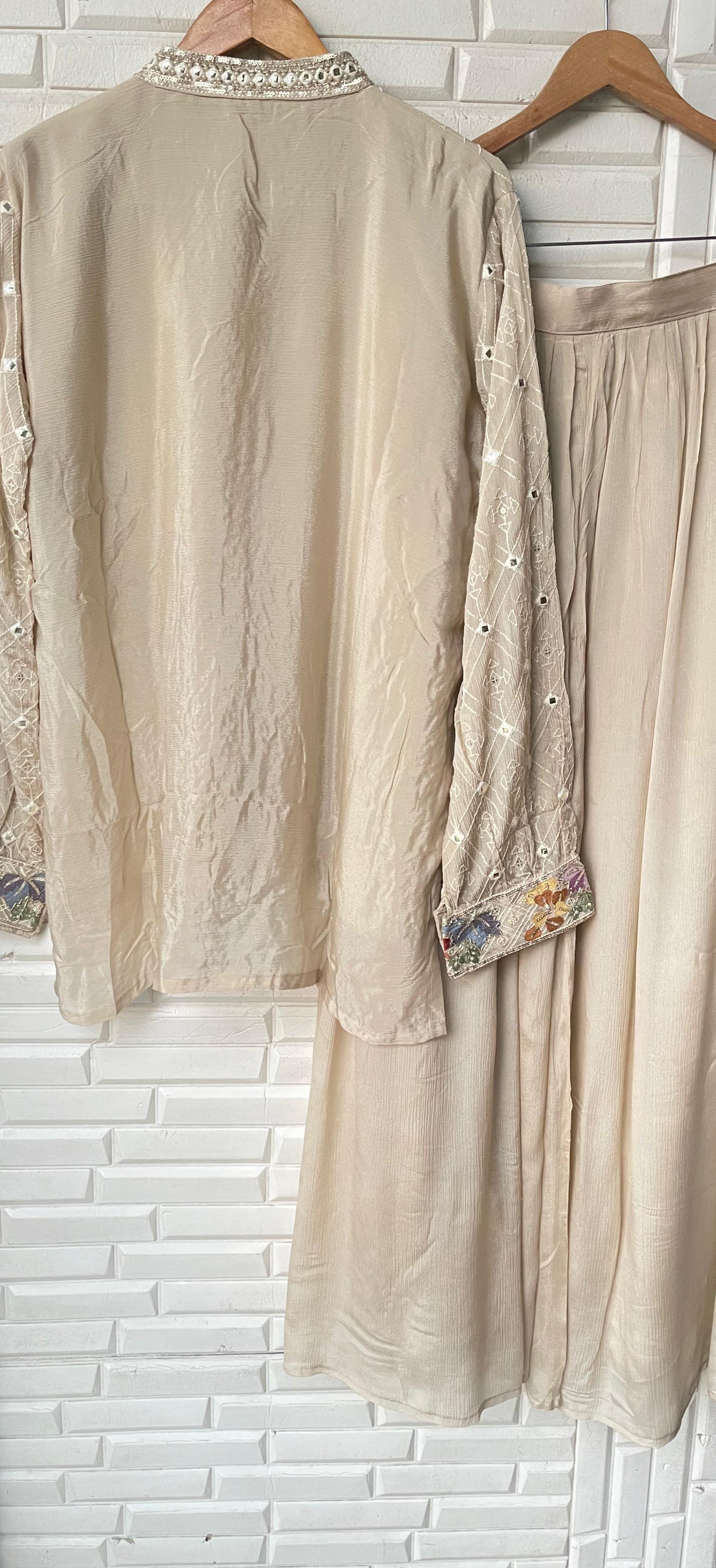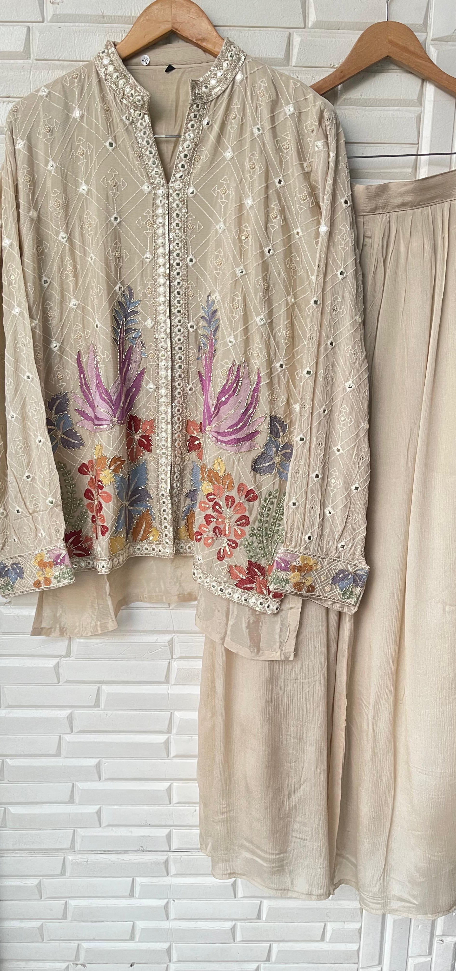 😊 pure chinnon fabric readymade coord set shirt with attached lining sequence kutdanna pearl resham embroidery