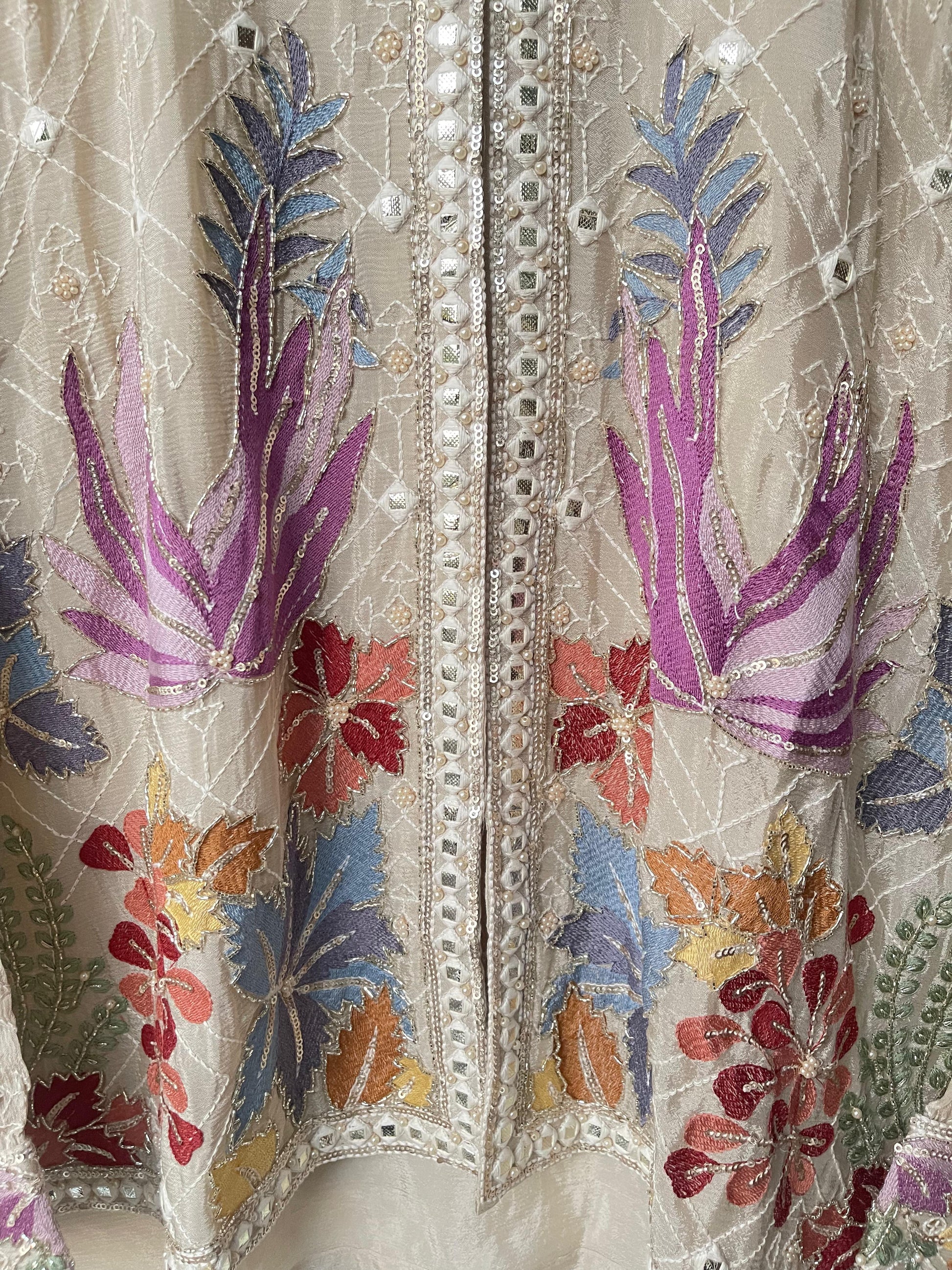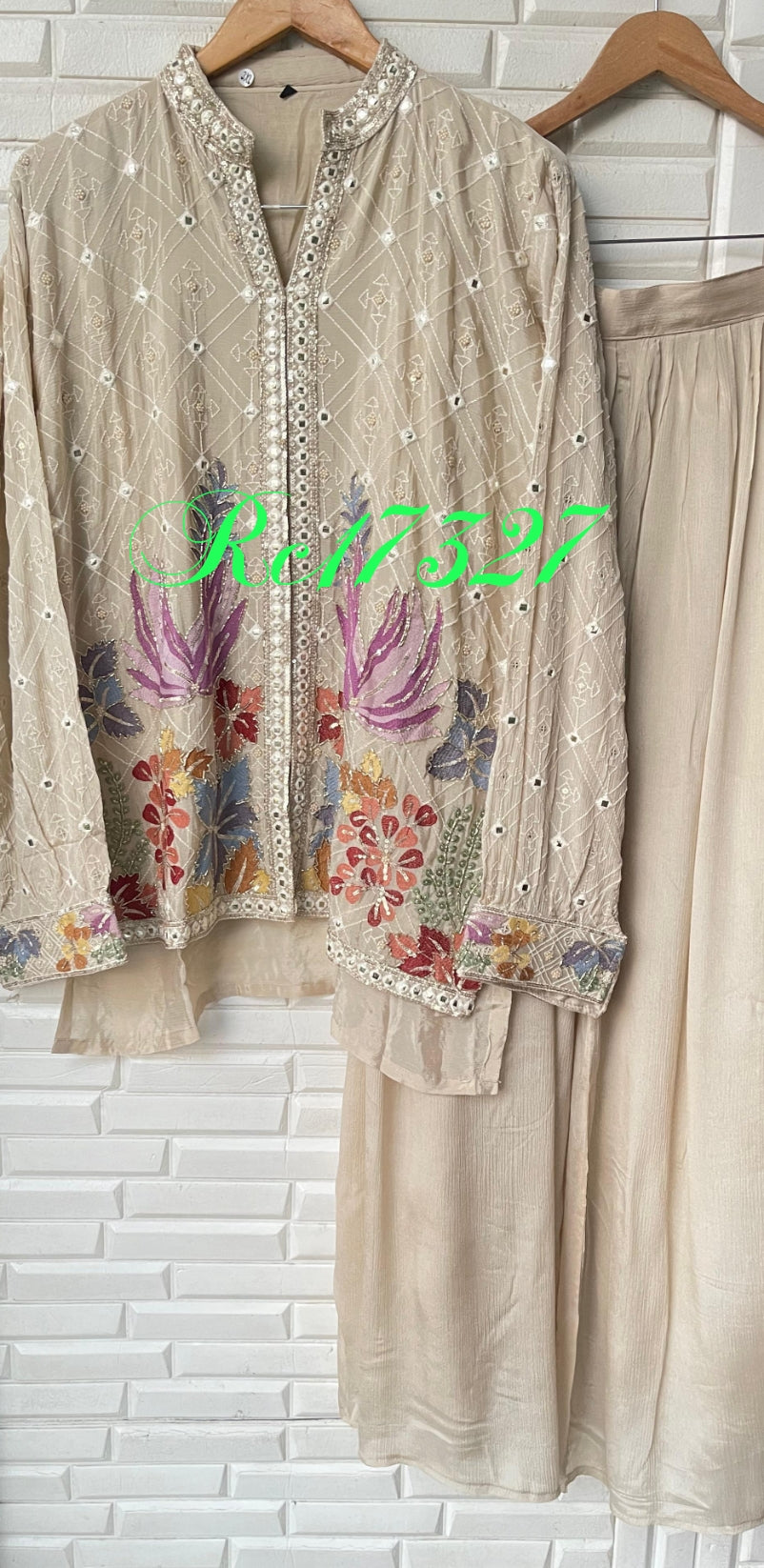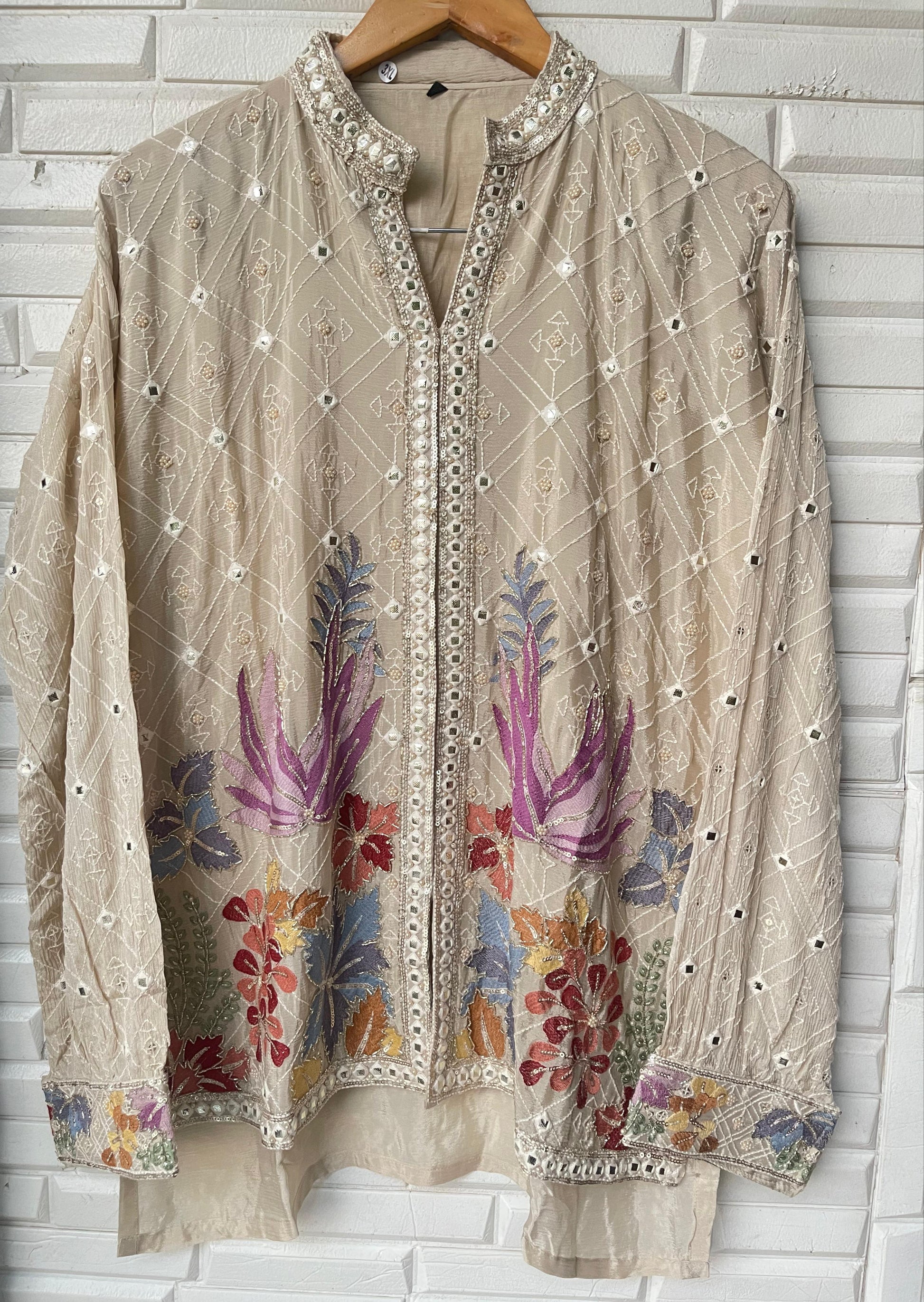 😊 pure chinnon fabric readymade coord set shirt with attached lining sequence kutdanna pearl resham embroidery