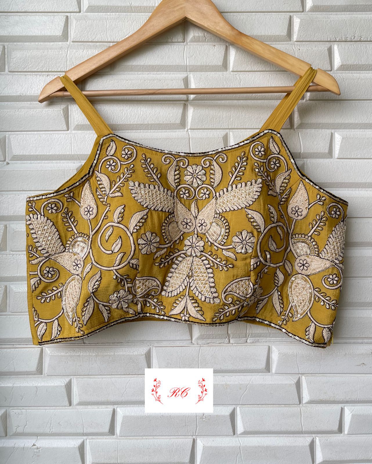☺️ pure chinnon fabric padded stitched inner blouse with attached lining sequence resham embroidery