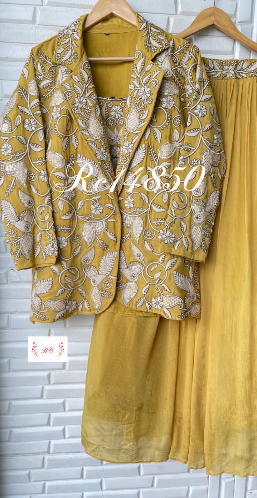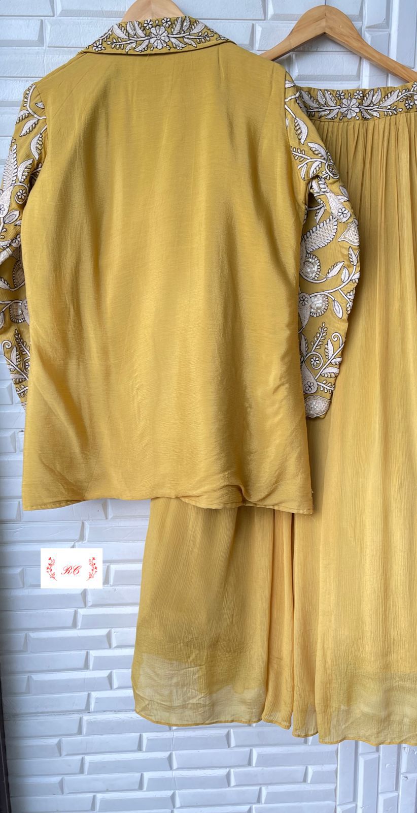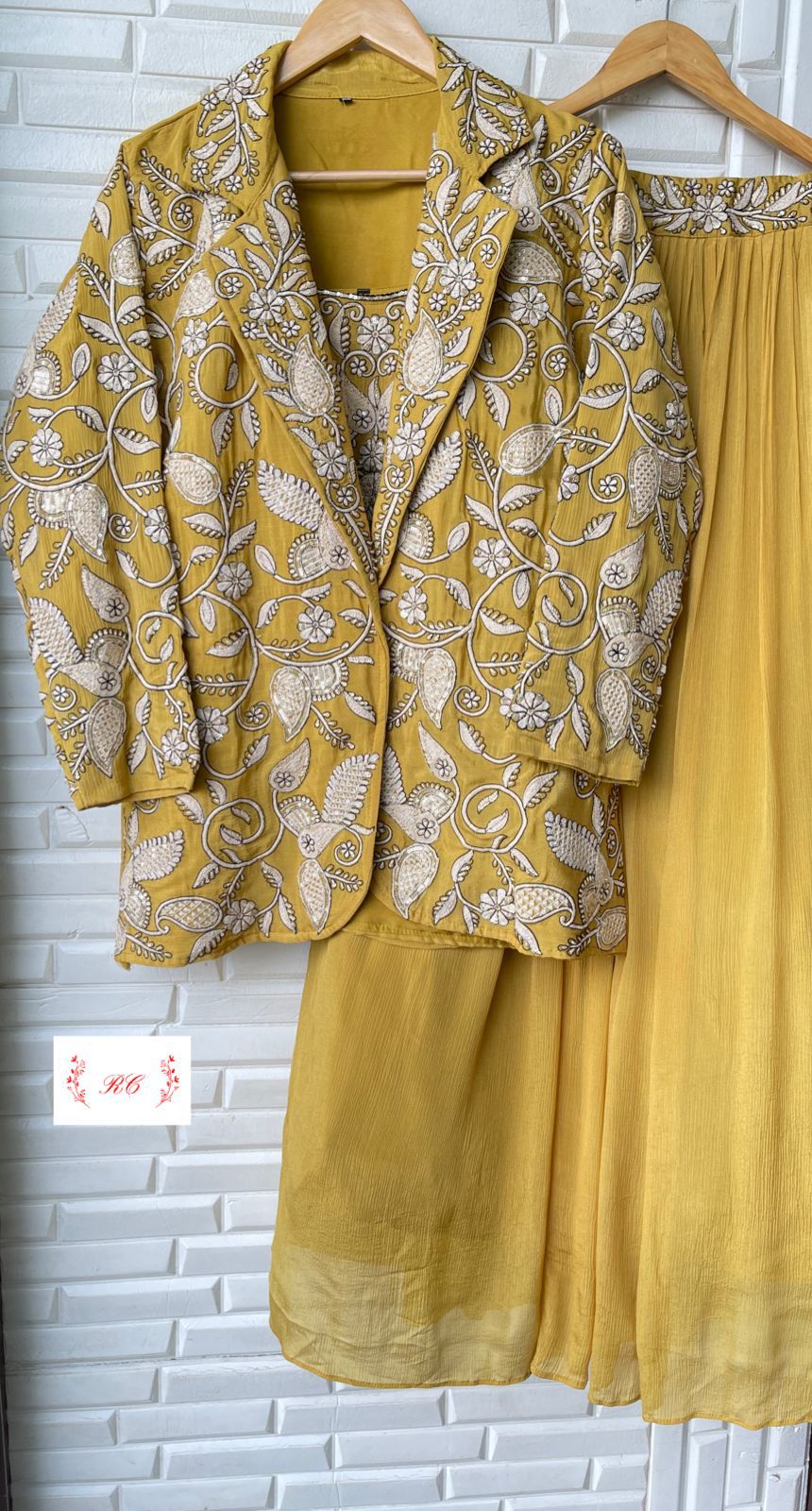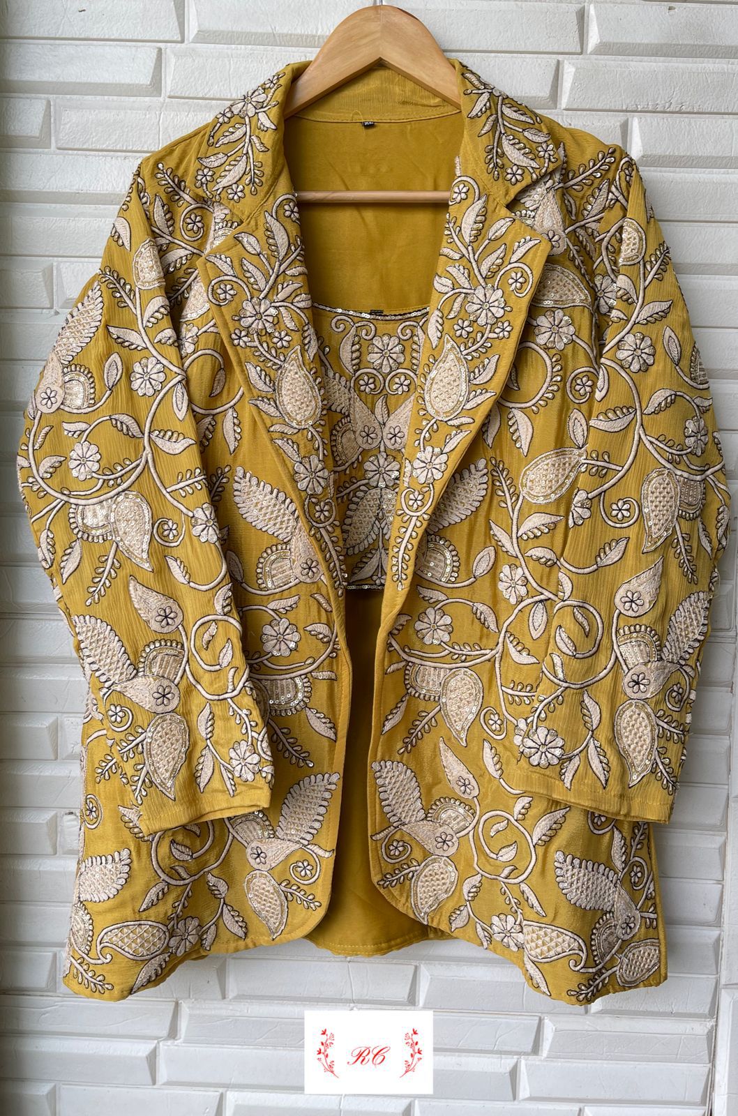 😊 pure chinnon fabric stitched padded jacket with attached lining and resham sequence zari embroidery