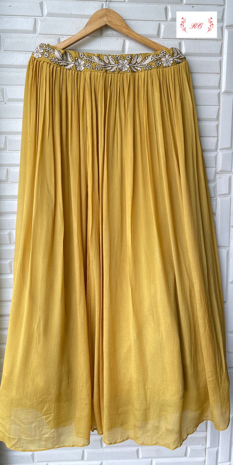 ☺️ pure chinnon fabric stitched lehenga / skirt with attached lining and same embroidery as shirt and added bookram for extra flair