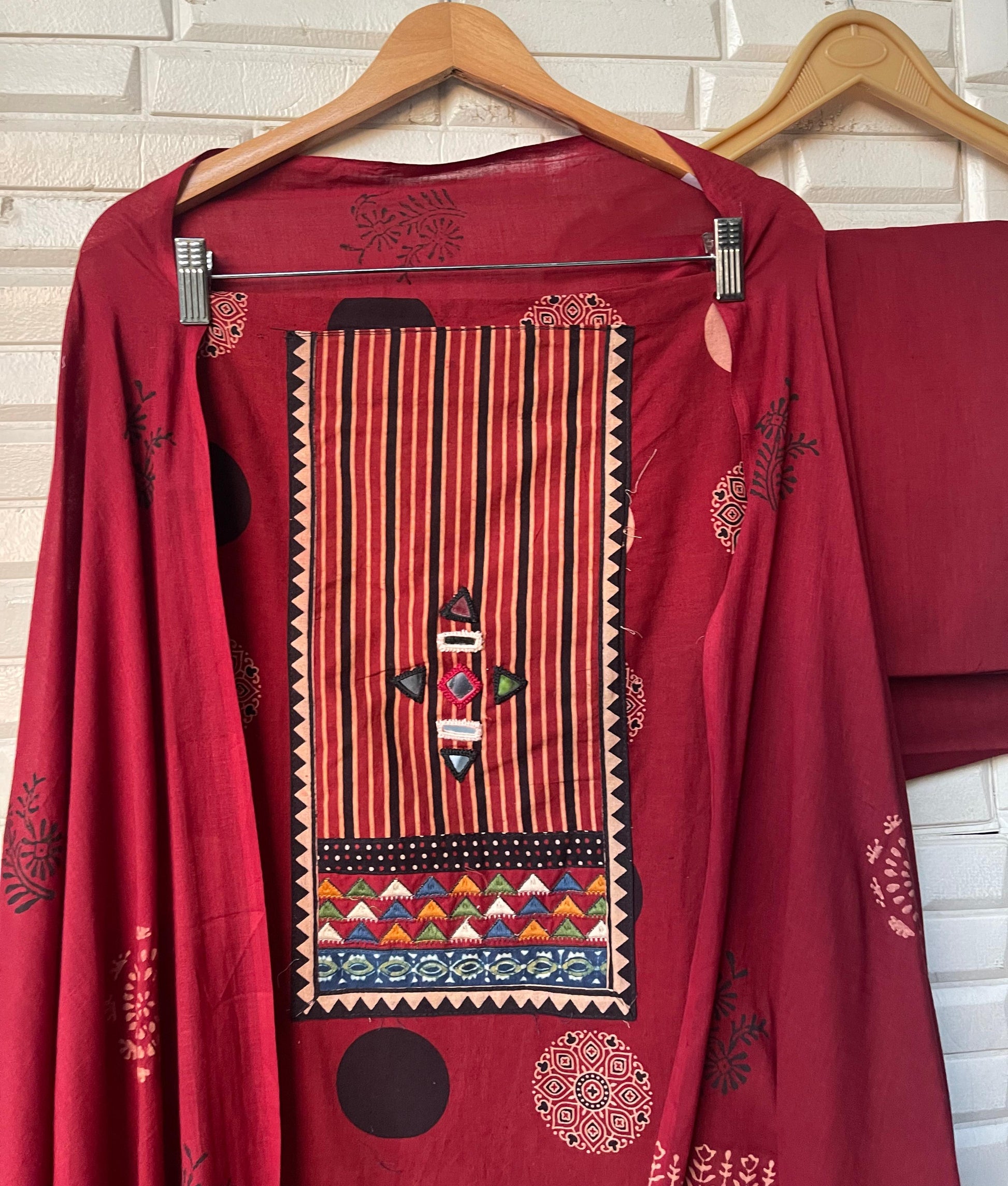 😊 cotton khadi fabric printed unstitched shirt with mirror work resham embroidery