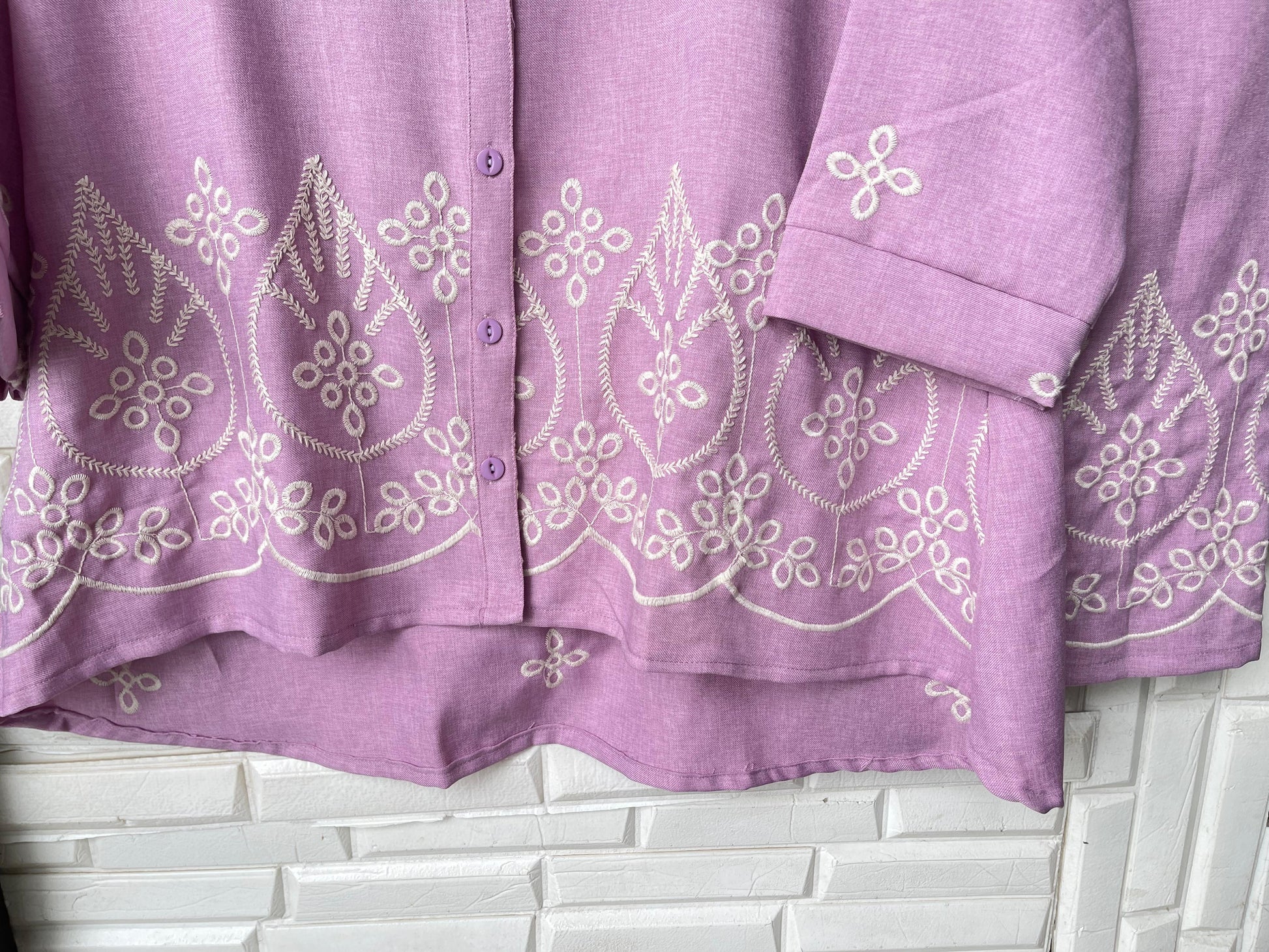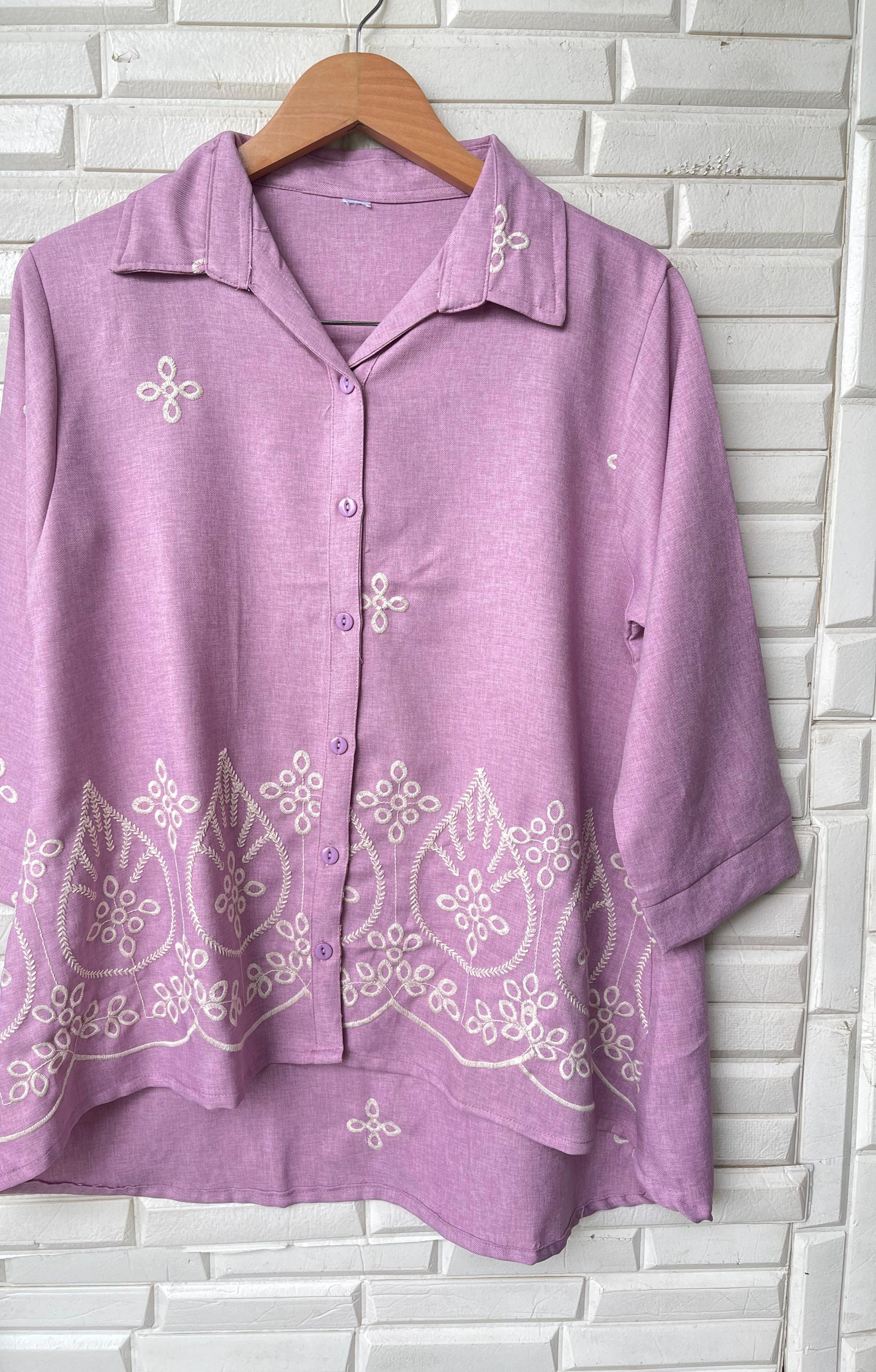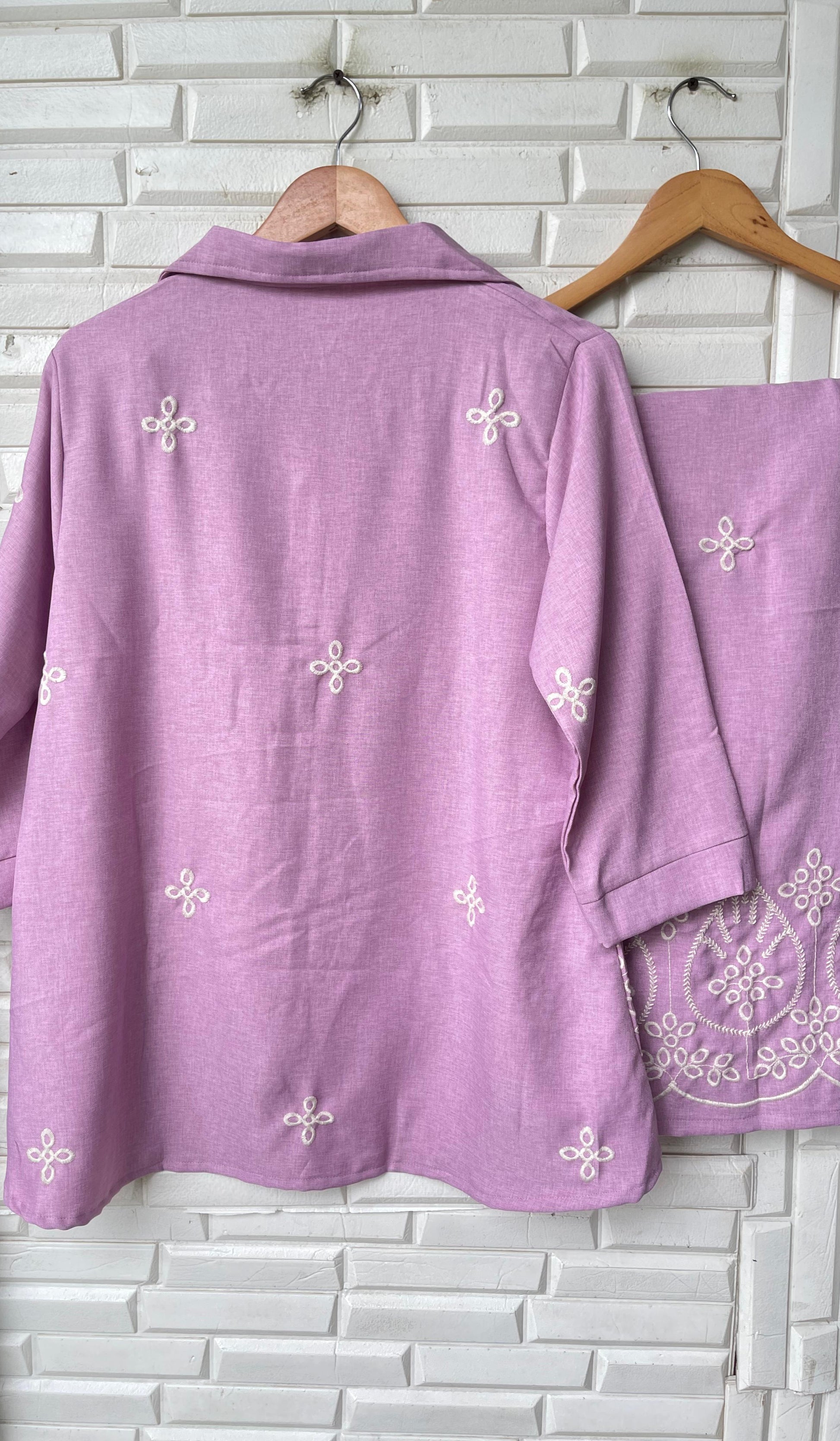 😊 soft cotton linen fabric readymade coord set shirt with resham embroidery