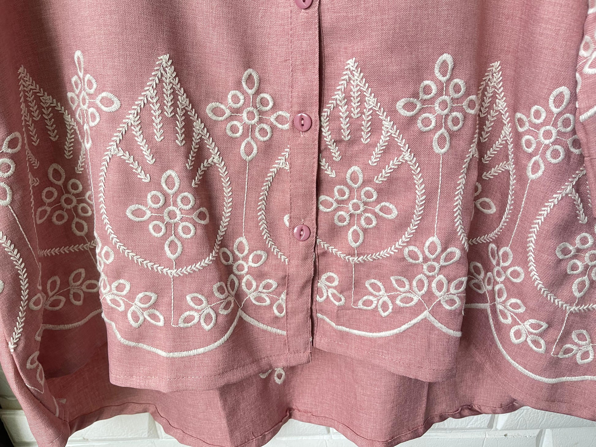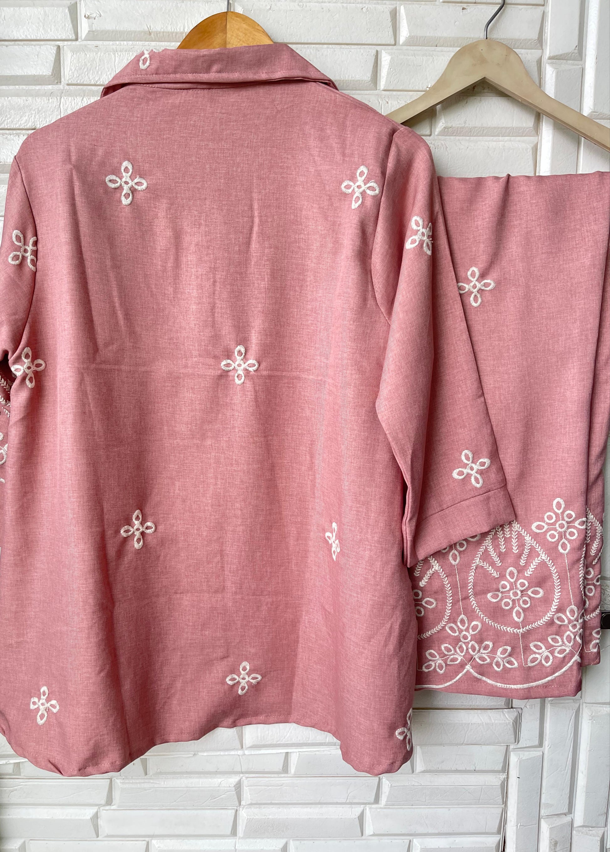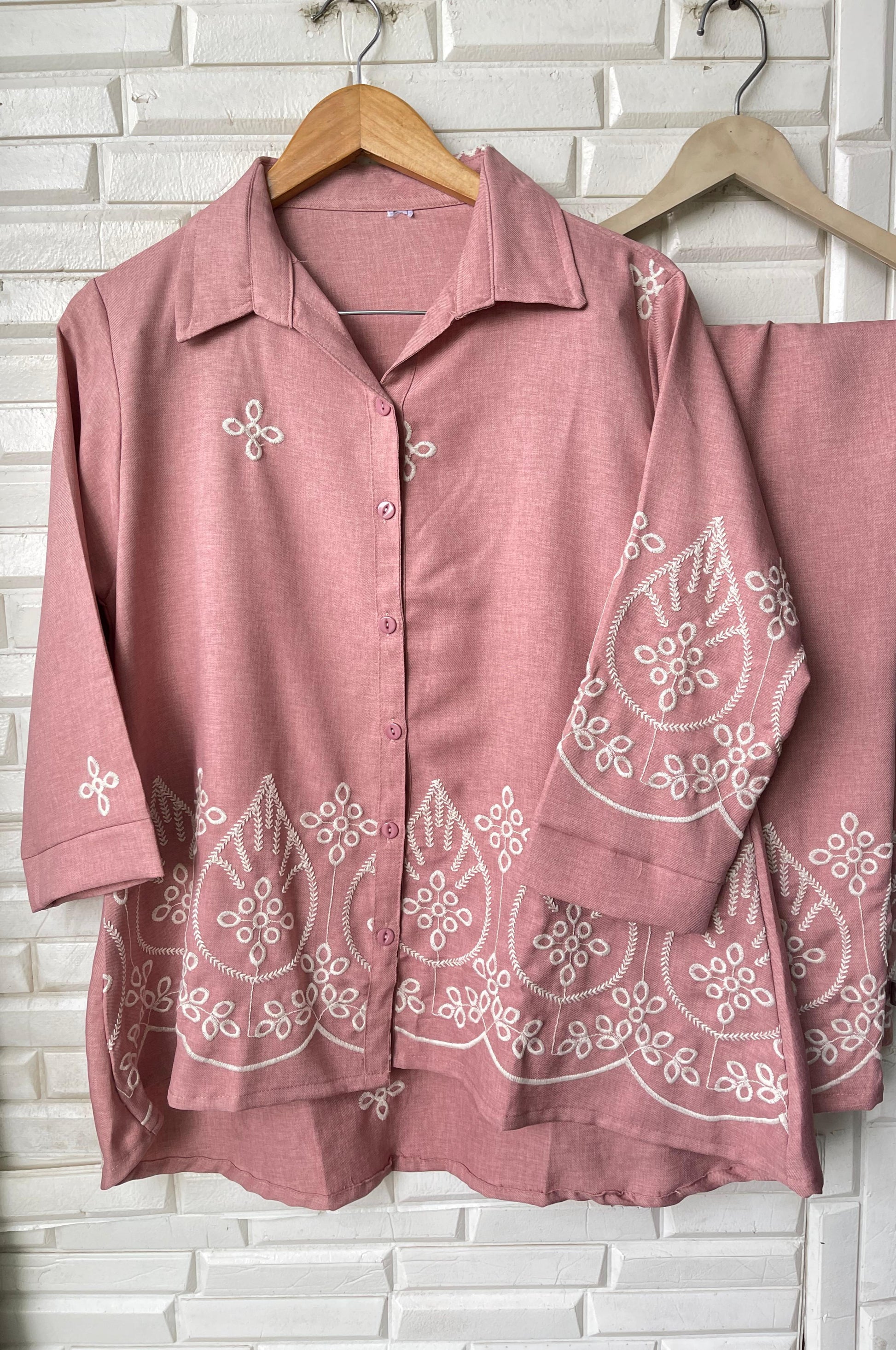 😊 soft cotton linen fabric readymade coord set shirt with resham embroidery