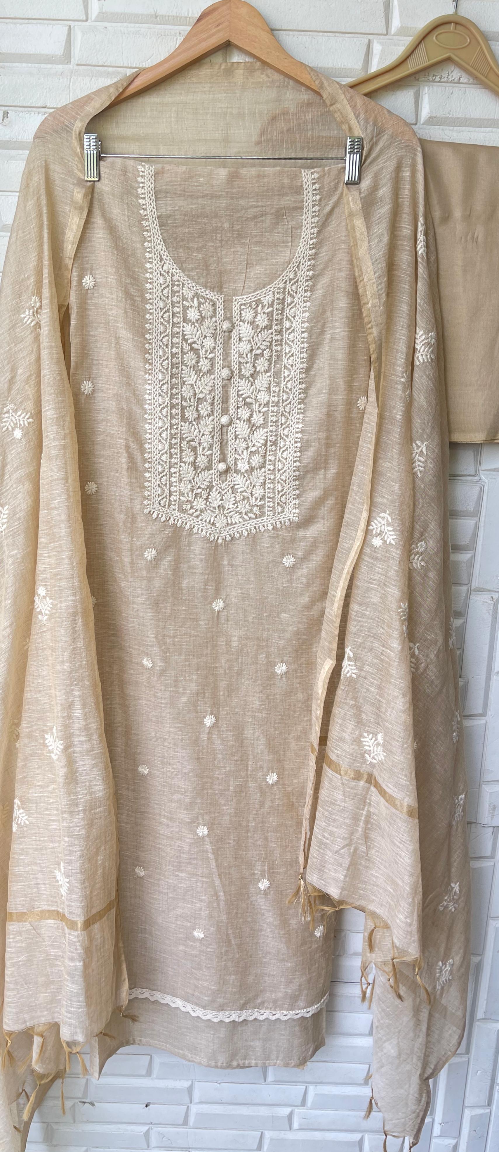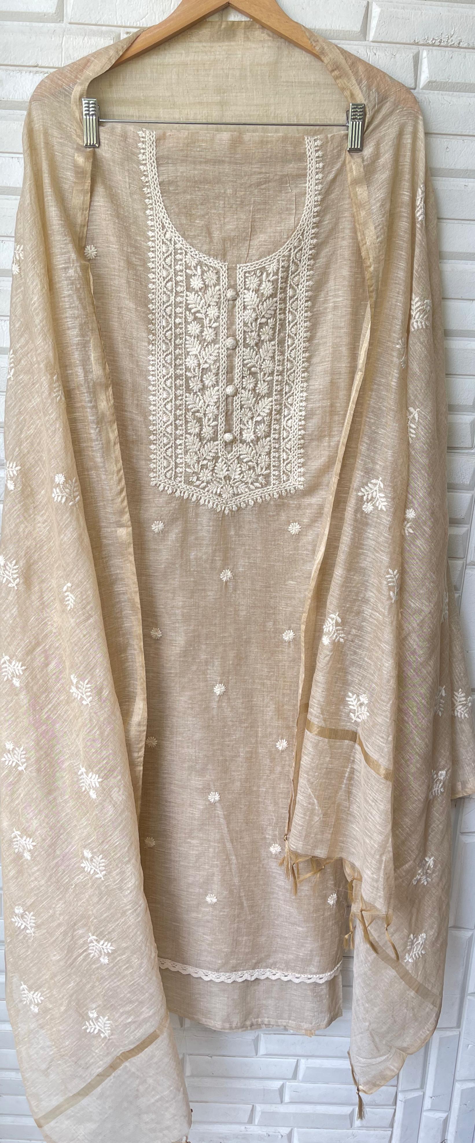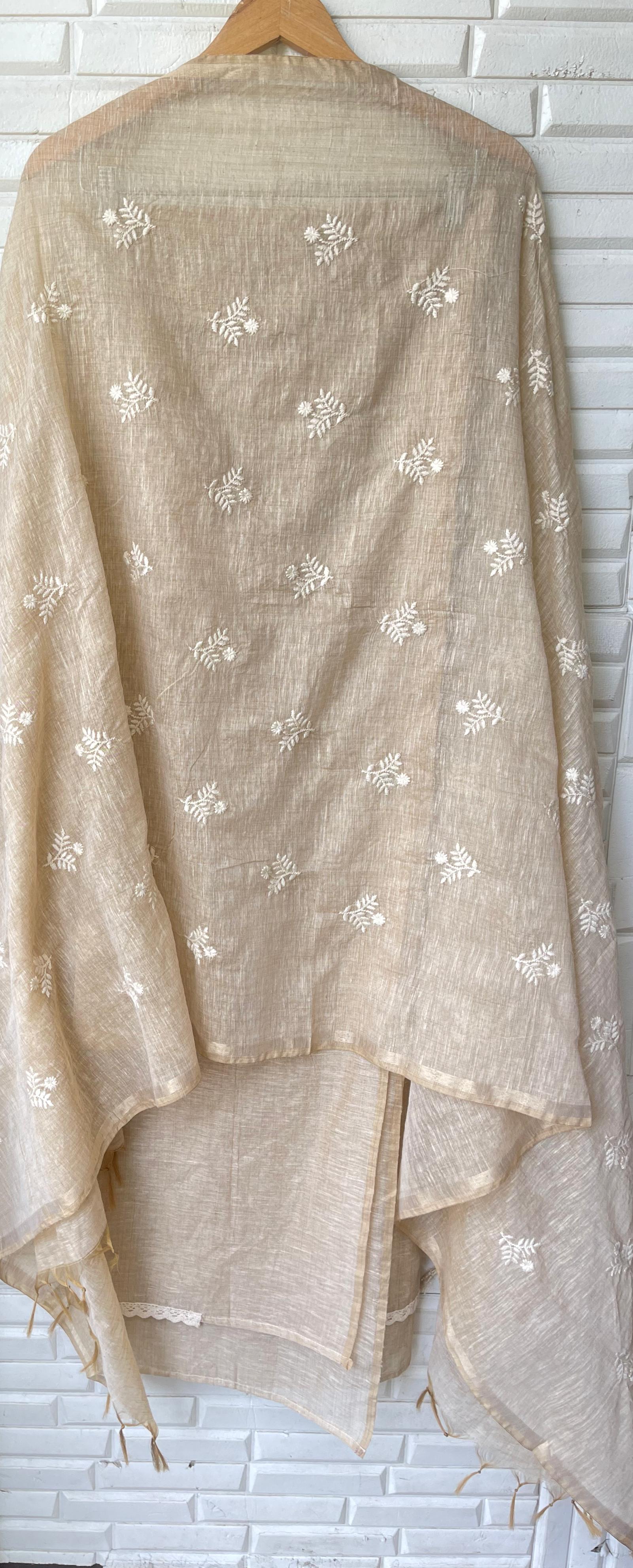 π khaadi cotton linen fabric dupatta with resham embroidery