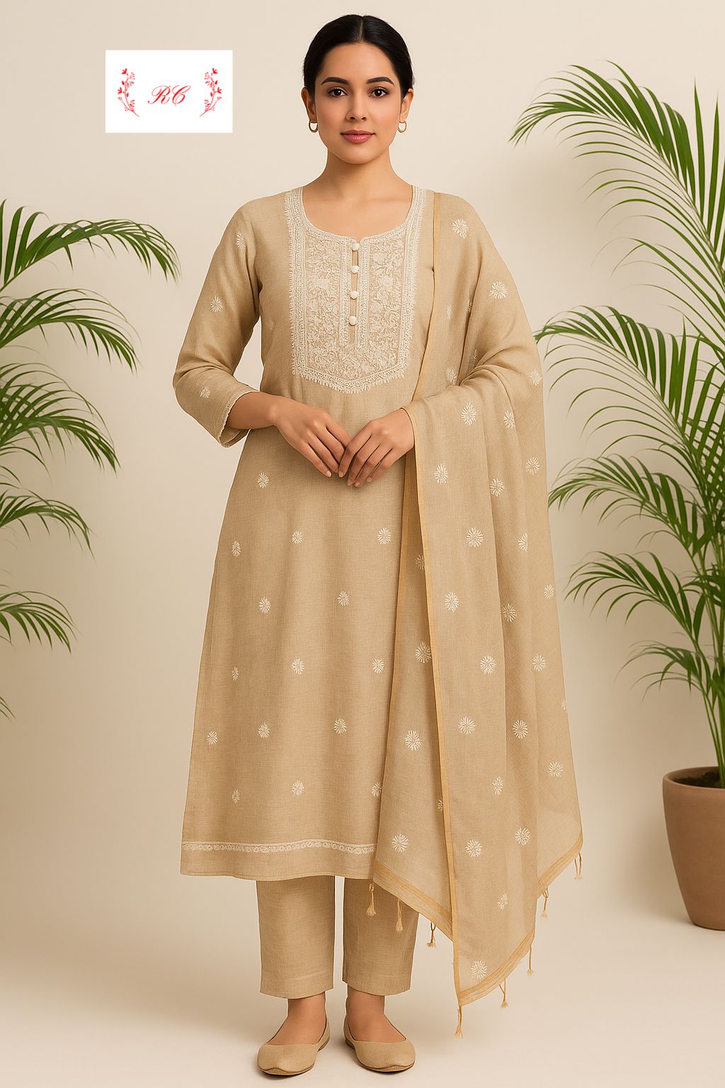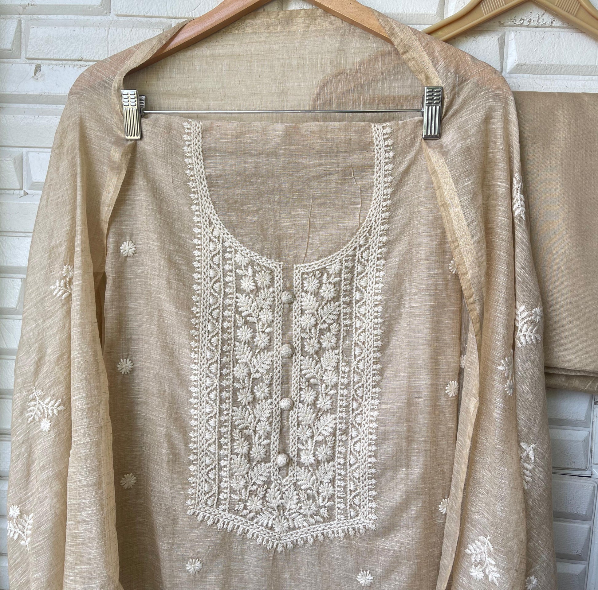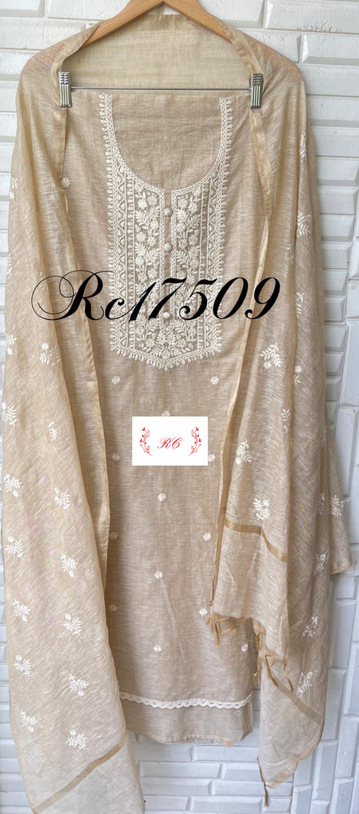 π khaadi cotton linen fabric dupatta with resham embroidery