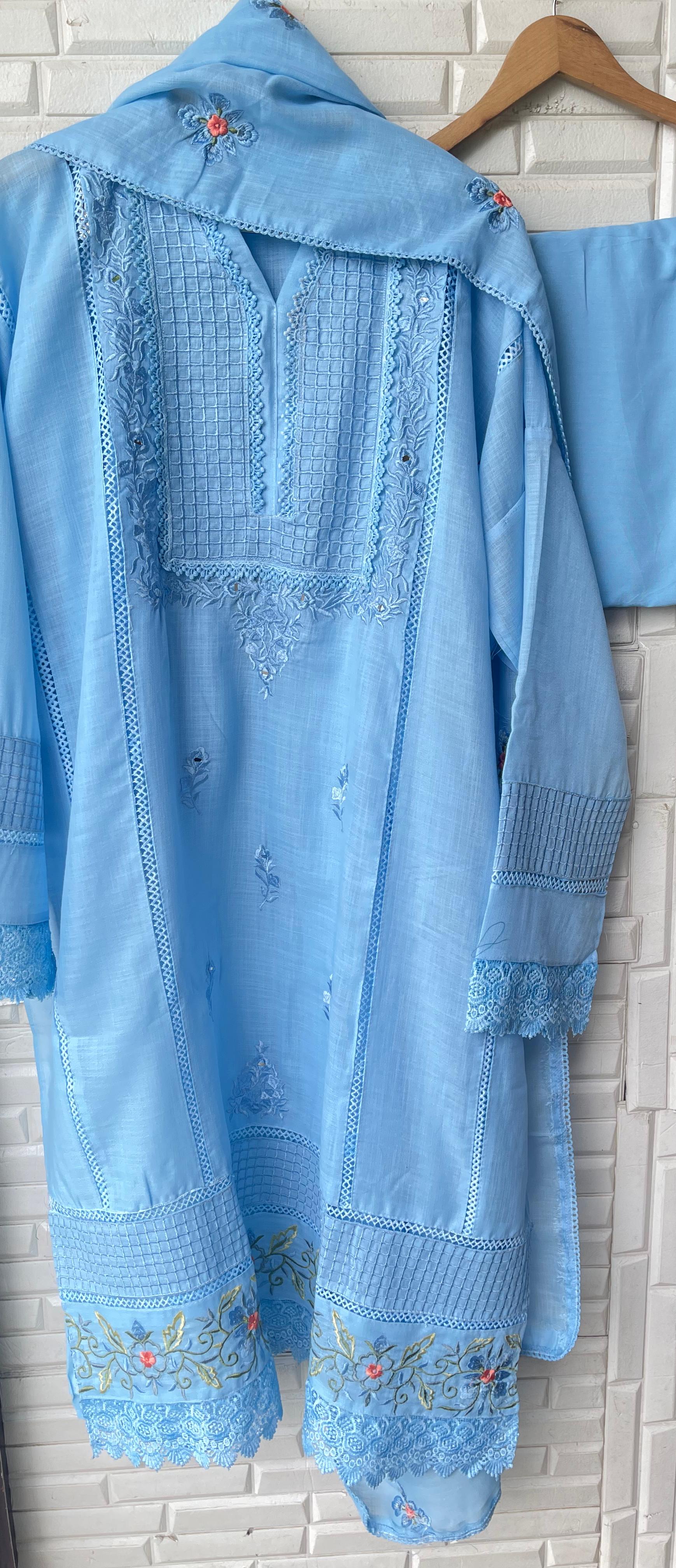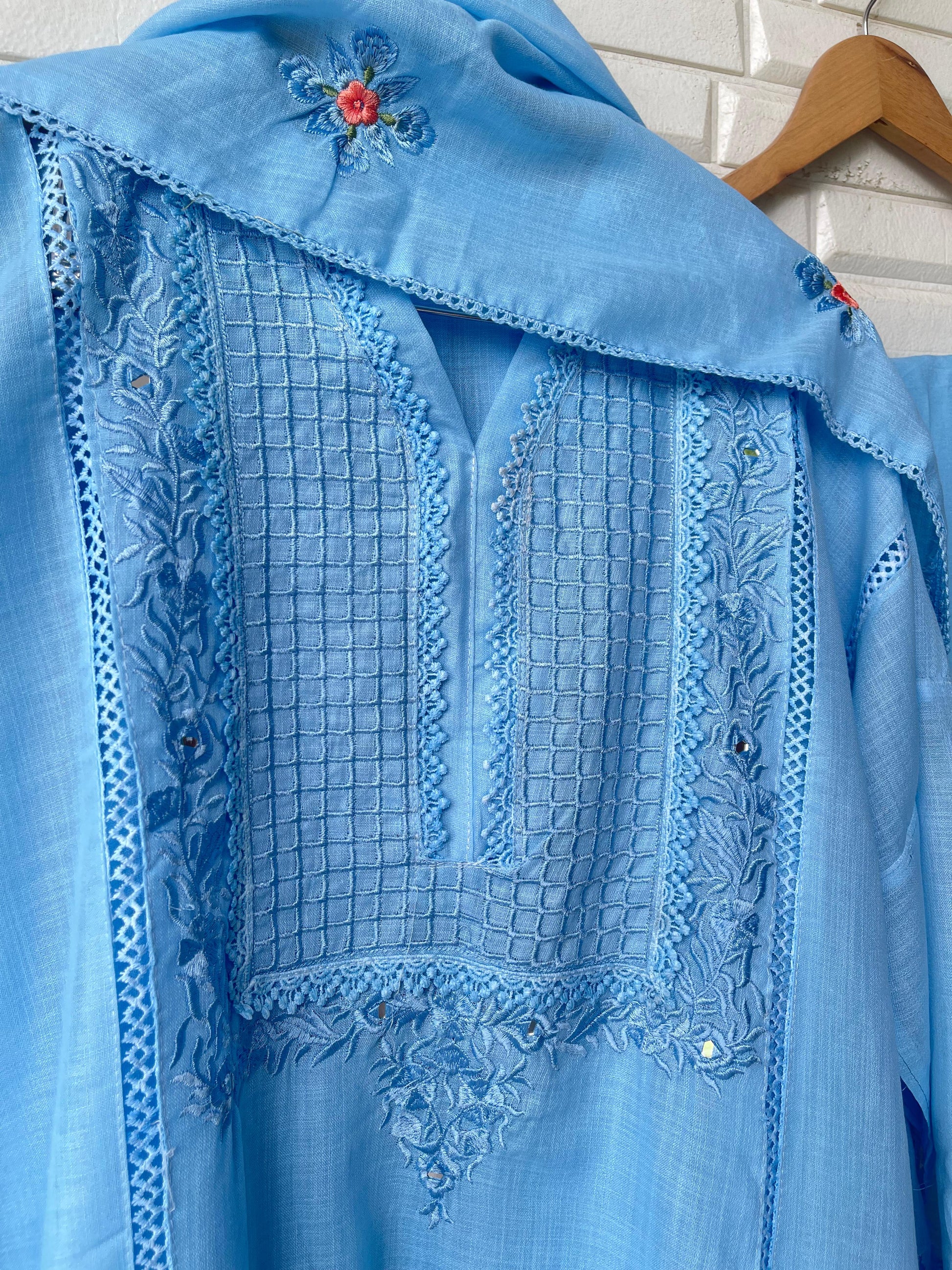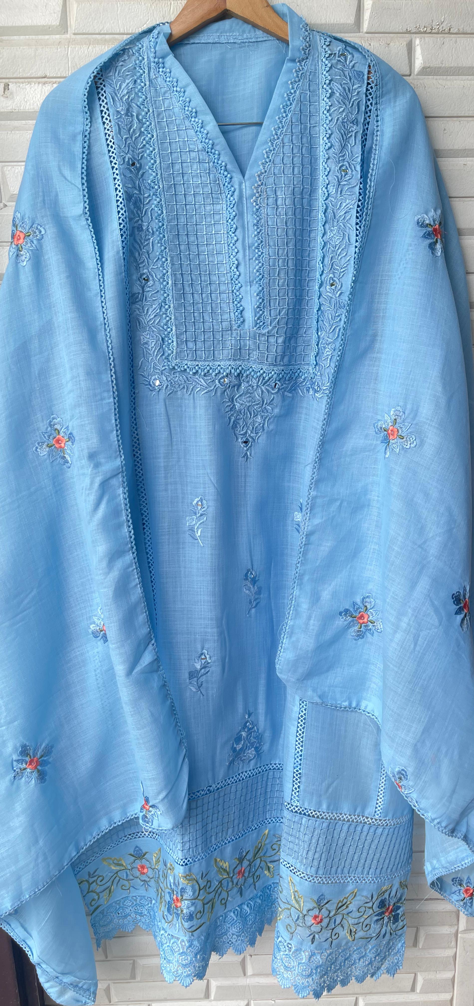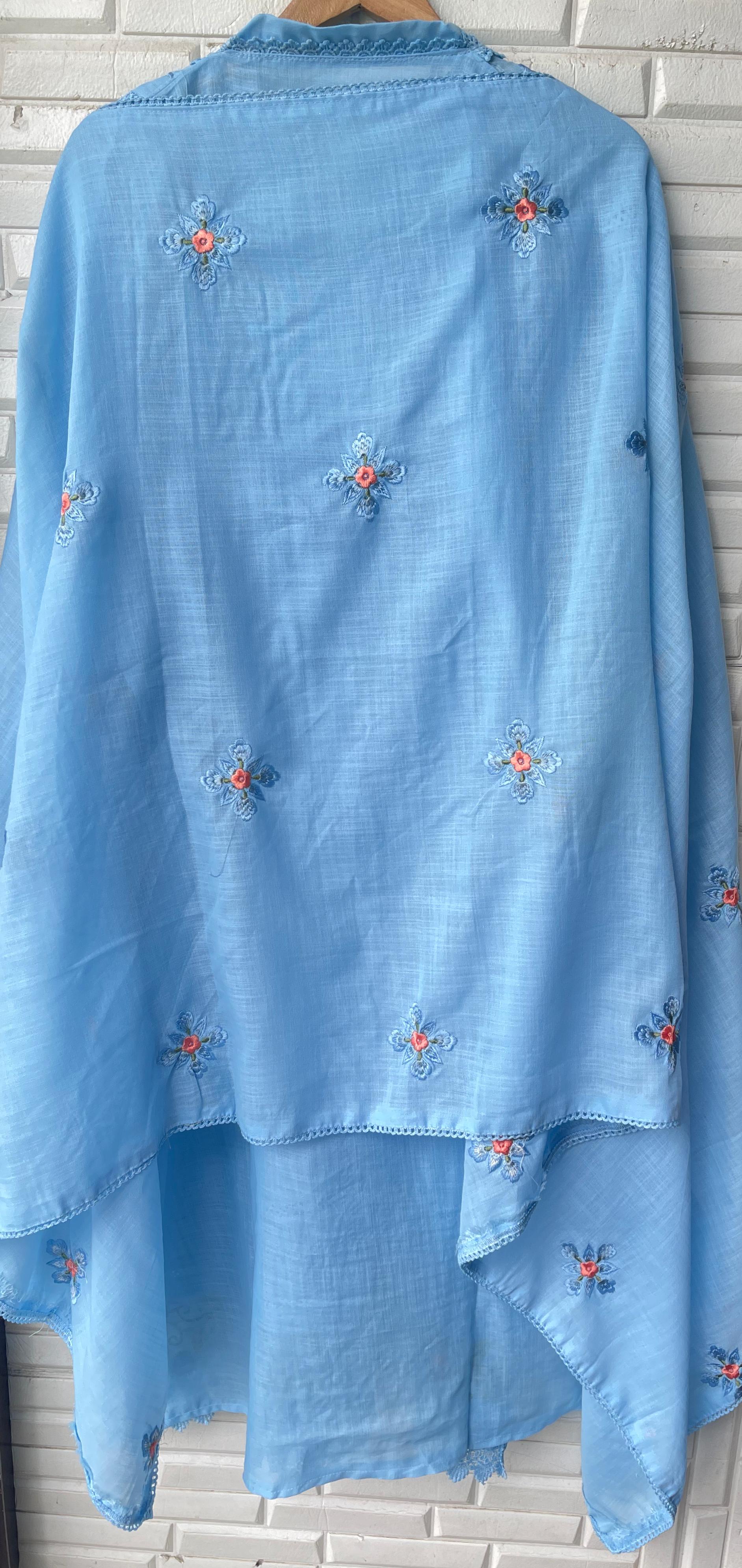 😊 cotton linen fabric dupatta with resham embroidery and crotia border lace and insertions