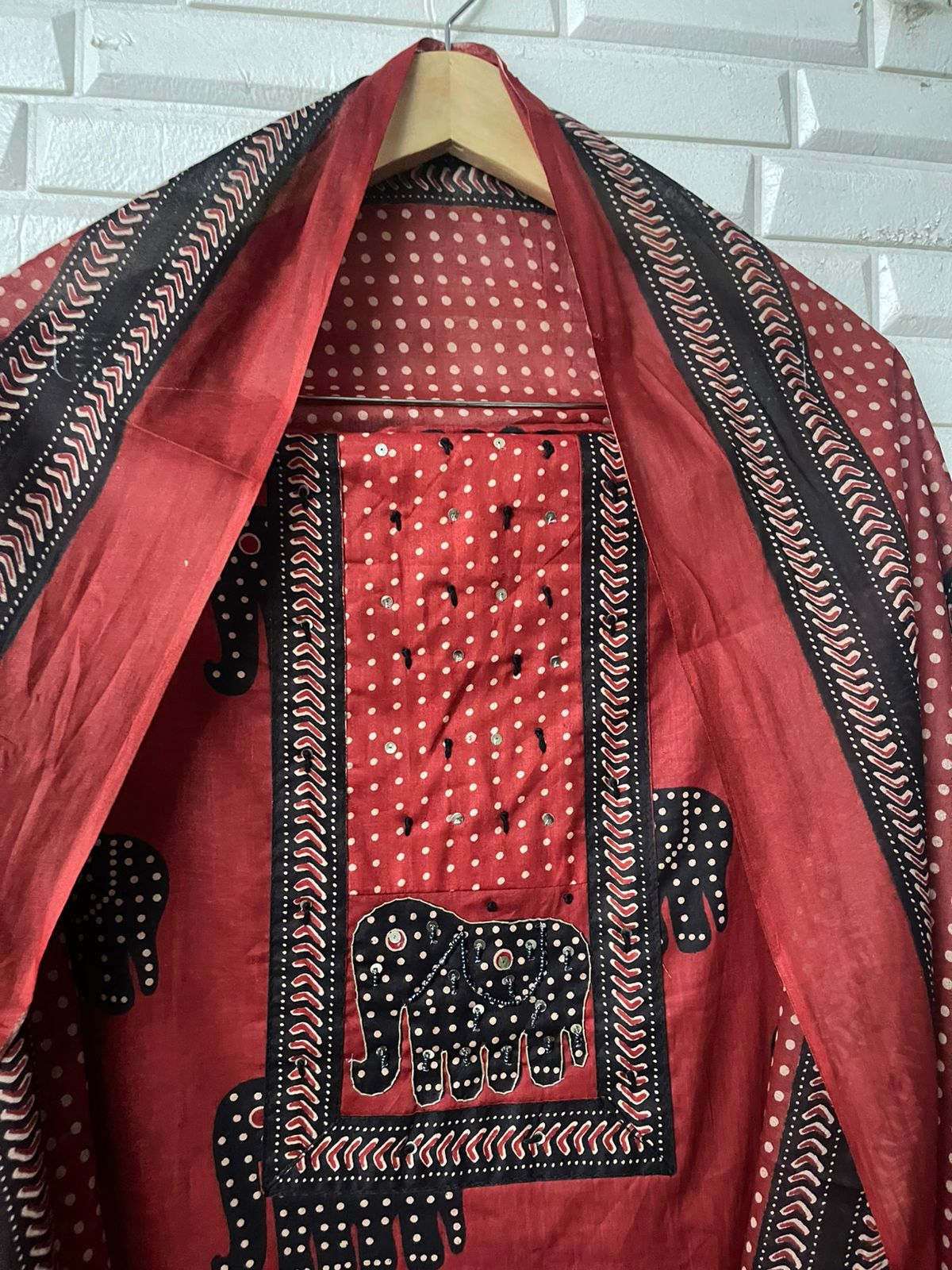 😊 cotton printed fabric unstitched shirt with knots pearl sequence resham embroidery