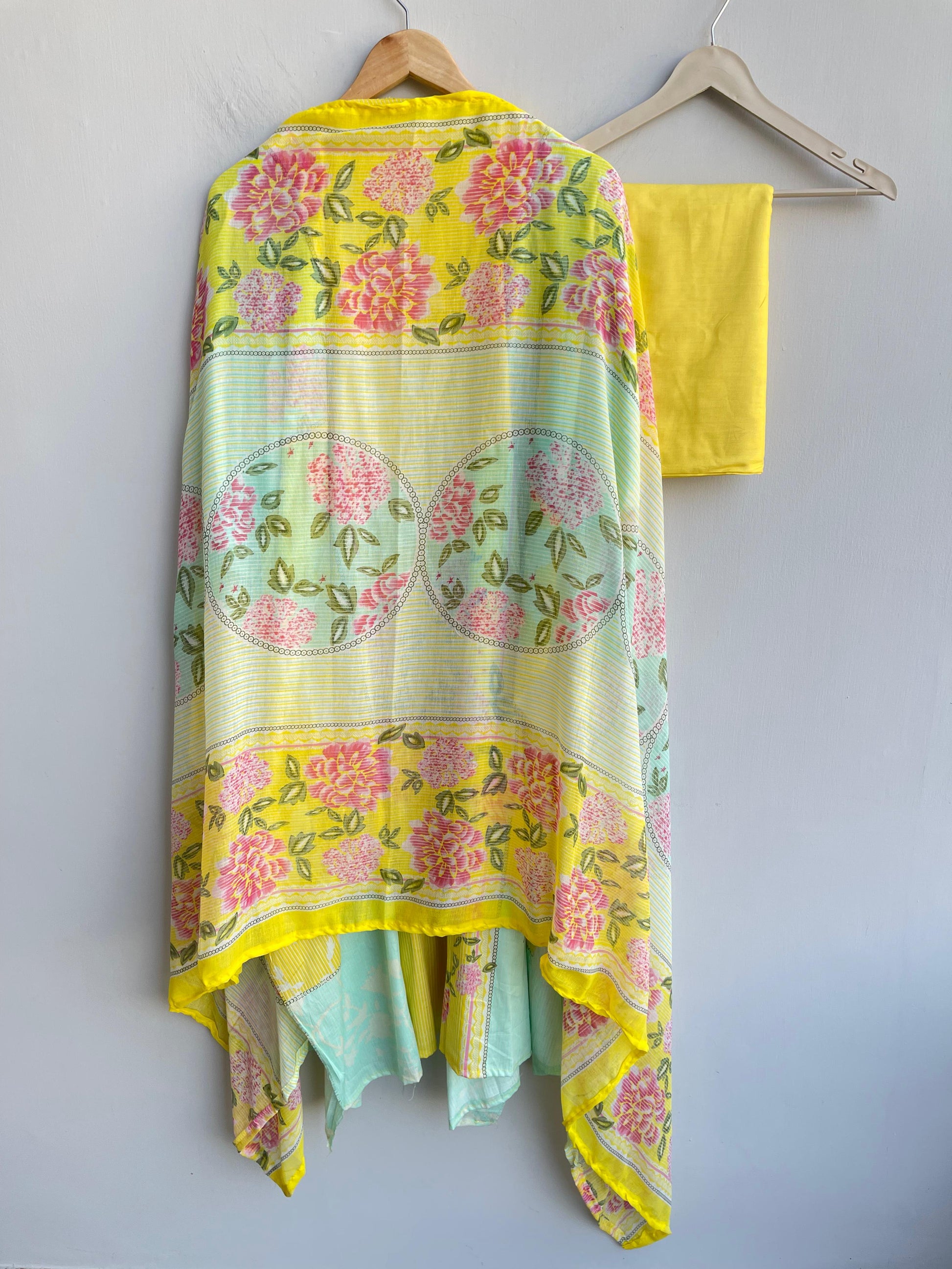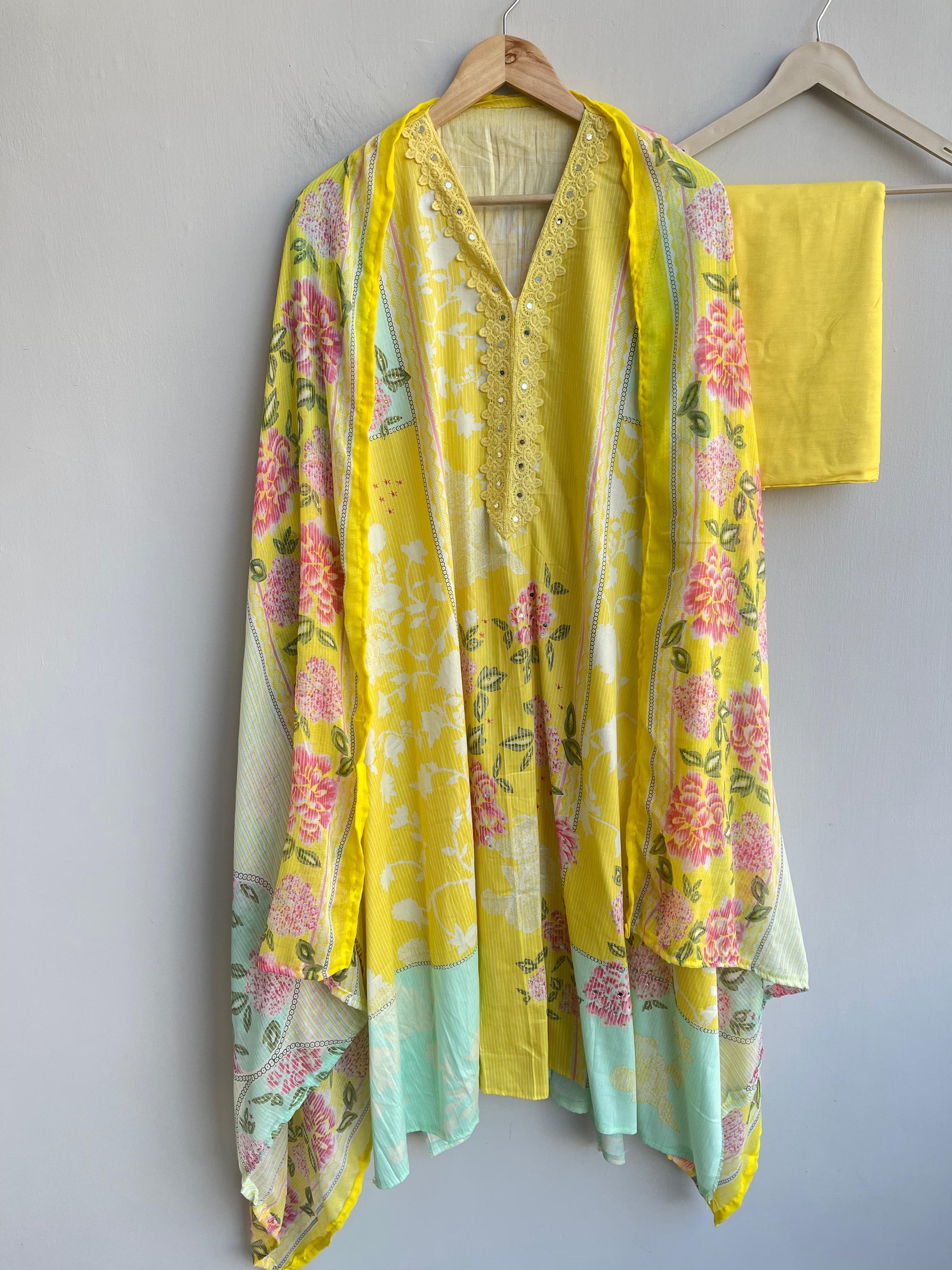 π cotton printed fabric unstitched shirt with mirror work swarowski highlighting