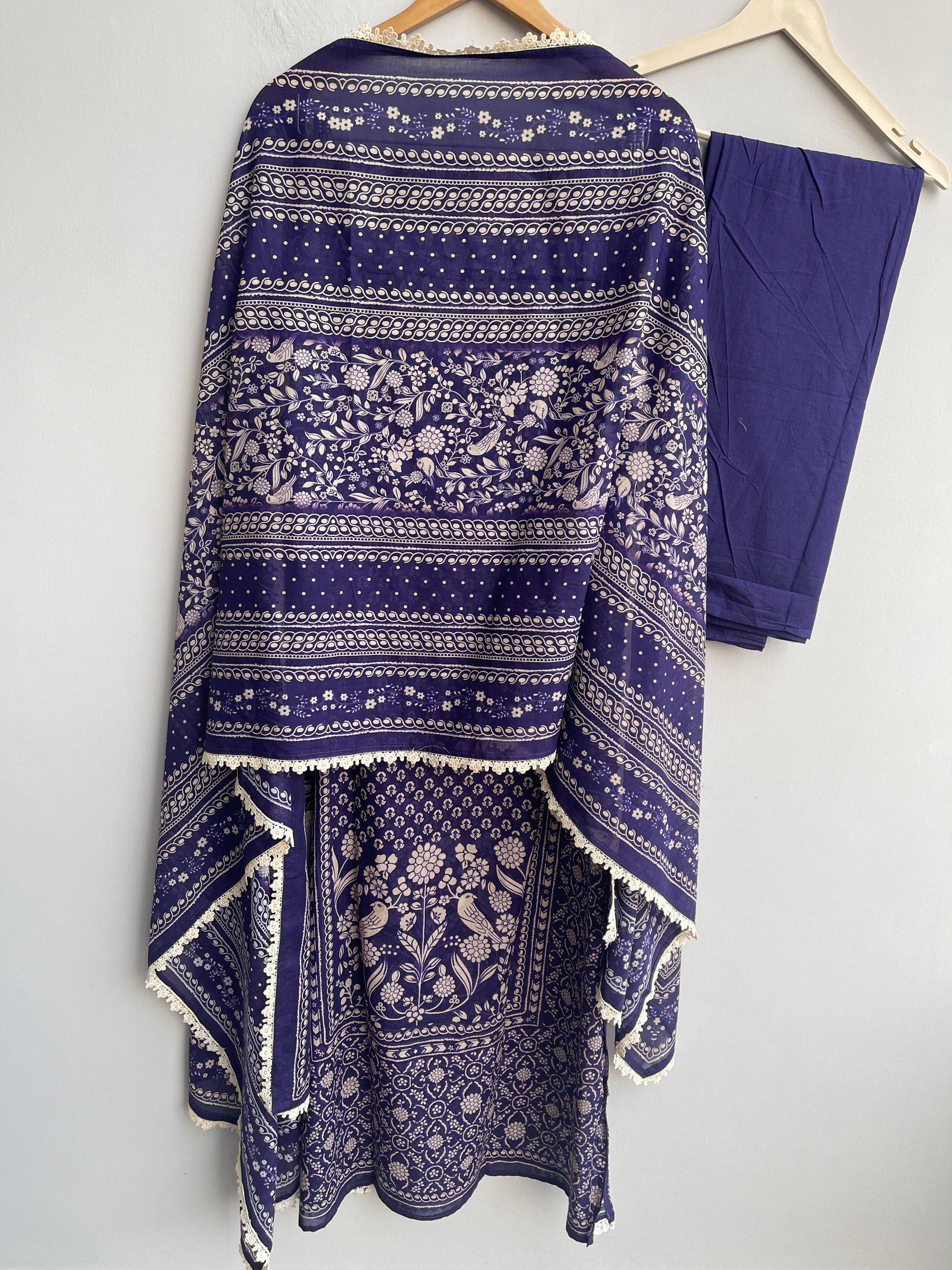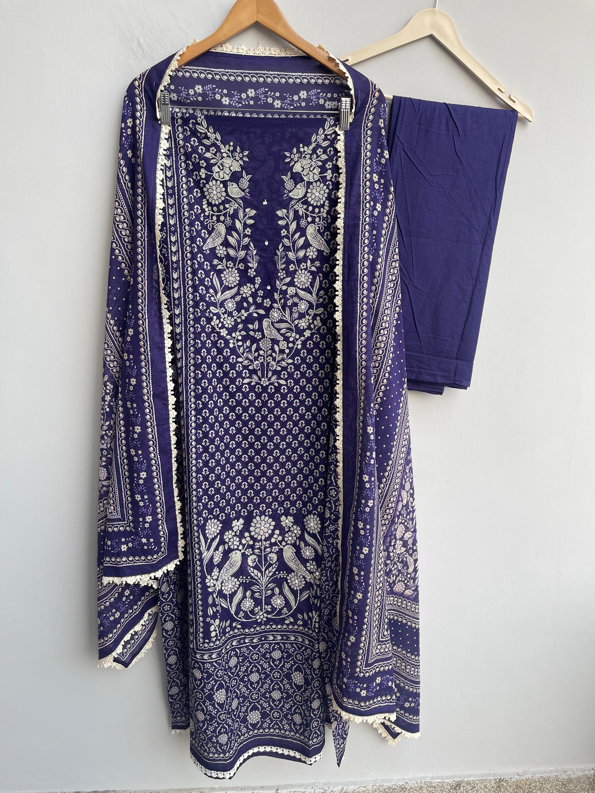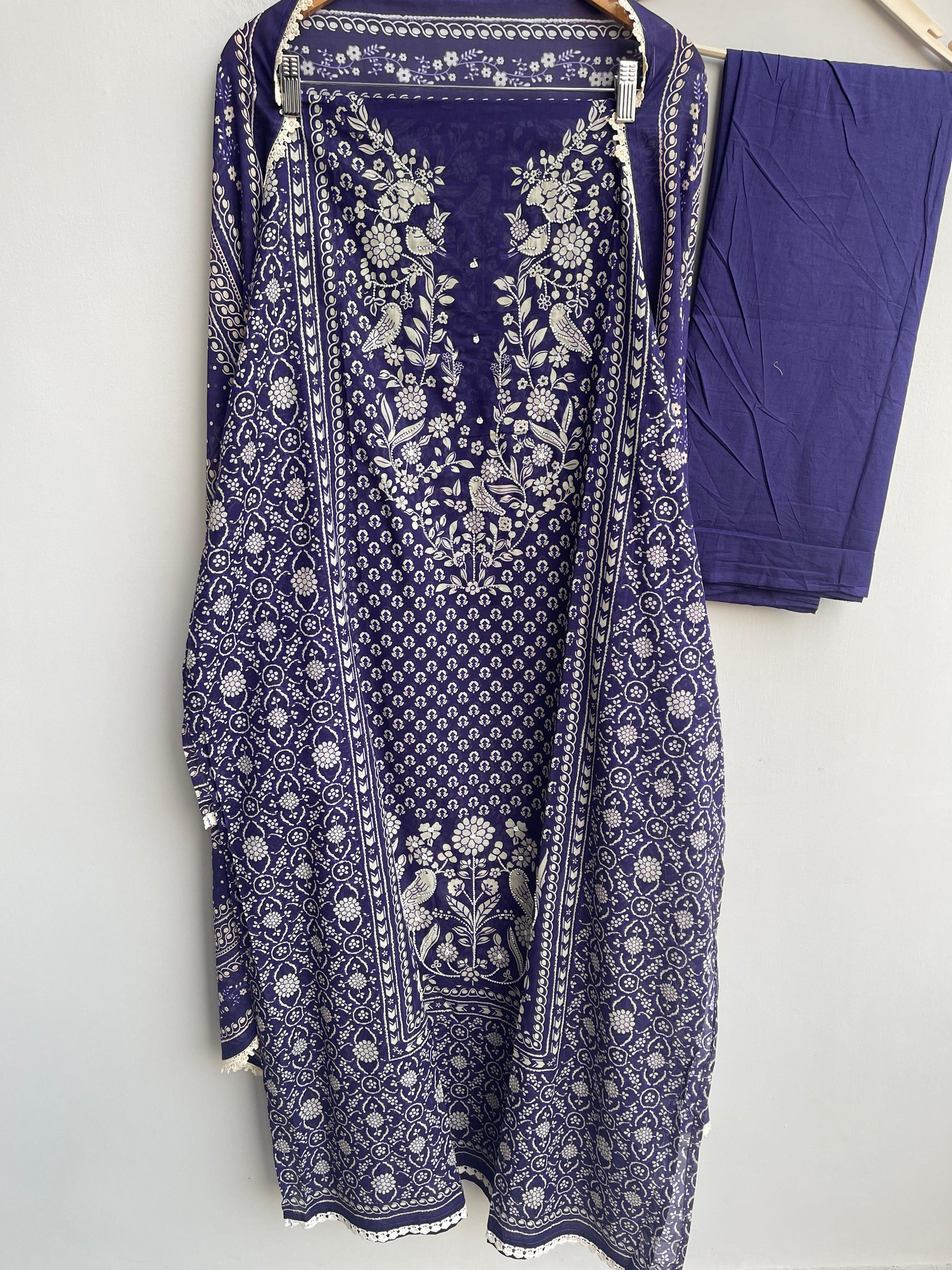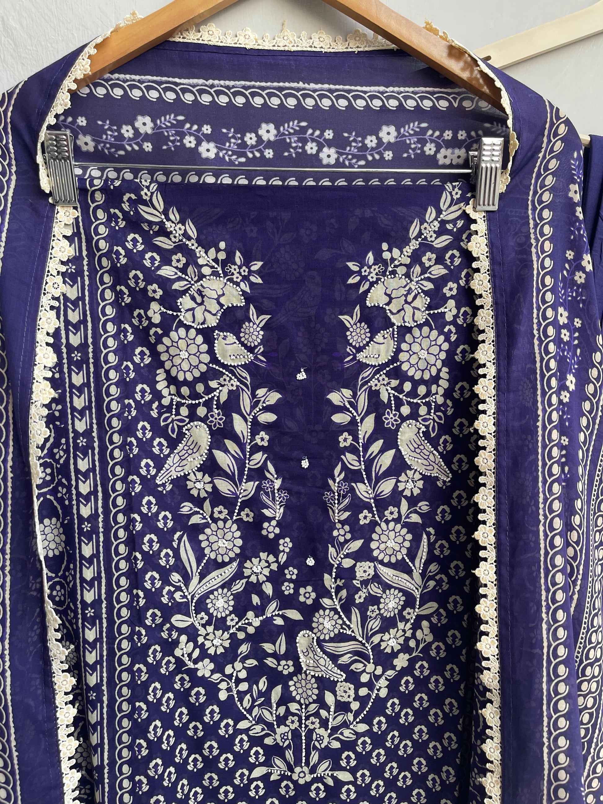 π cotton printed fabric unstitched shirt with pearl highlighting and crotia ghera lace