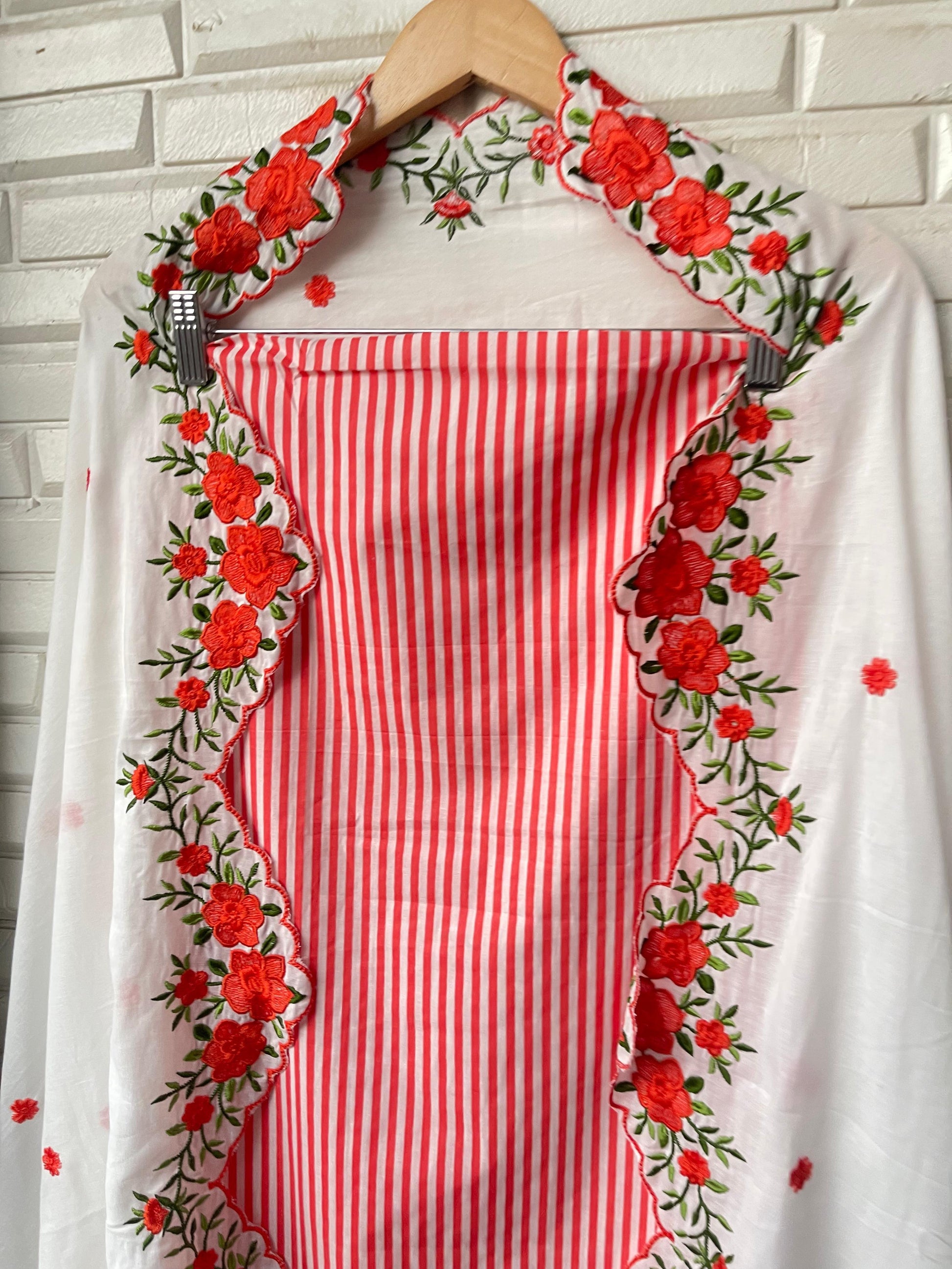 ๐ cotton printed fabric un stitched shirt with resham embroidery and scalpingย