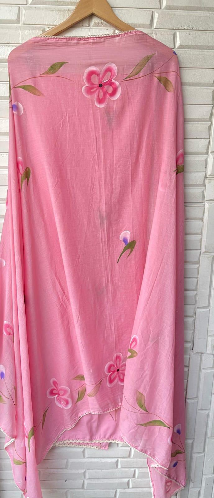☺️ cotton brush painted fabric dupatta with crotia border lace