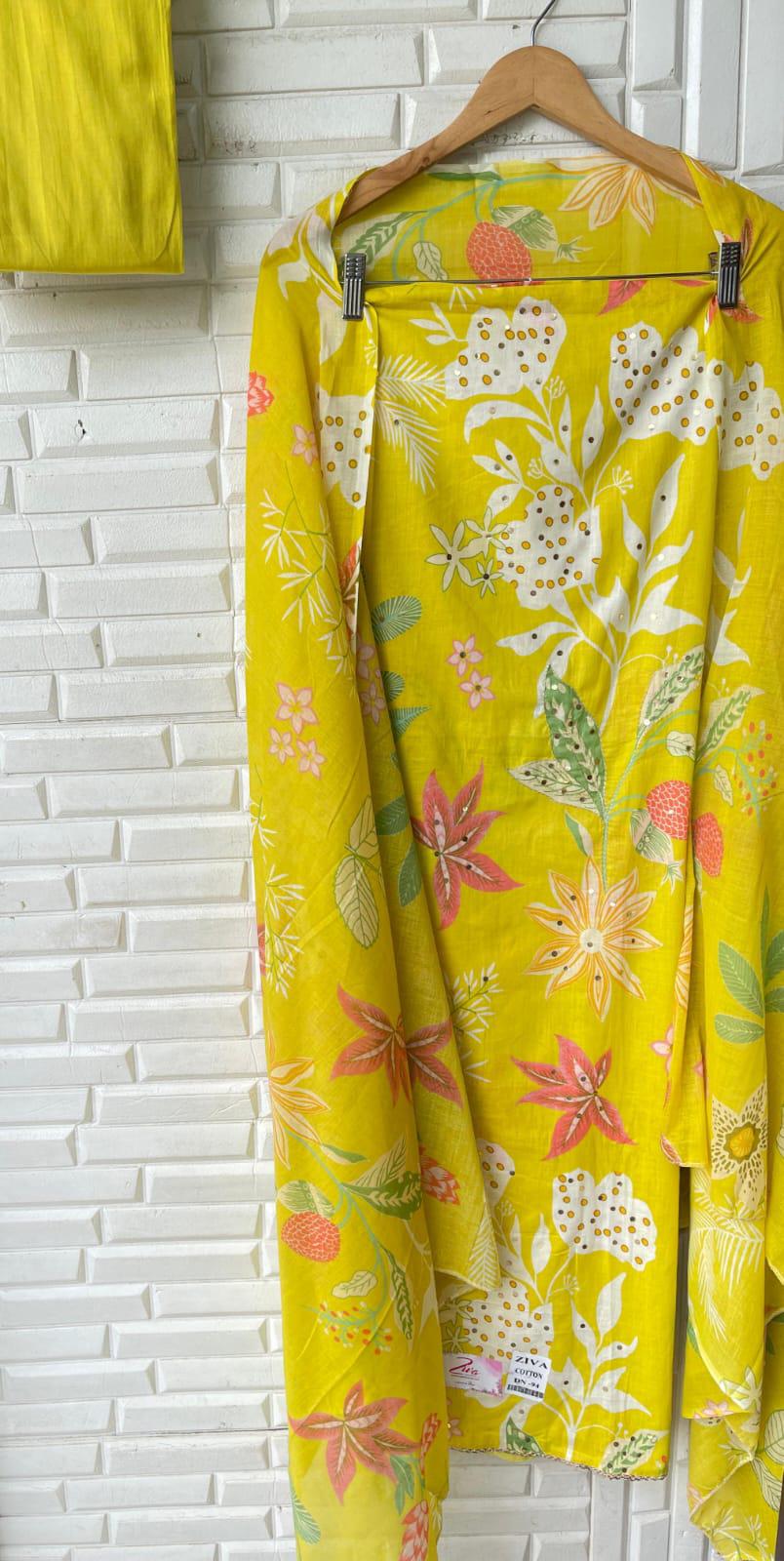 😊 cotton printed fabric un stitched shirt with mirror pathri zari embroidery
