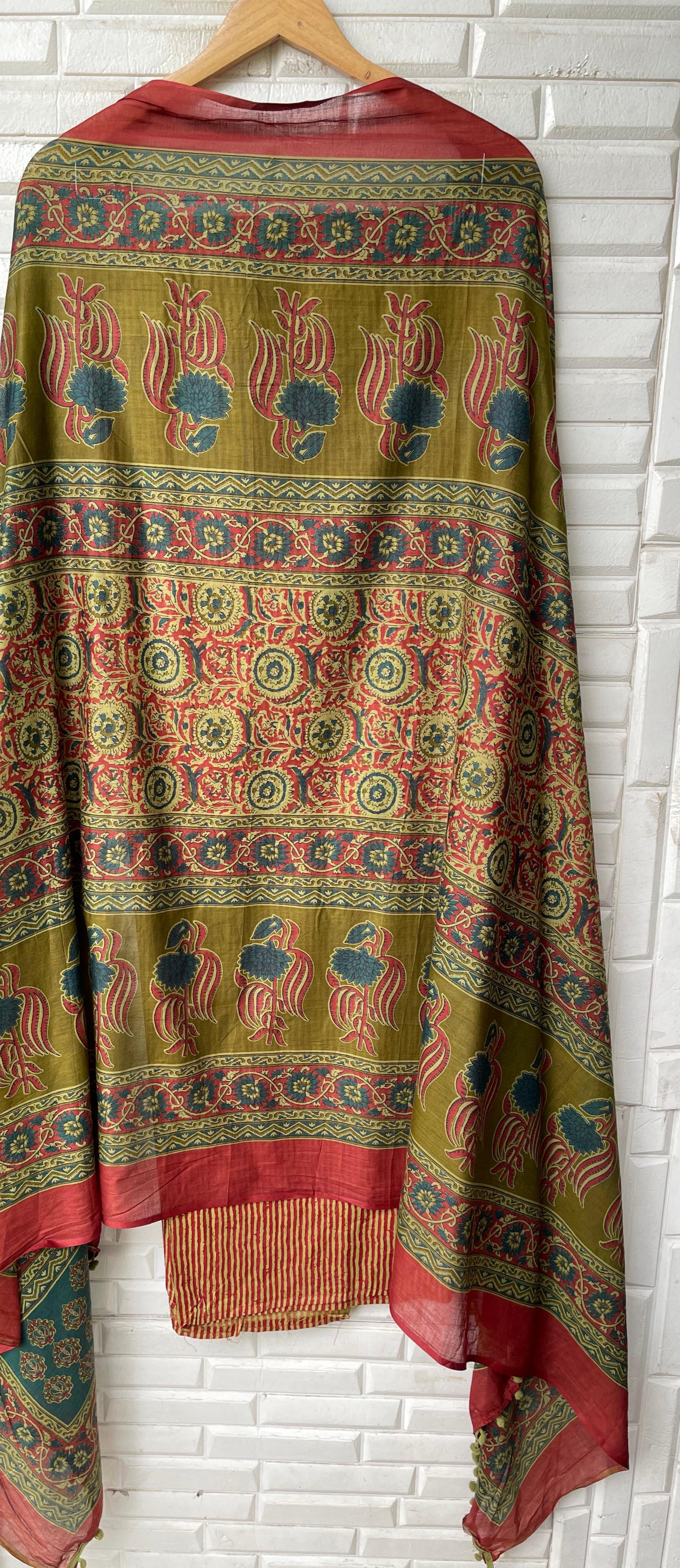 ๐ cotton printed fabric unstitched shirt with mirror patri work resham embroidery