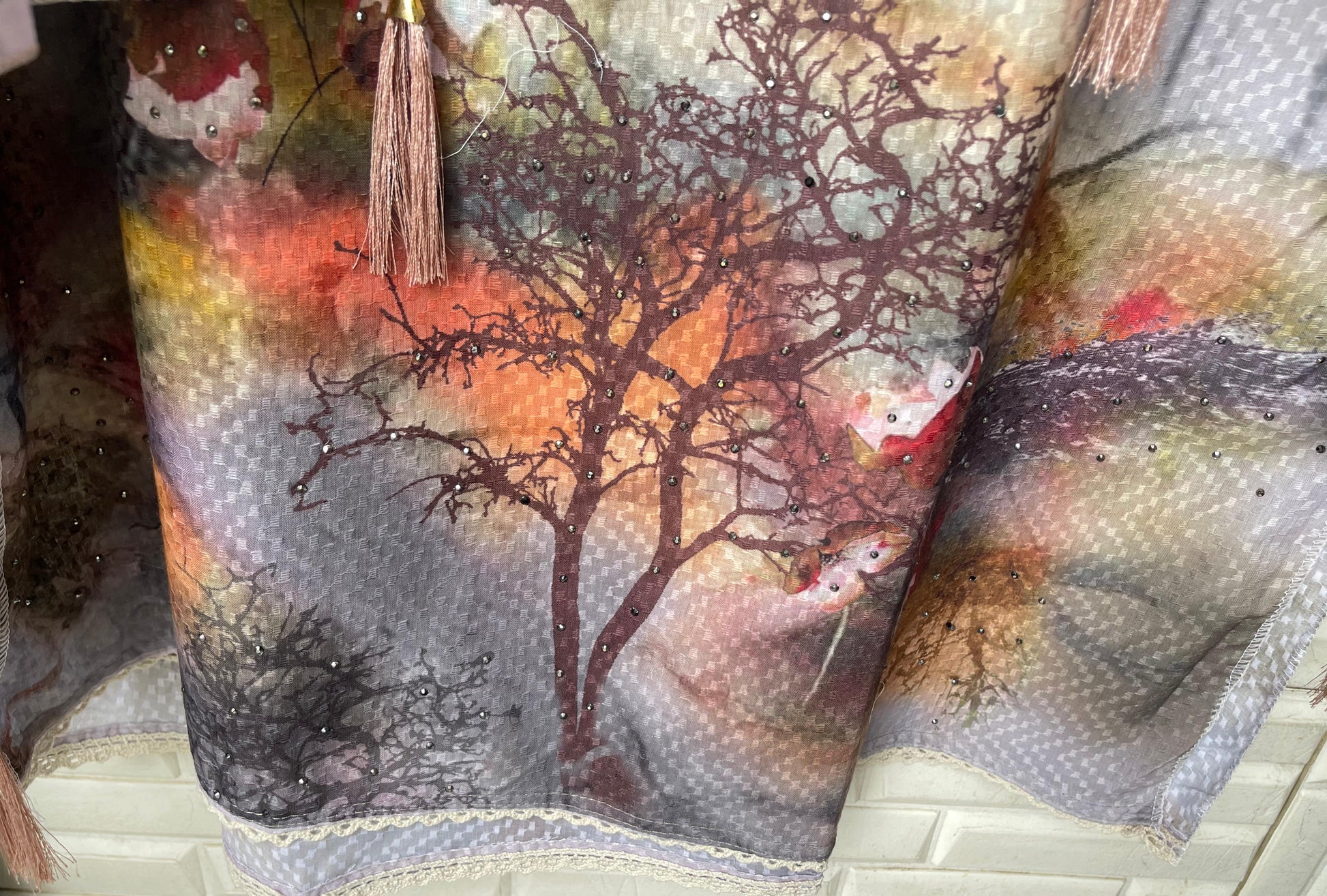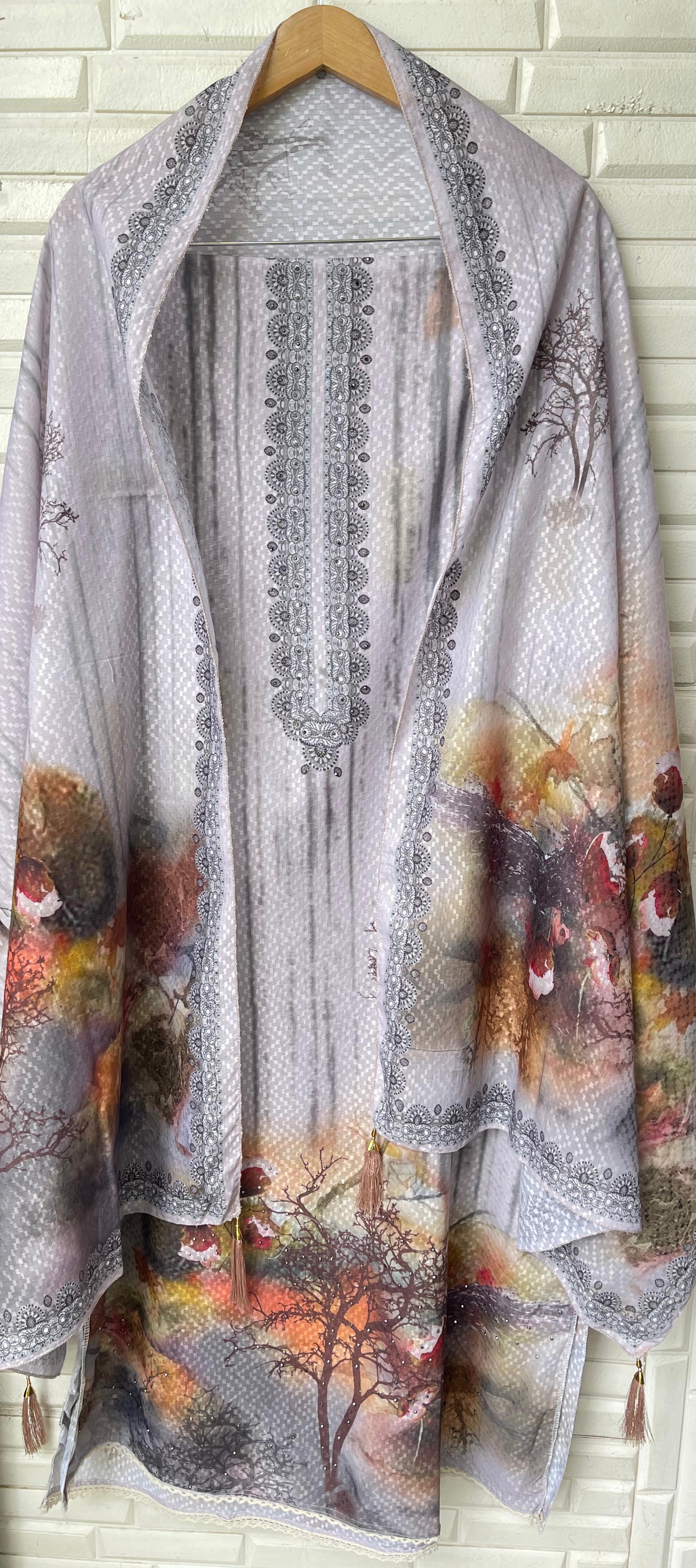 😊 cotton printed fabric un stitched shirt with swarowski highlighting