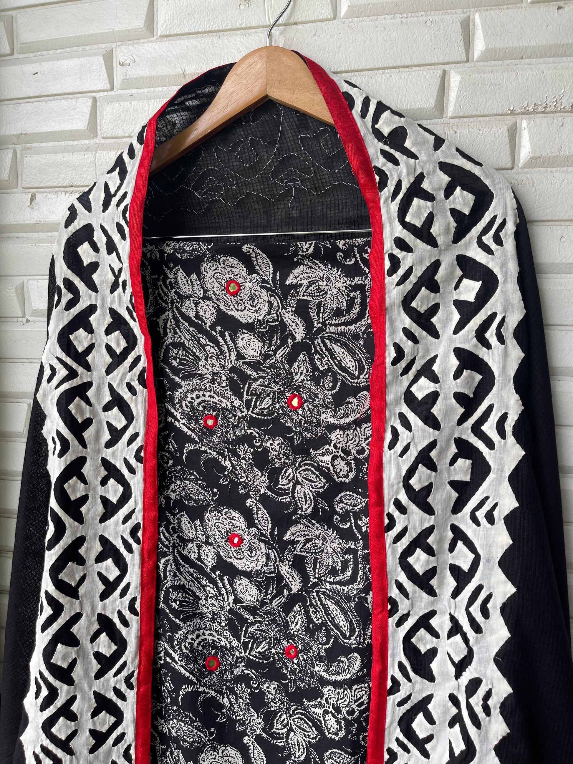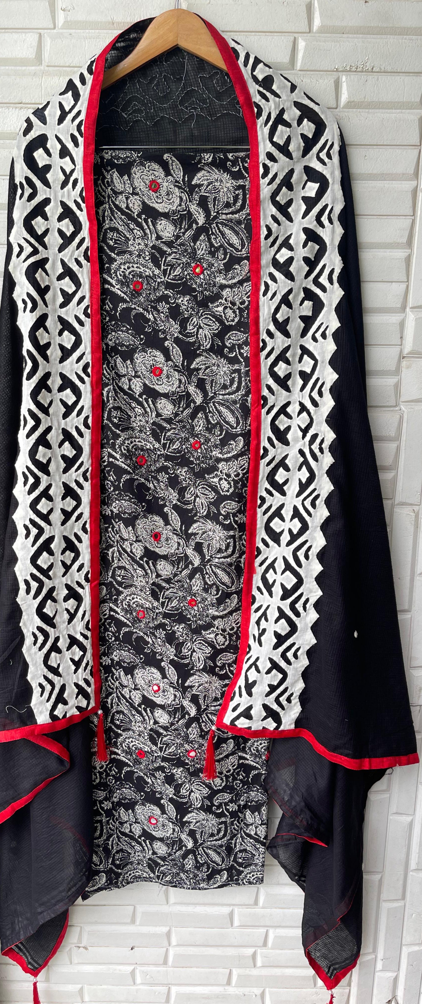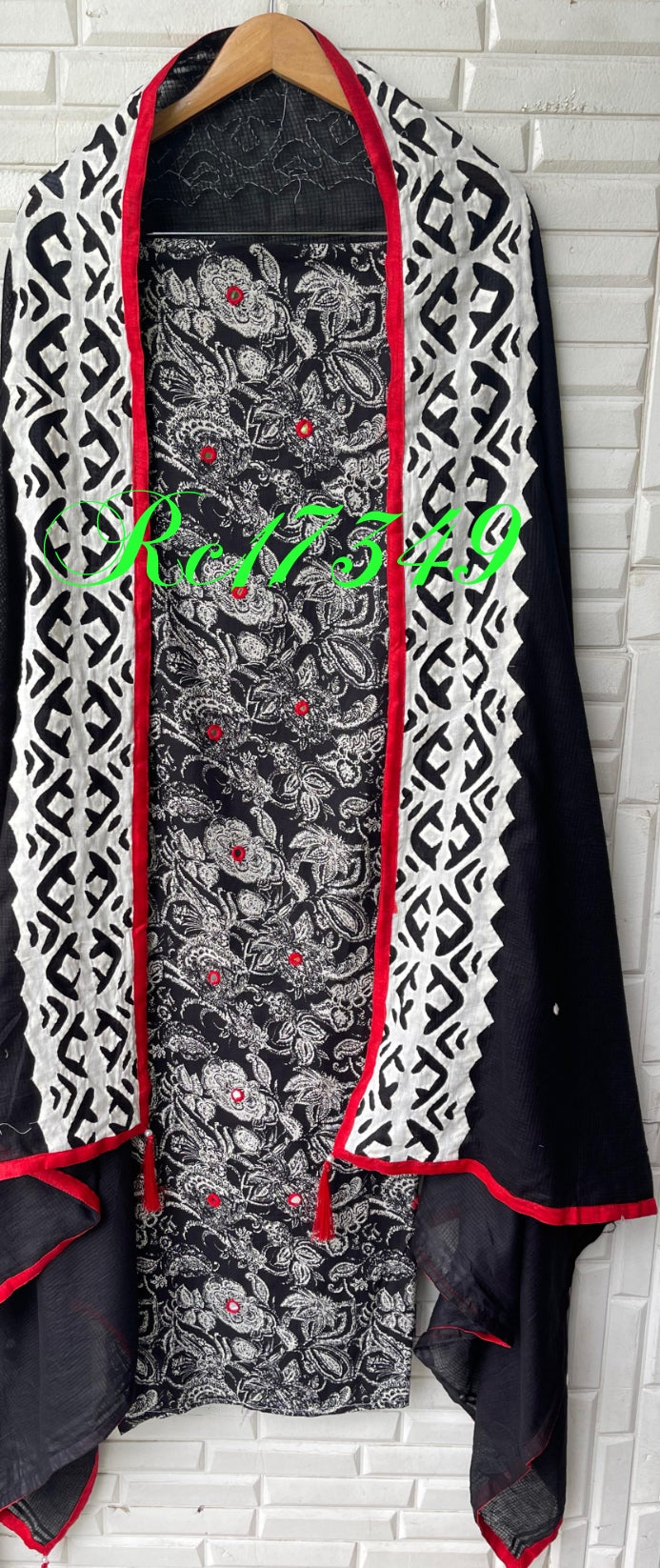 😊 cotton printed fabric unstitched shirt with mirror work resham embroidery