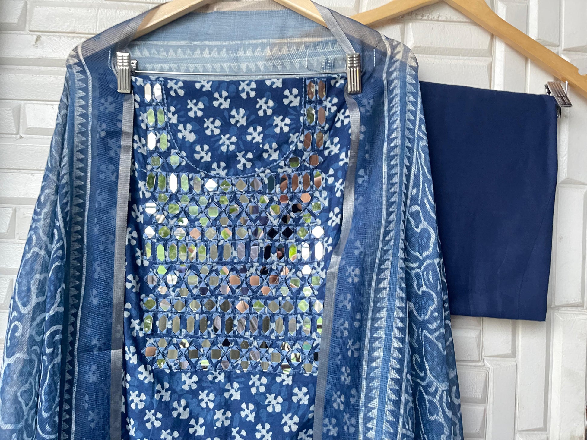 😊 cotton printed fabric unstitched shirt with resham mirror work embroidery