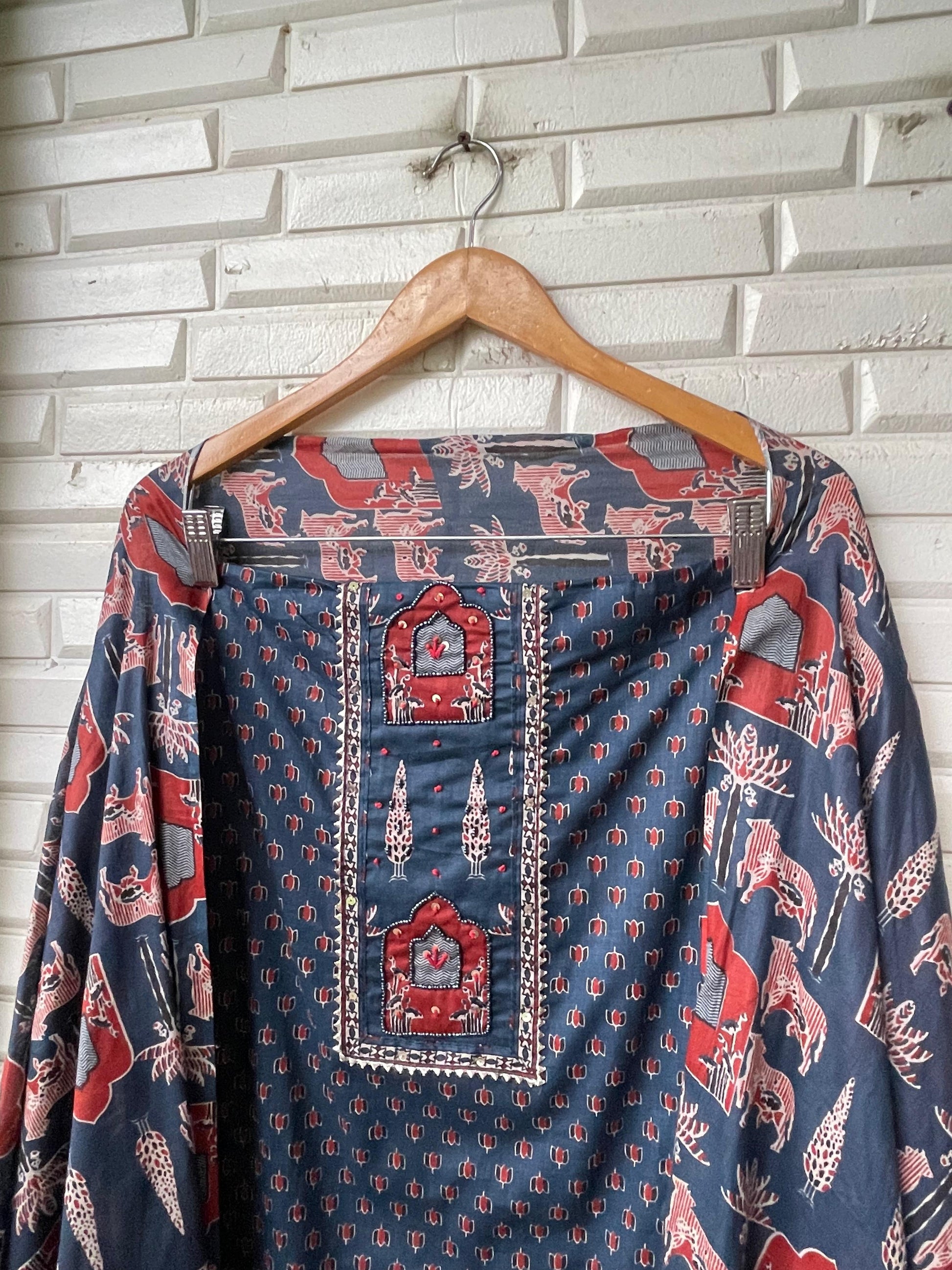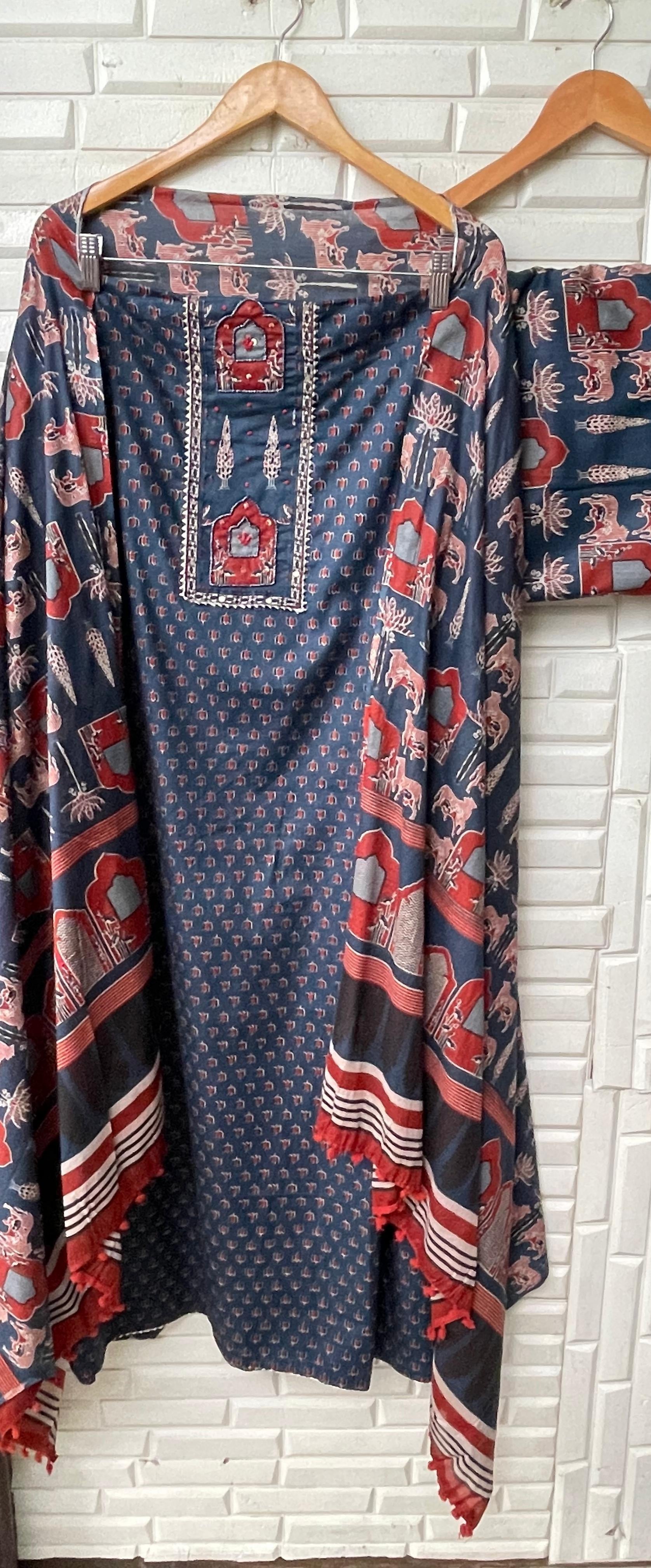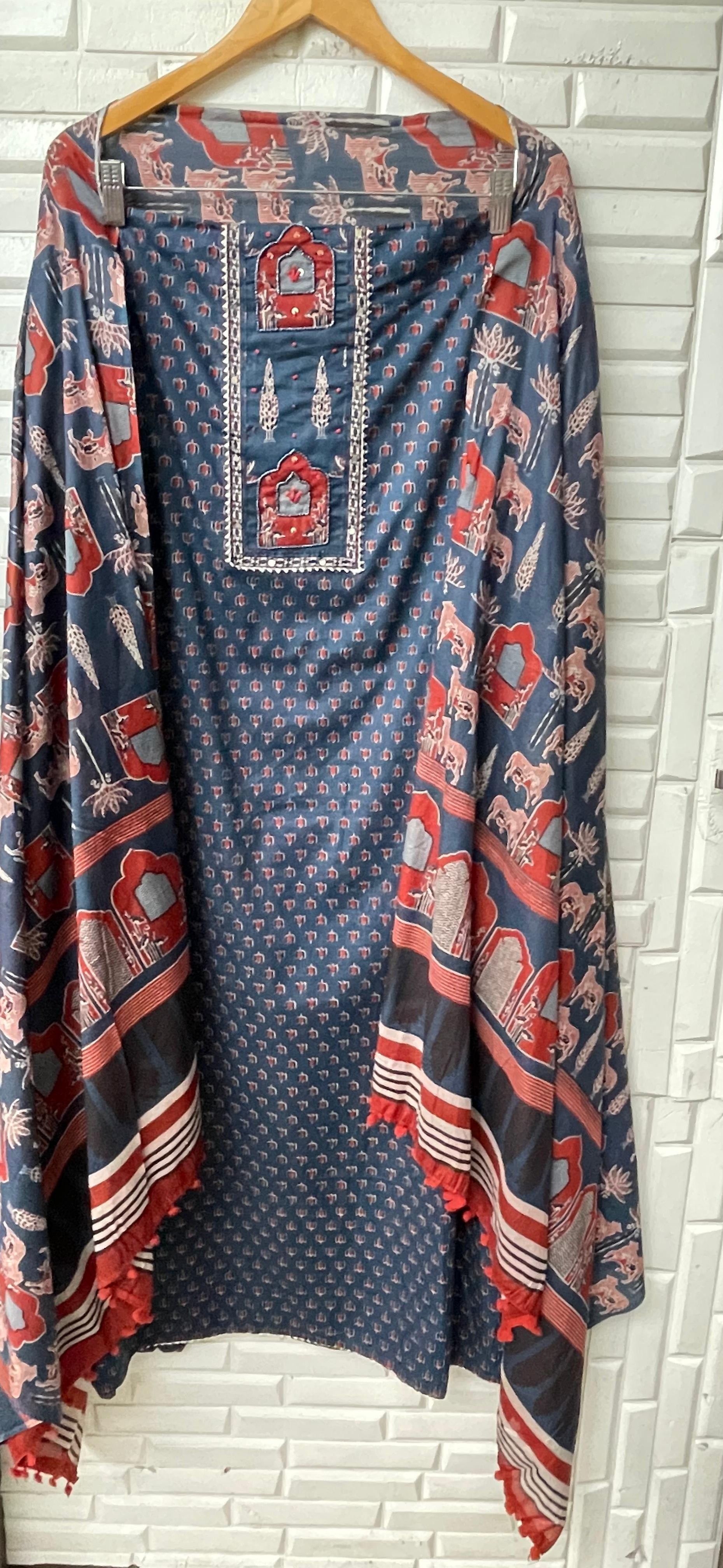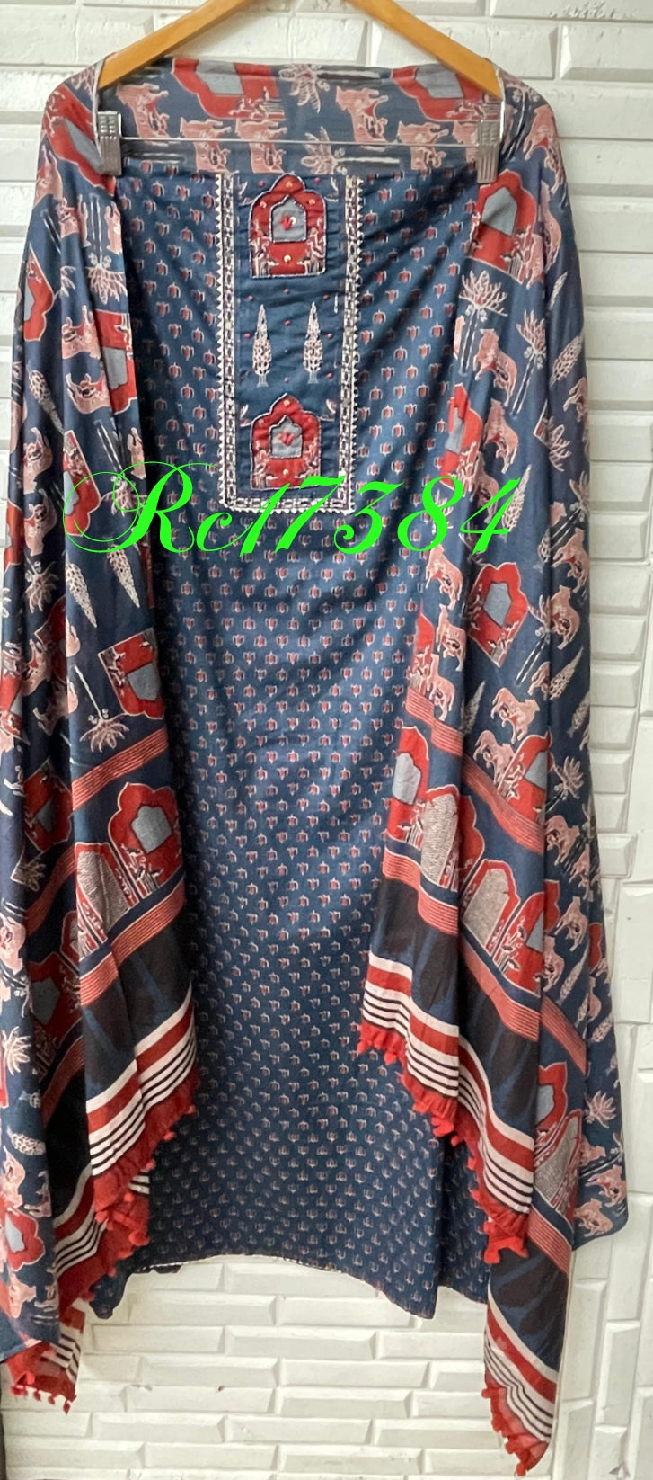 😊 cotton printed fabric unstitched shirt with sequence pearl resham embroidery