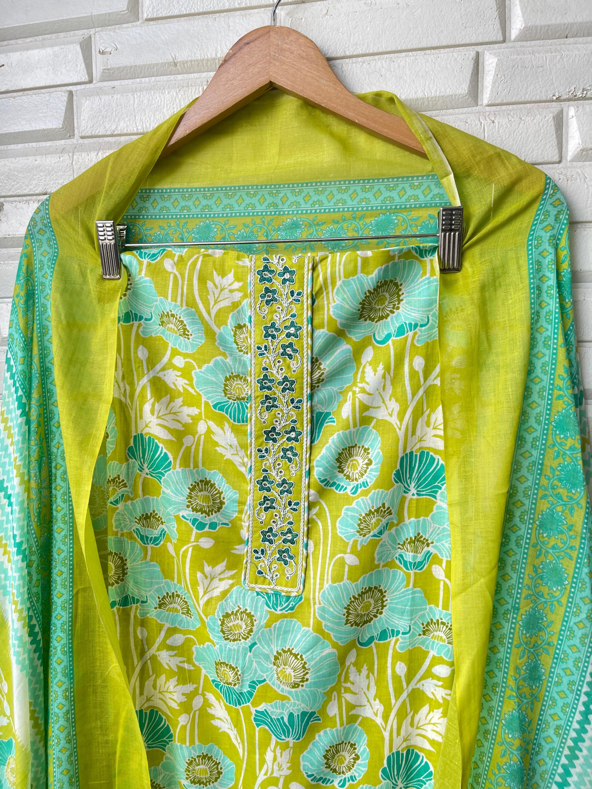 😊 cotton printed fabric unstitched shirt with mirror work resham embroidery