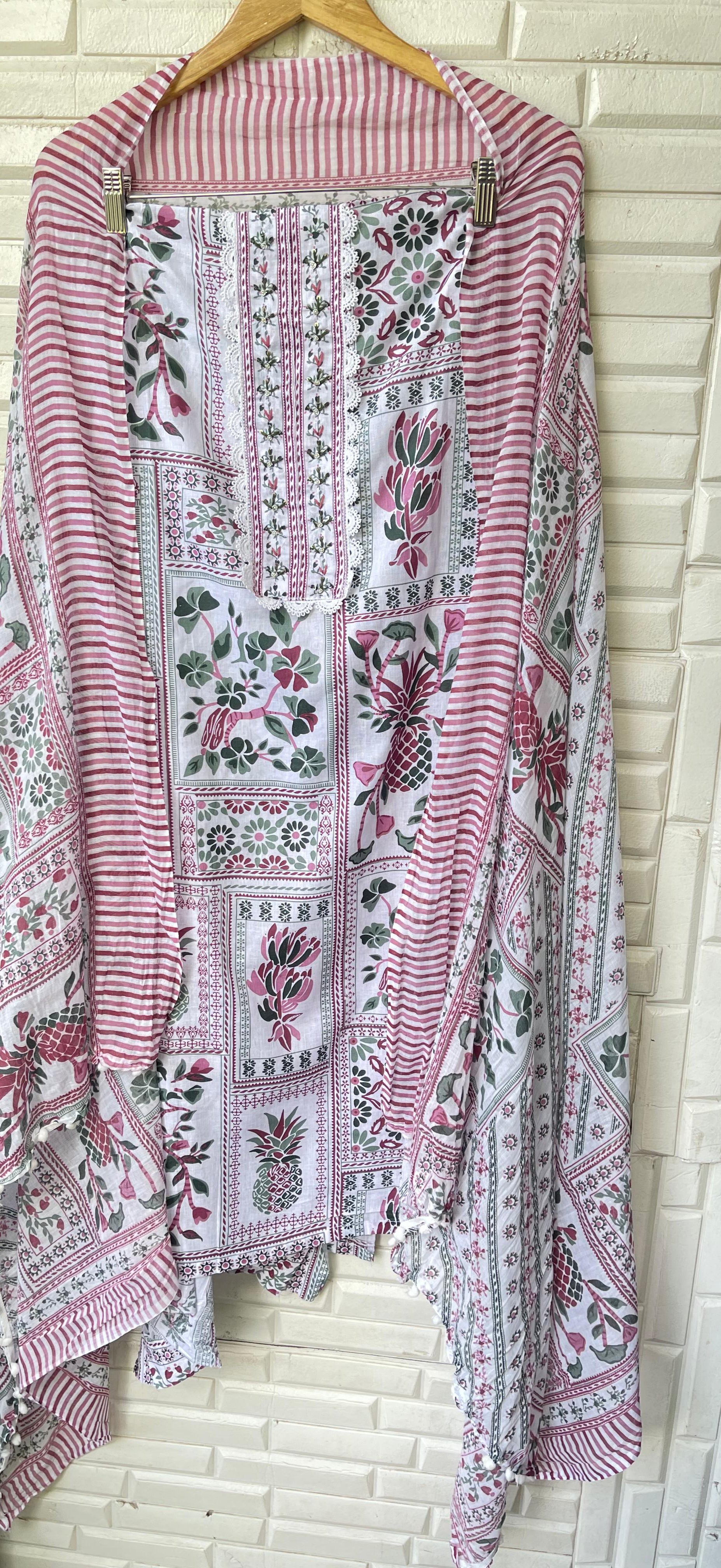 😊pure cotton unstitched shirt fabtic crotia lace sequins highlight