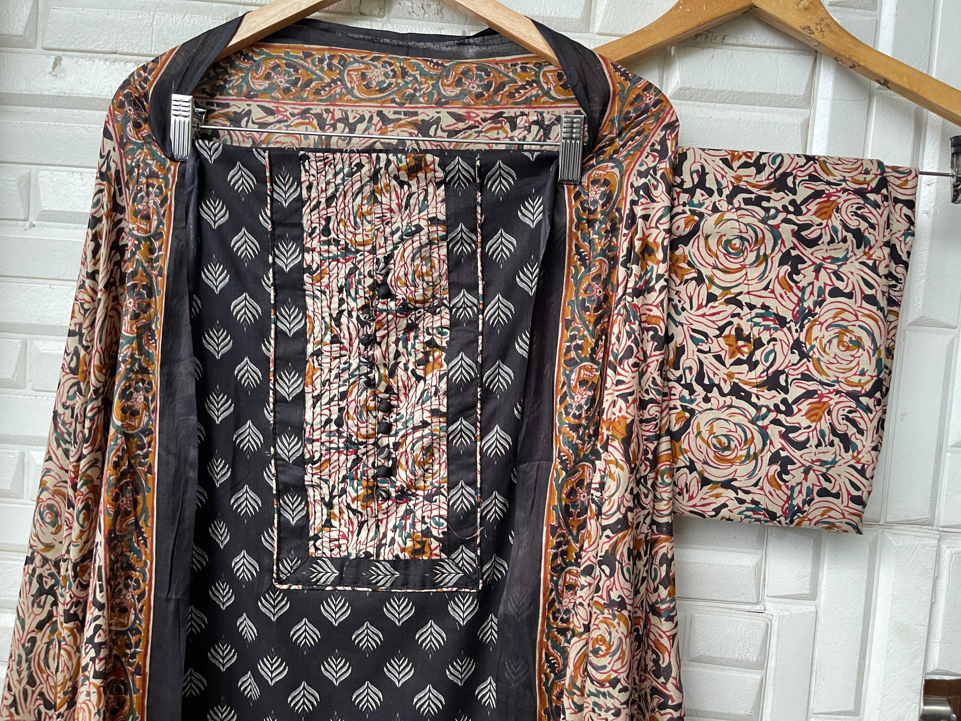 ๐ cotton printed fabric unstitched shirt with dhagai and potli buttons on neck