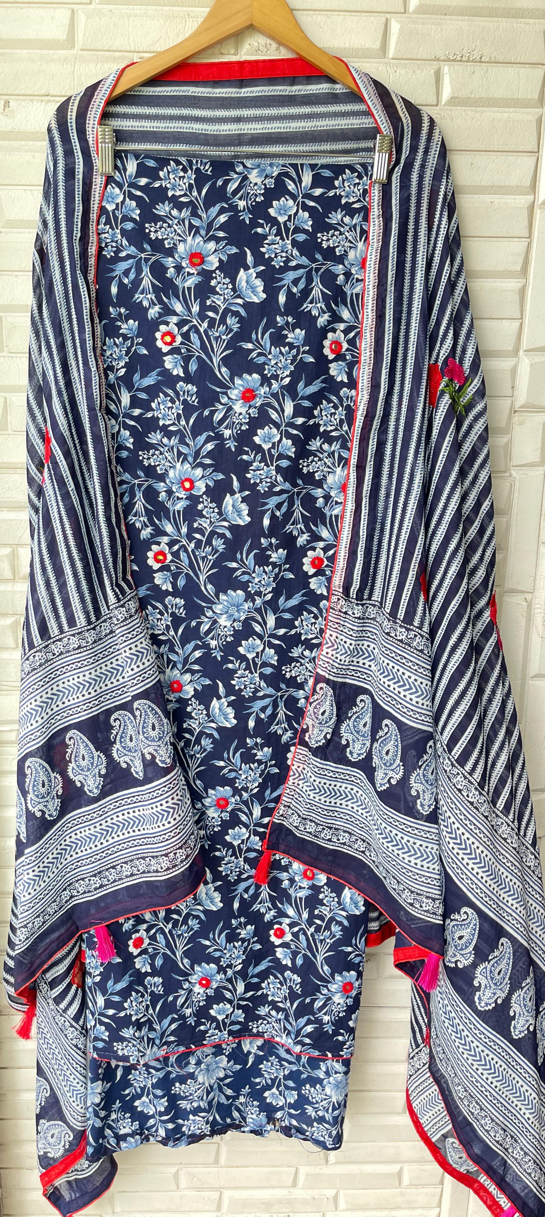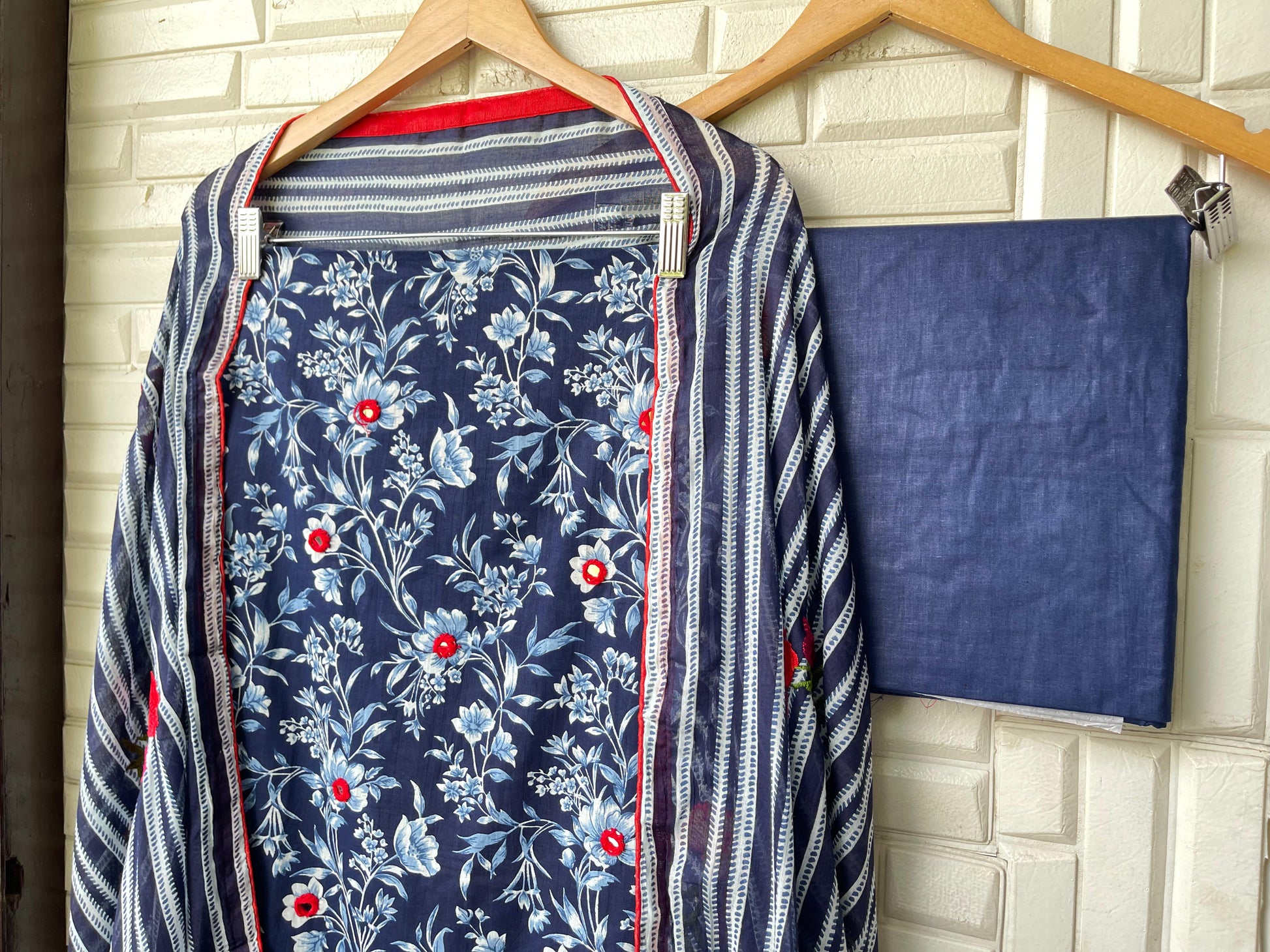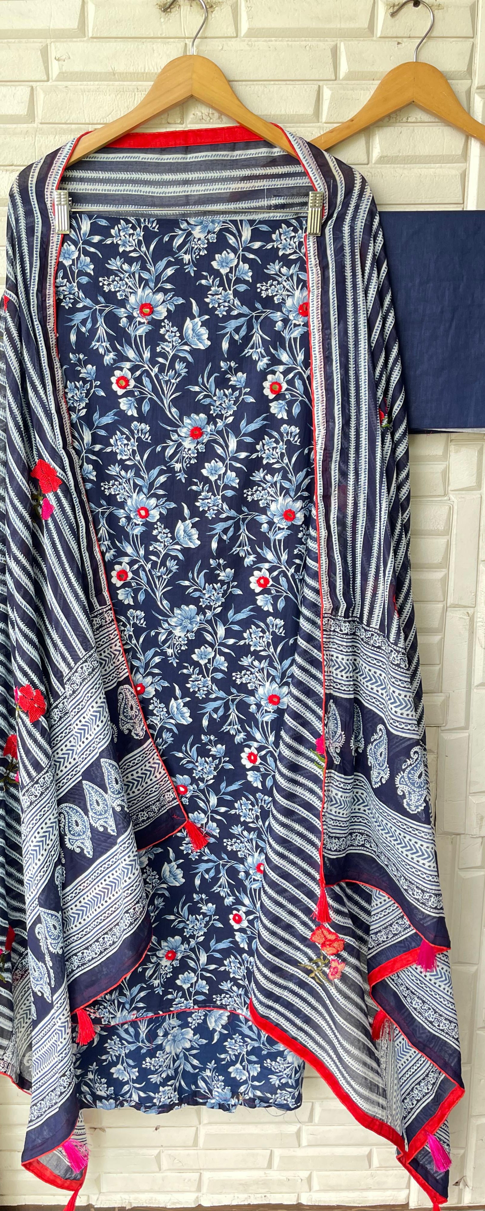 😊 cotton printed fabric unstitched shirt with mirror work and resham embroidery