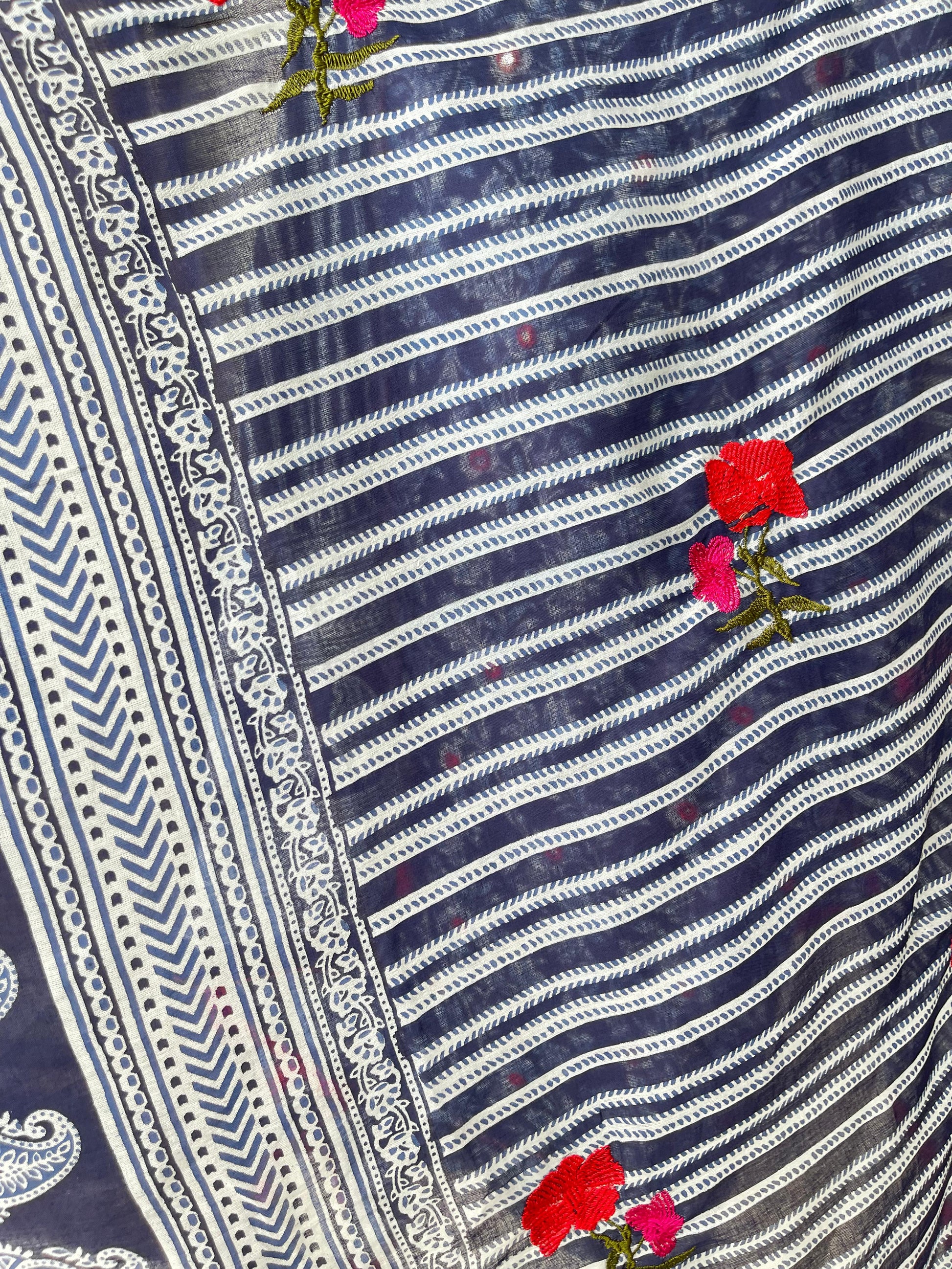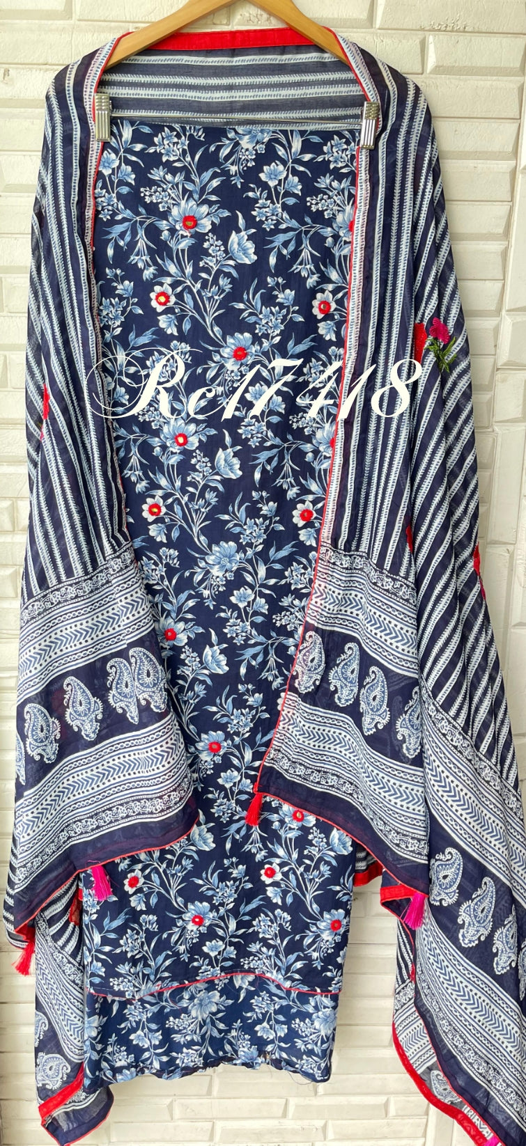 😊 mul cotton printed fabric dupatta with beautiful Resham embroidered bootas